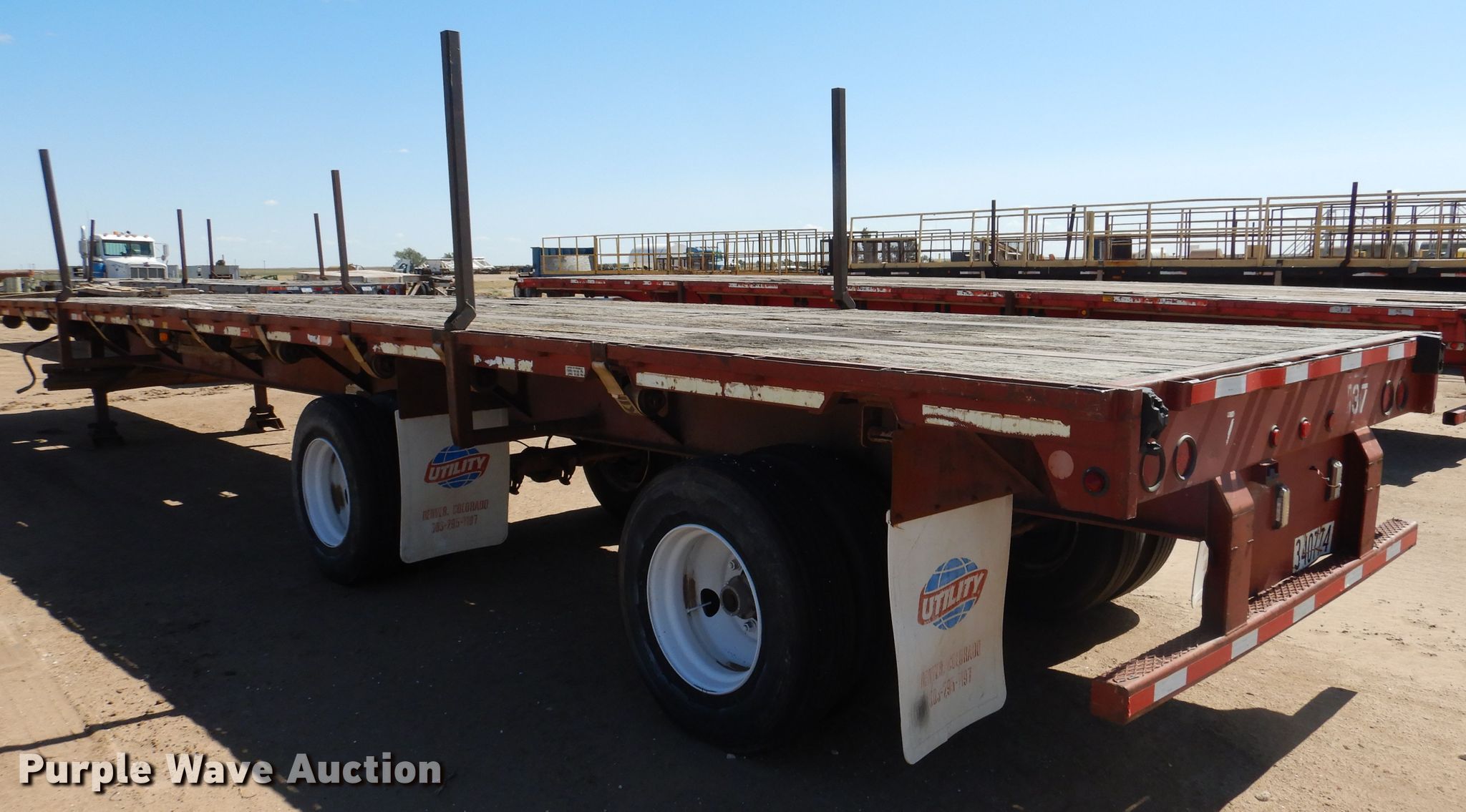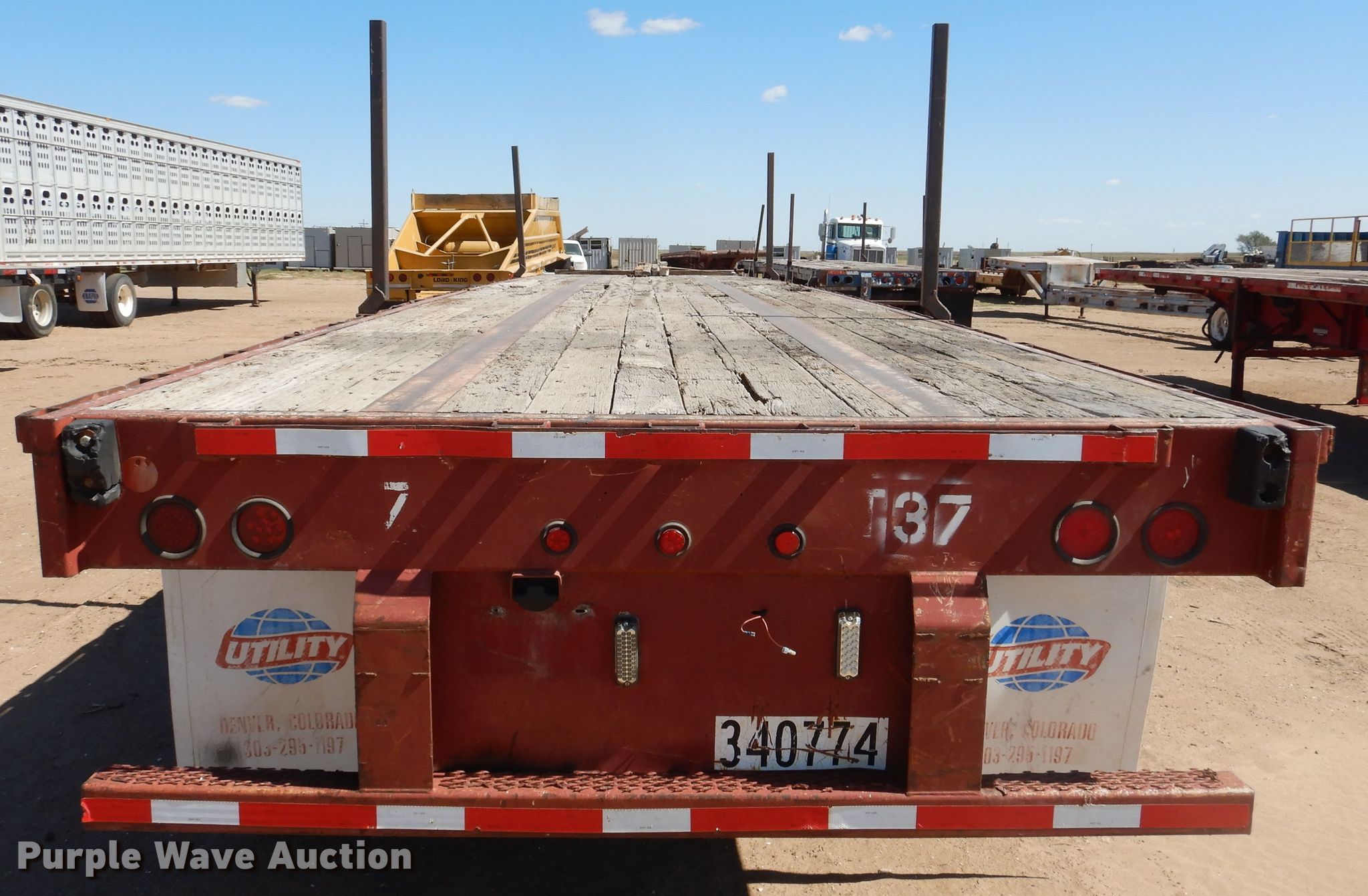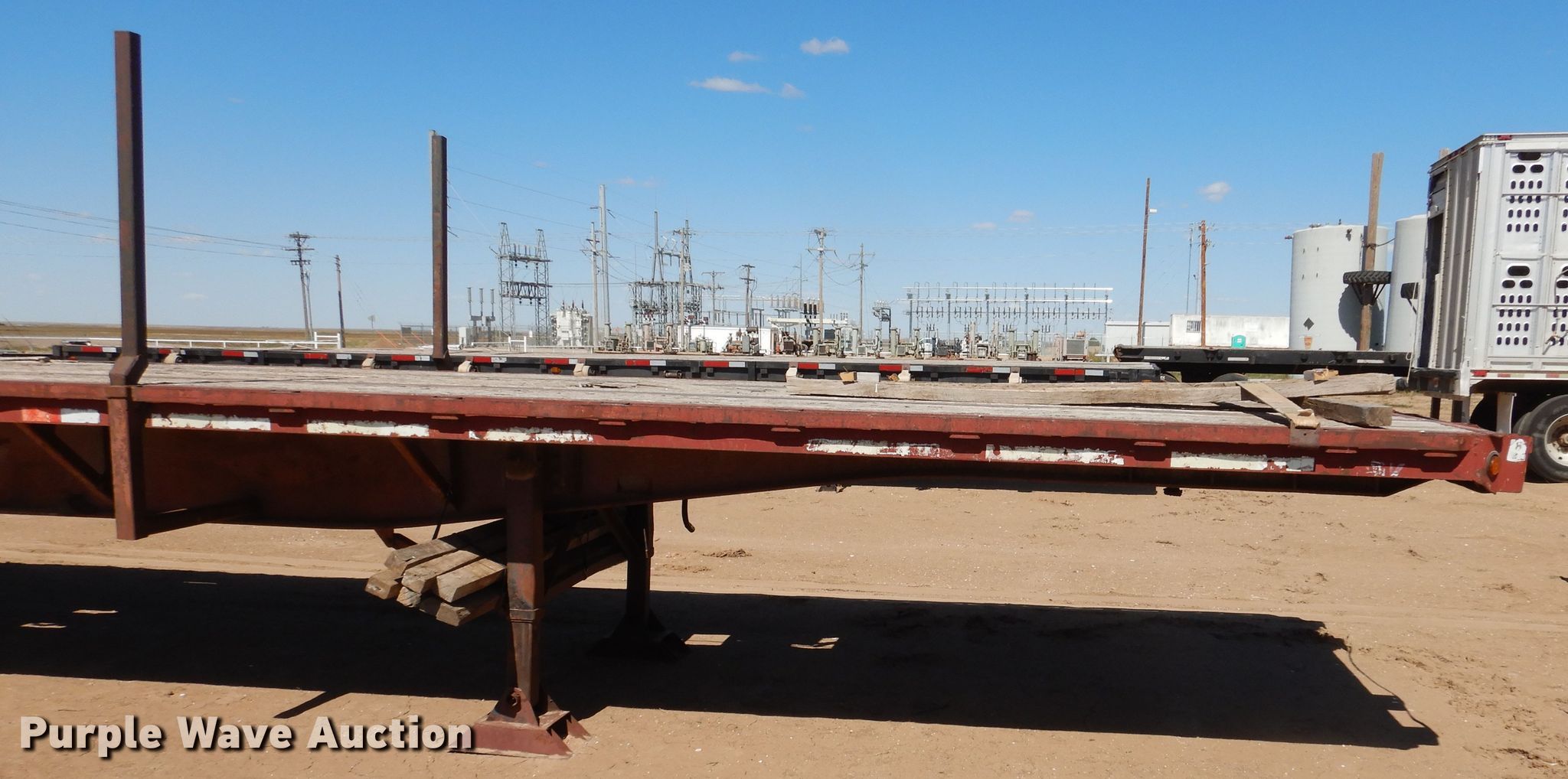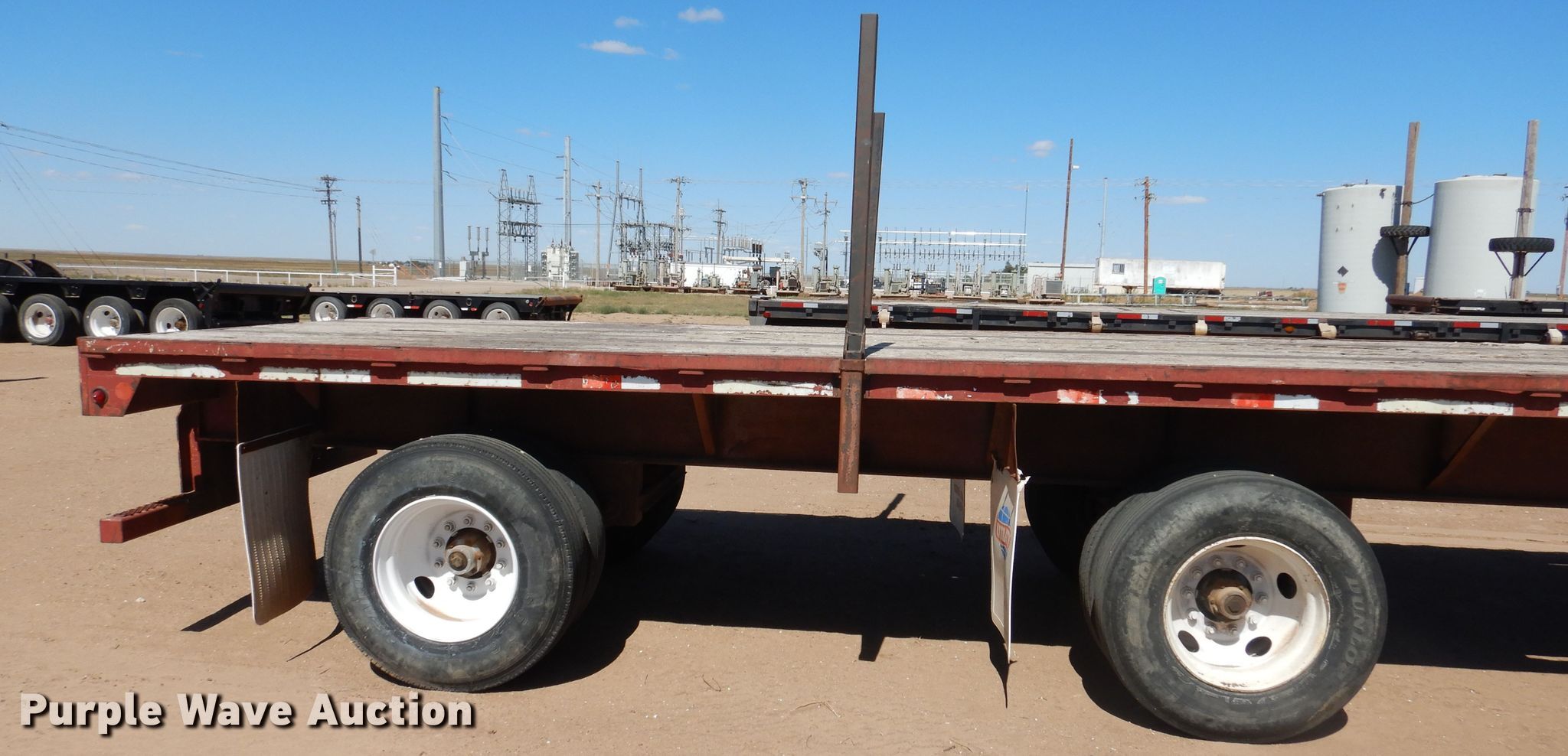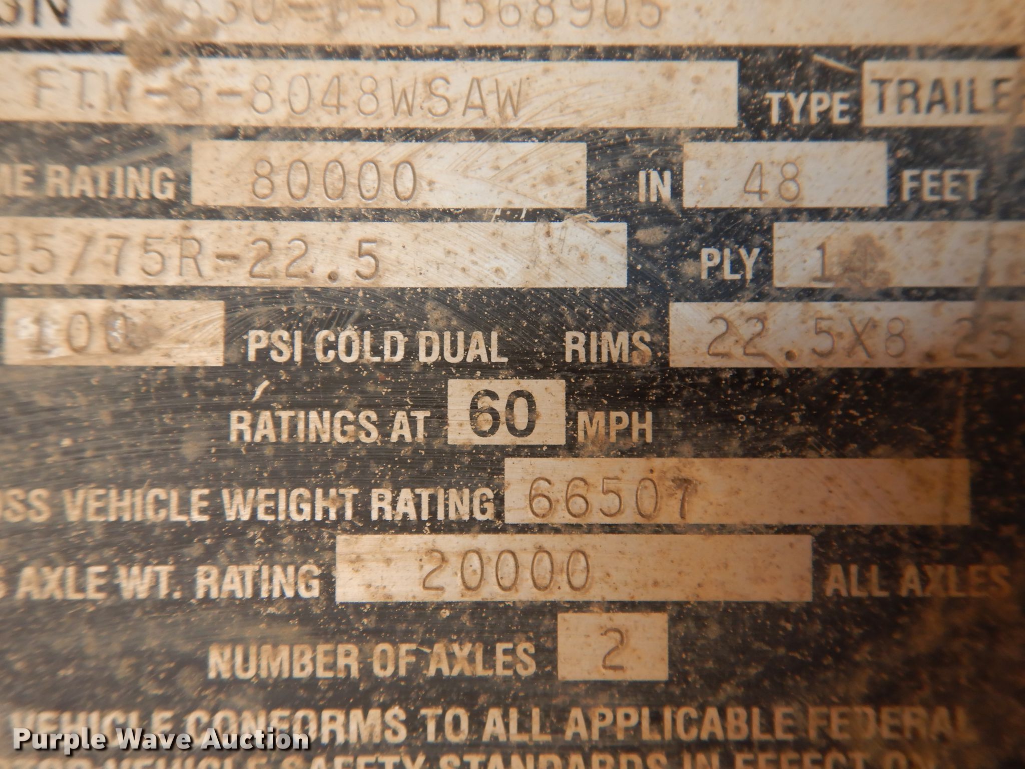 Purple Wave is selling a used Flat or Drop Deck Trailer in Kansas. This item is a 1995 Fontaine FTW-5-8048WSAW flatbed trailer with the following: 48'4"L x 102"W overall, 48'L x 98"W deck, 4' bolster height, Wood deck, Dual leg two speed landing gear, Air suspension, Air brakes, Spread axle, Steel wheels, 11R22.5 tires, GVWR 66,507 lbs, GAWR 20,000 lbs