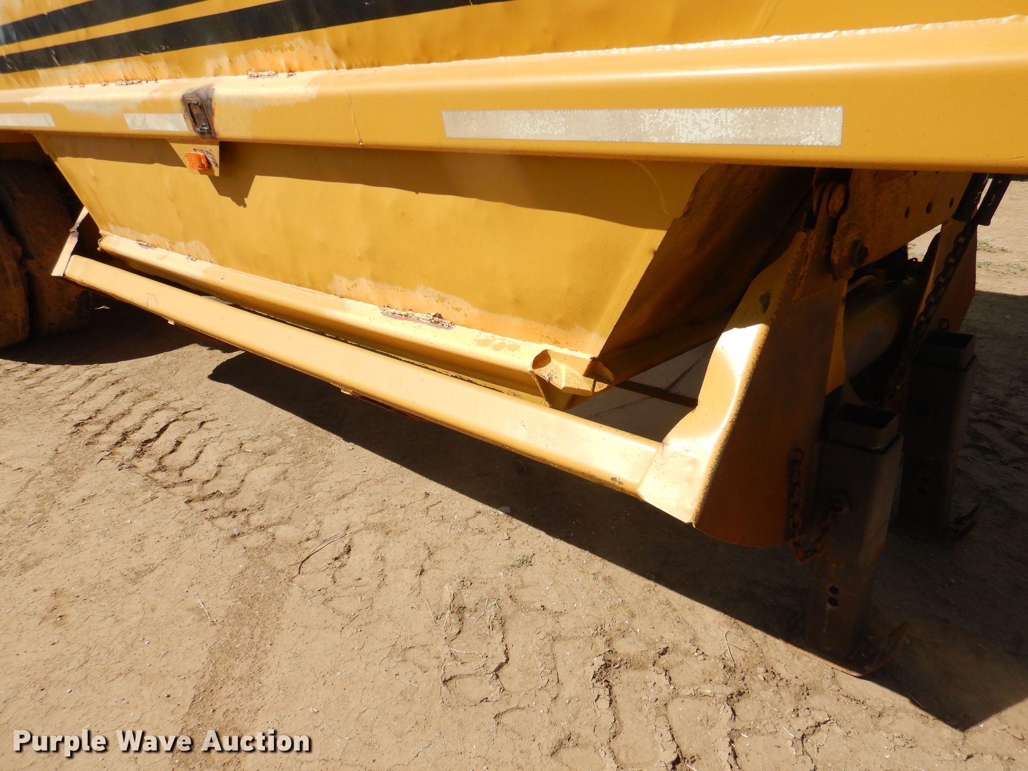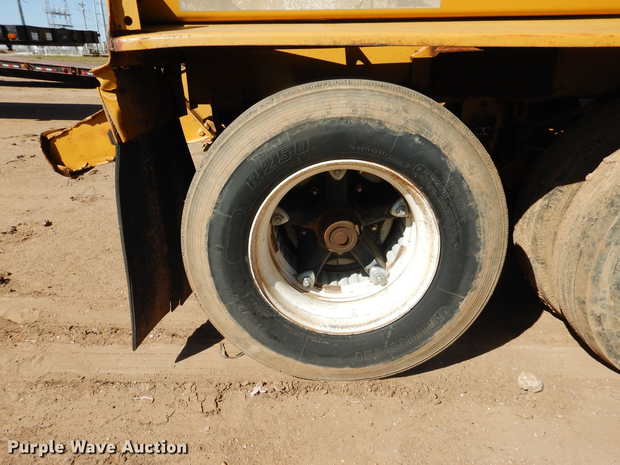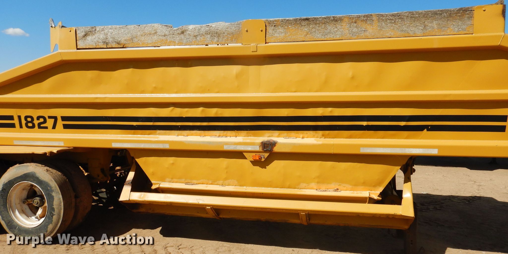 Purple Wave is selling a used Bottom Dump Trailer in Kansas. This item is a 1988 Trail King 1827-0-3Axle bottom dump trailer with the following: 40'L x 8'W overall, 67" side height, 12" side board height, Dual hydraulic cylinders, Air operated clamshell gate, Rear push block, 18 cu. yd. capacity, Steel construction, Dual leg landing gear, Spring suspension, Air brakes, Triple axle, Steel wheels, 11R22.5 tires, GVWR 69,040 lbs, GAWR 20,000 lbs, Unknown operating condition