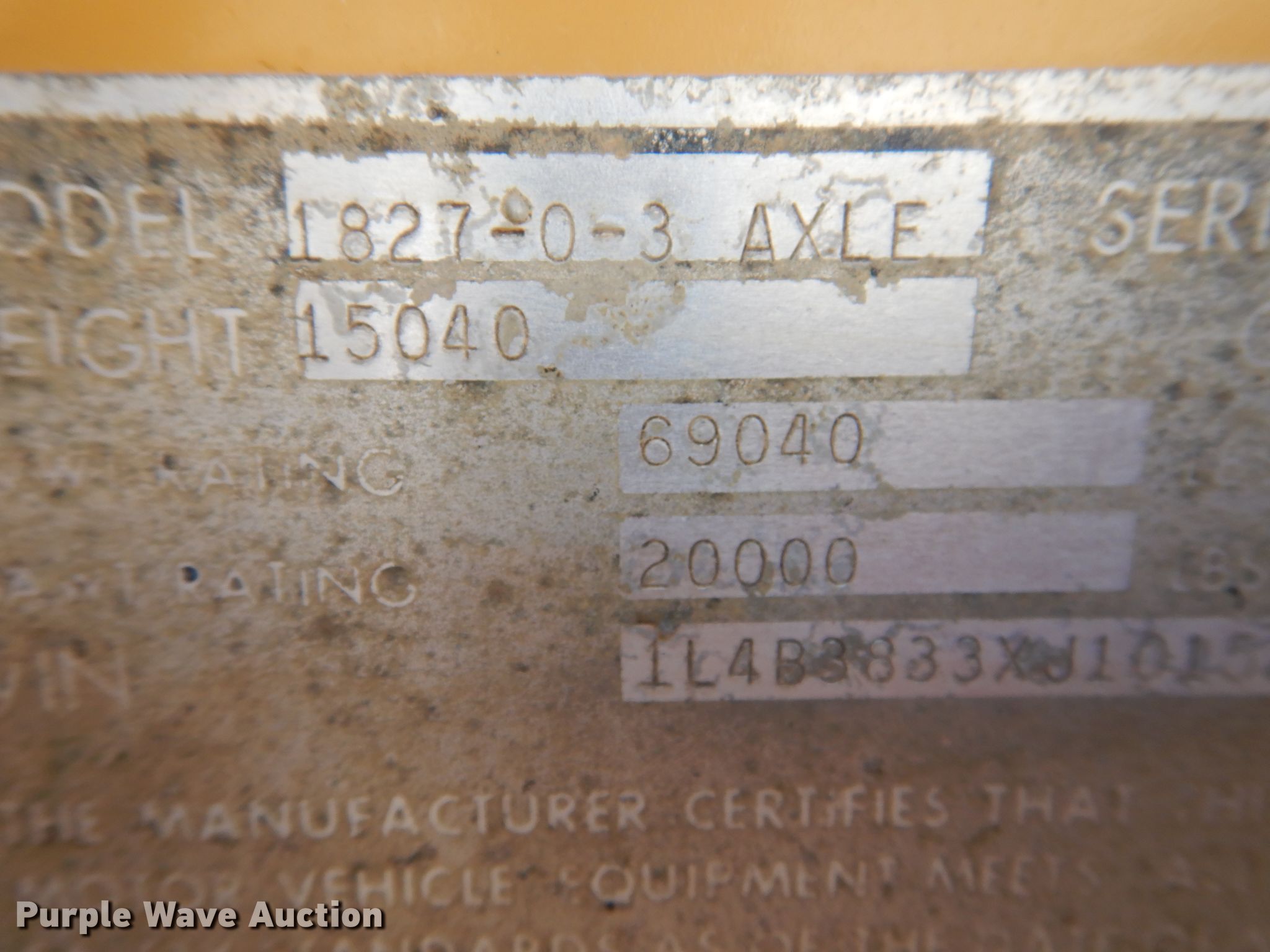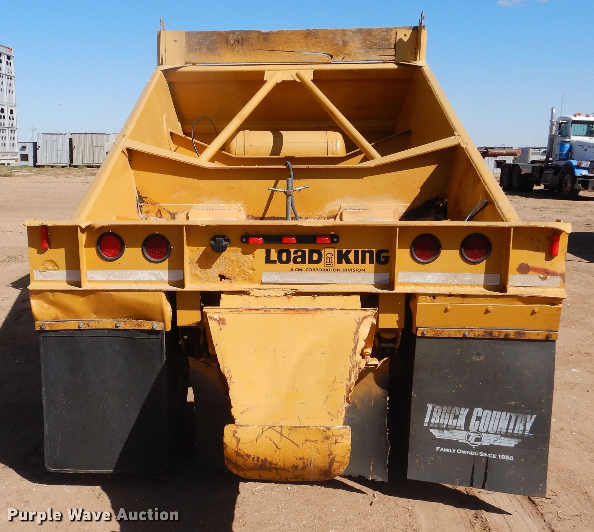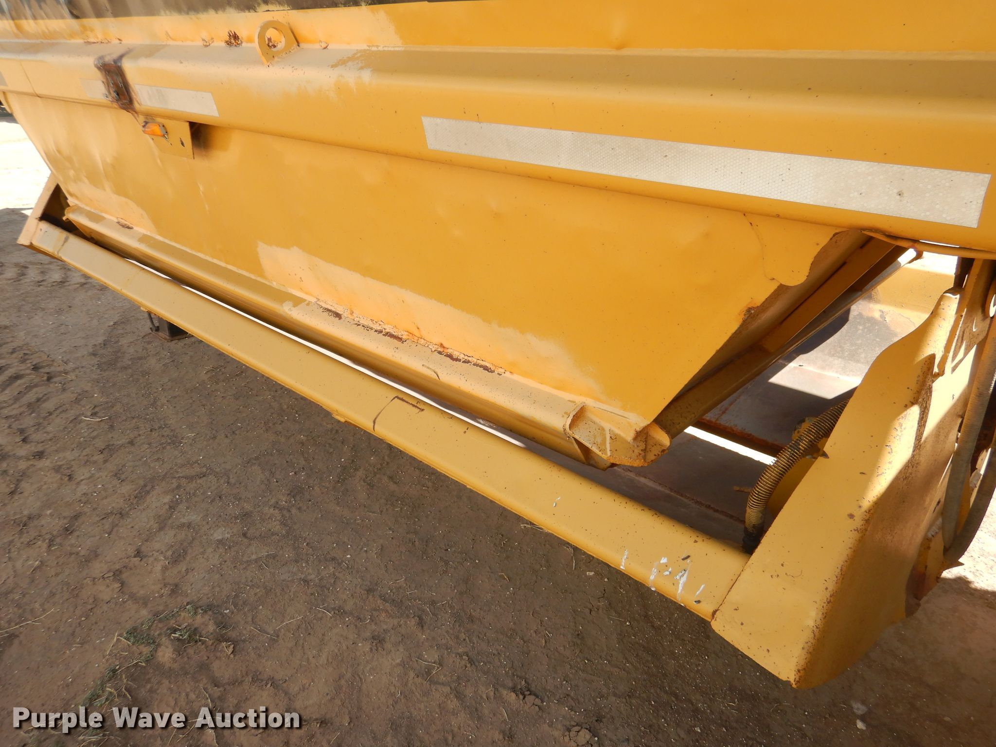 Purple Wave is selling a used Bottom Dump Trailer in Kansas. This item is a 1988 Trail King 1827-0-3Axle bottom dump trailer with the following: 40'L x 8'W overall, 67" side height, 12" side board height, Dual hydraulic cylinders, Air operated clamshell gate, Rear push block, 18 cu. yd. capacity, Steel construction, Dual leg landing gear, Spring suspension, Air brakes, Triple axle, Steel wheels, 11R22.5 tires, GVWR 69,040 lbs, GAWR 20,000 lbs, Unknown operating condition