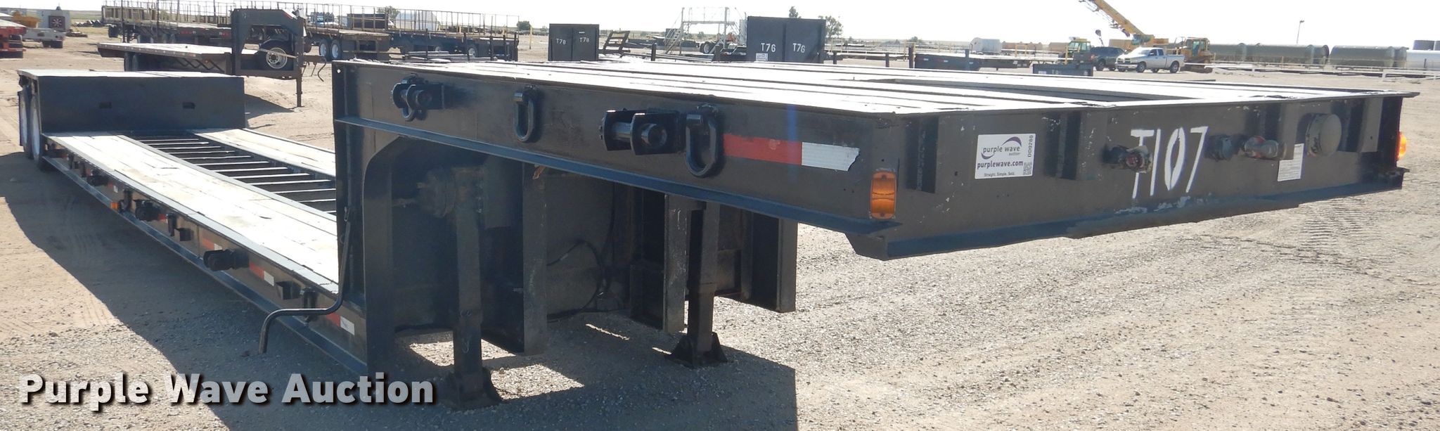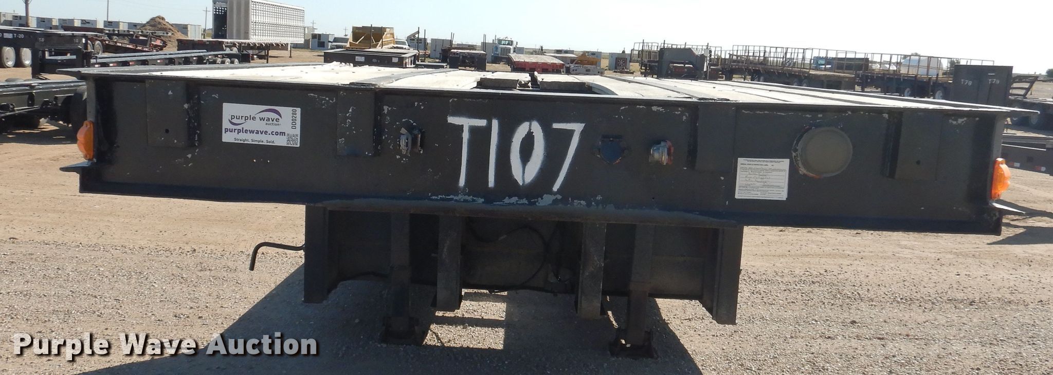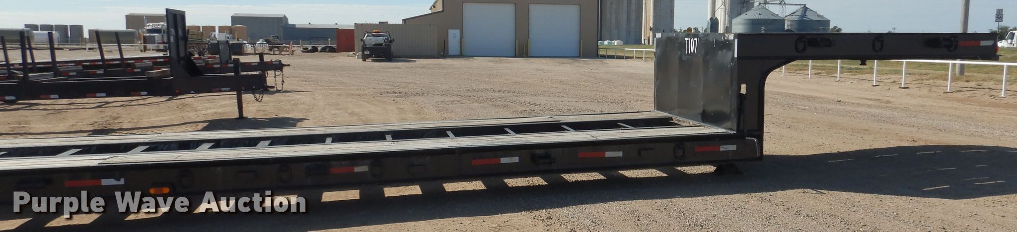 Purple Wave is selling a used Flat or Drop Deck Trailer in Kansas. This item is a 1972 Birmingham 820DLS drop deck trailer with the following: 54'L x 8'W overall, 10.5'L top deck, 35'L deck, 8.5'L rear deck, Wood deck, Dual leg two speed landing gear, Spring suspension, Air brakes, Tandem axle, Steel wheels, 295/75R22.5 tires, GVWR 55,300 lbs, GAWR 20,000 lbs