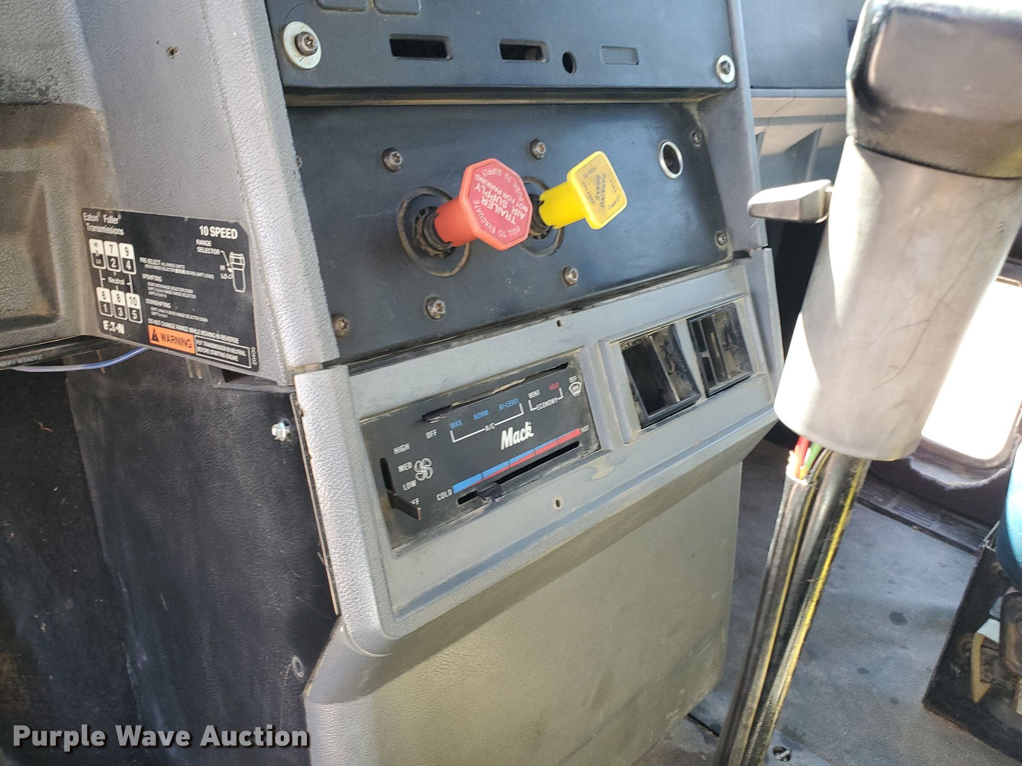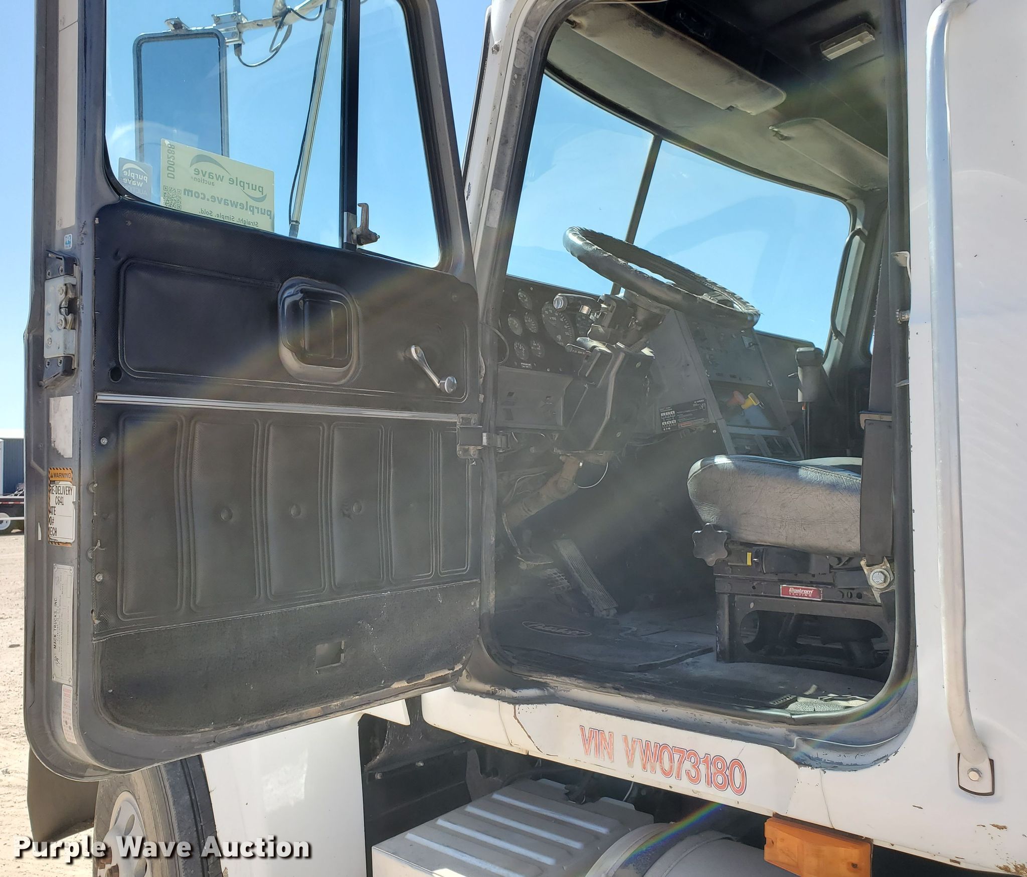 1997 Mack CH613 semi truck. 266,367 miles on odometer, Engine hours: 17,486, Unit #: 65. Engine Mack E7-427, Displacement: 12.0L, Cylinders: 6, Fuel type: Diesel. Transmission Eaton Fuller, Manual, Speed: 10. Chassis Axles: Tandem, Differential lock: Inter-axle, Suspension: Air, Brakes: Air. Interior AC, Heat, Heated mirrors, Cruise control, Dump valves, Air ride cab. Operational Deck plate: Steel, Fifth wheel type: Air operated, Sliding, Fuel tank: Dual. Tires Size: 11R22.5. Kansas title. 1M2AA18Y4VW073180. Double T Industries Inc. - Open inspection November 11. 980 KS-51 N. Rolla, KS 67954