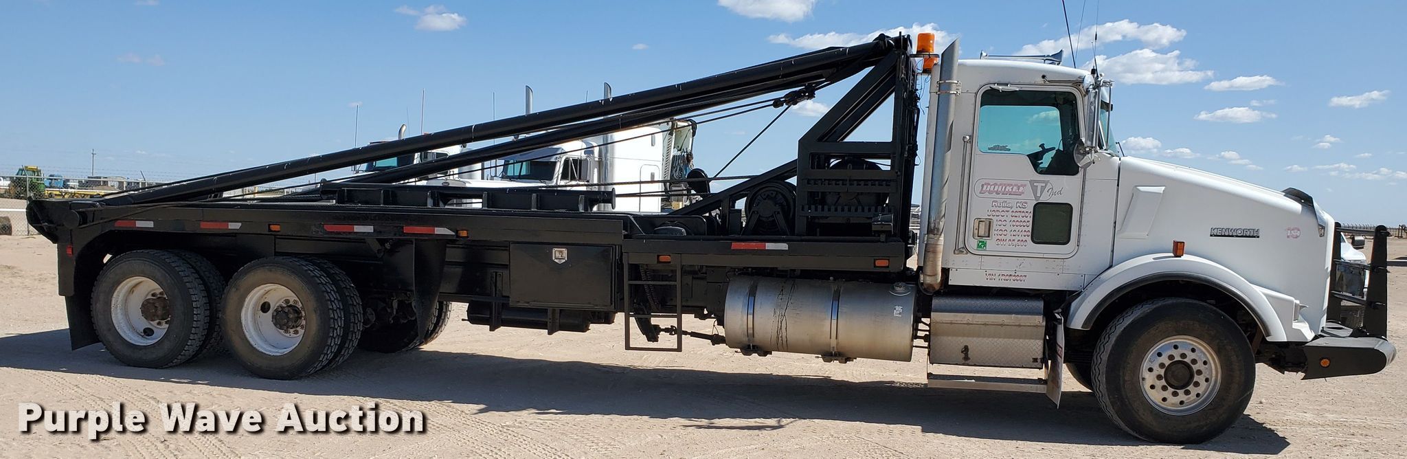 Purple Wave is selling a used Oilfield Truck in Kansas. This item is a 2001 Kenworth T800B winch truck with the following: 171,828 miles on odometer, Engine hours: 21,035, Unit #: 19