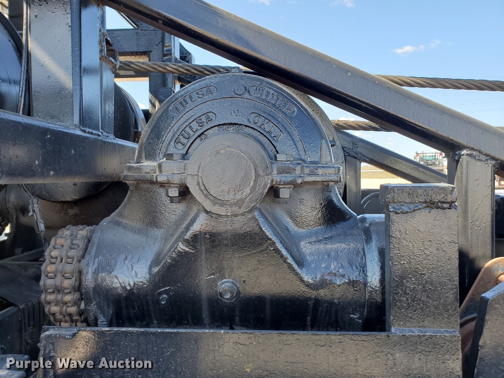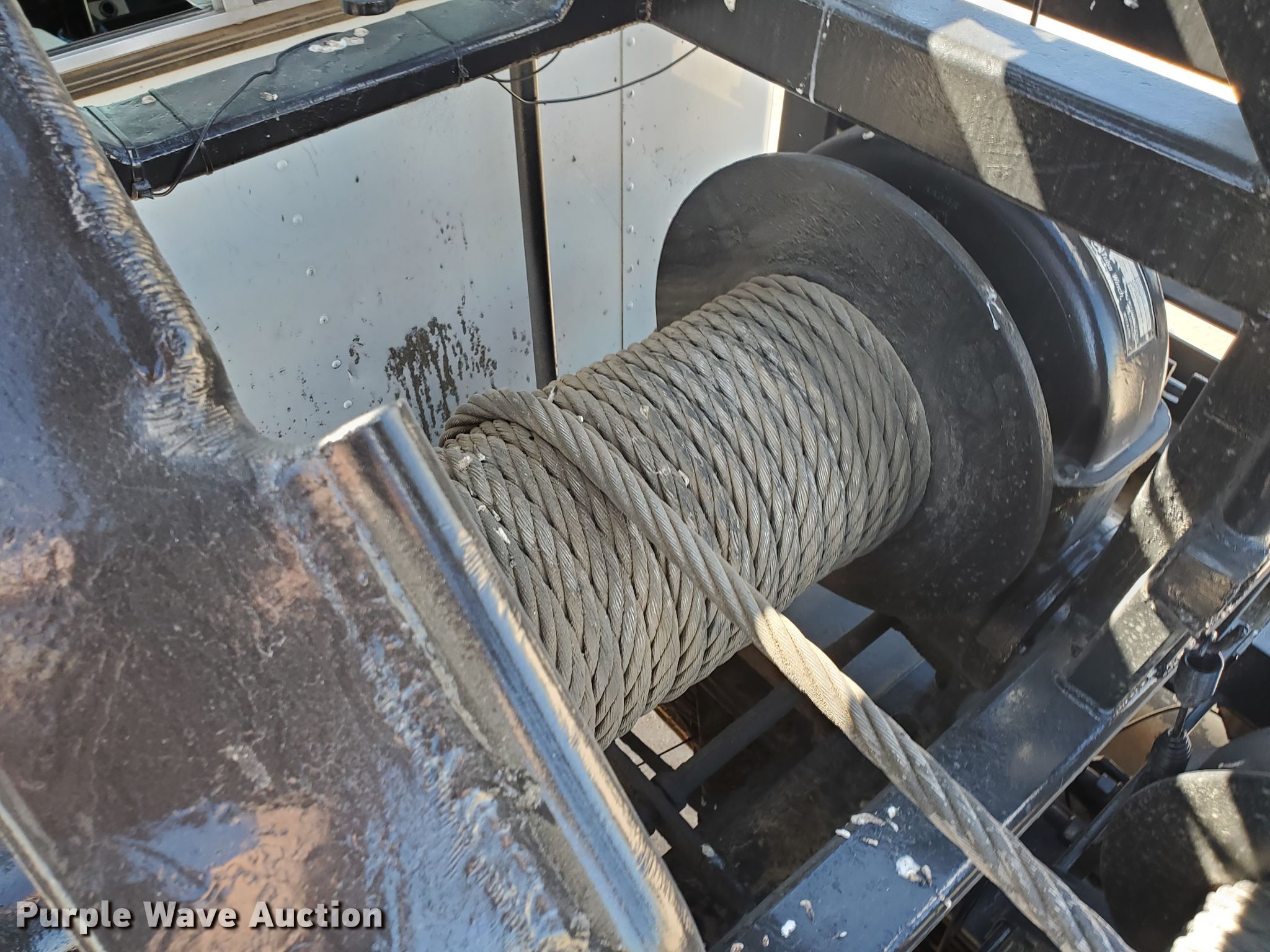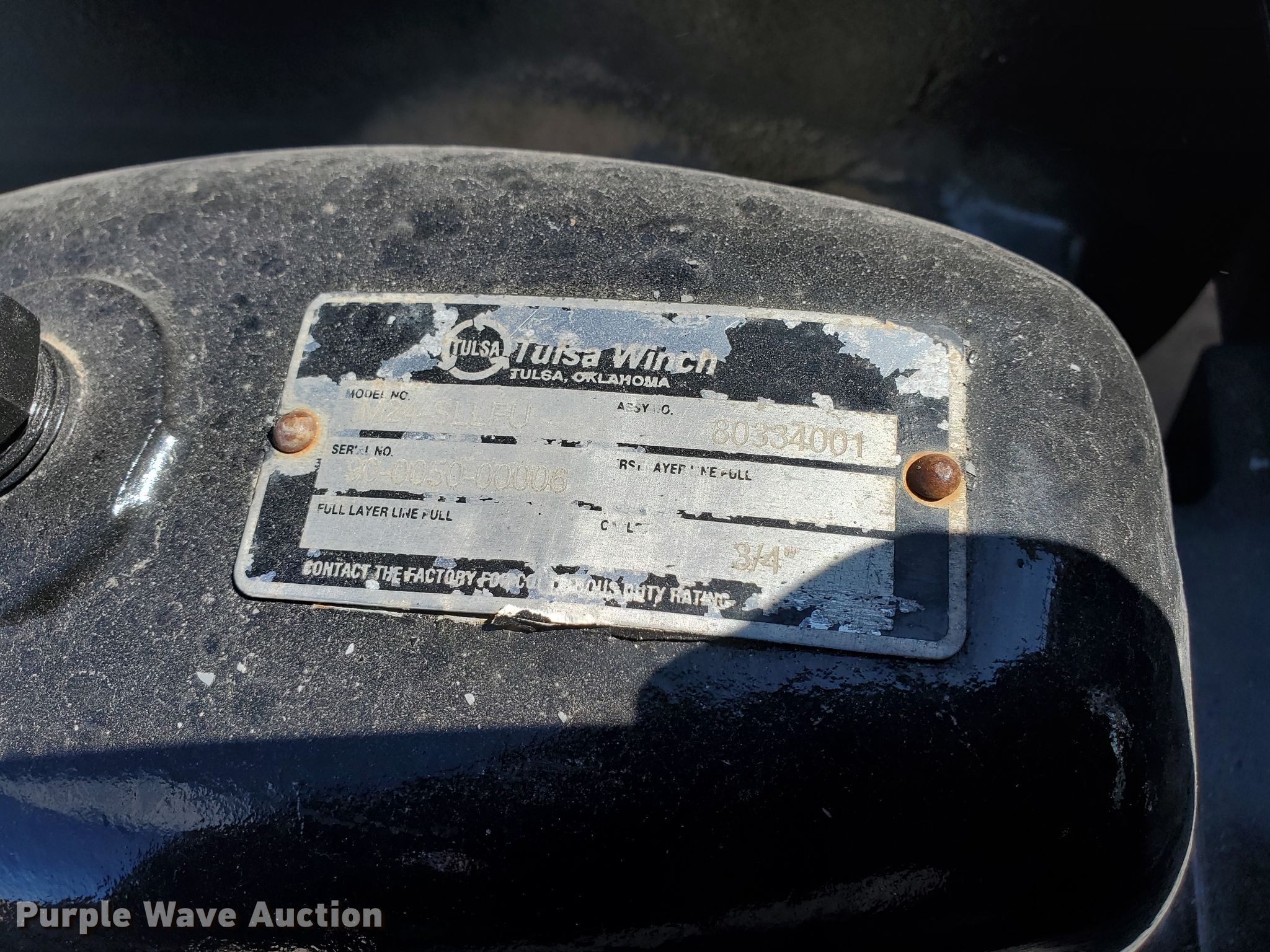 2001 Kenworth T800B winch truck. 171,828 miles on odometer, Engine hours: 21,035, Unit #: 19. Engine Caterpillar C15, Displacement: 14.6L, Cylinders: 6, Fuel type: Diesel, HP: 475, Engine brake. Transmission Eaton Fuller, Manual, Speed: 13, Auxiliary transmission. Chassis Axles: Tandem, Differential lock, Brakes: Air, PTO, GVWR: 64,740 lbs, Wheelbase: 316". Interior AC, Heat, Cruise control , Heated mirrors, Auxiliary controls. Operational Flatbed Length: 25.5', Width: 104", Triple winch Tulsa, (2) 1" cable, 3/4" cable.. Tires Front: 425/65R22.5, Rear: 11R24.5. Kansas title. 1NKDLB0X21R876937. Double T Industries Inc. - Open inspection November 11. 980 KS-51 N. Rolla, KS 67954