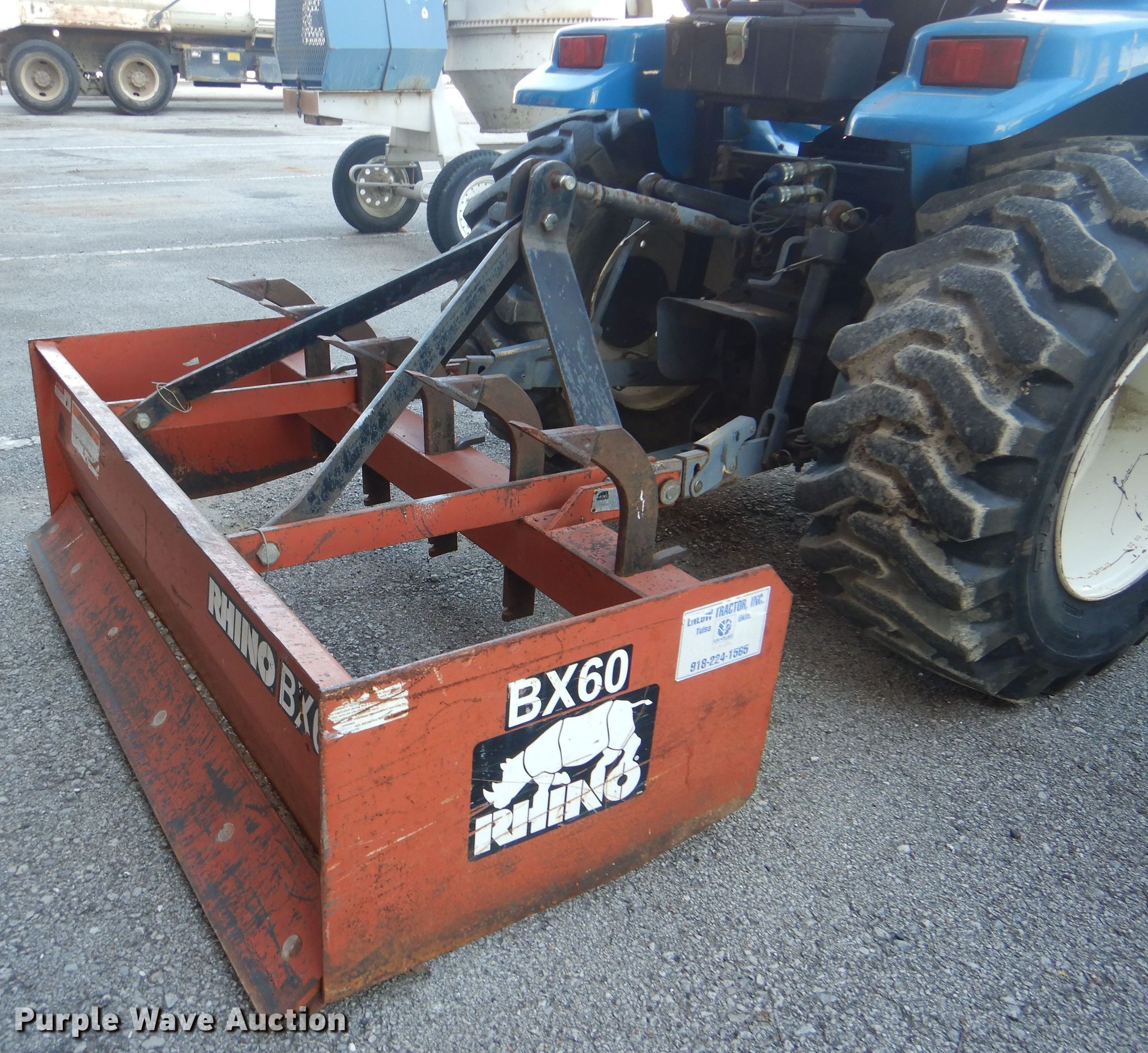 New Holland TC33D MFWD tractor. 1,510 hours on meter, Unit #: 821. Engine Shibura, Displacement: 1.5L, Cylinders: 3, Fuel type: Diesel, HP: 33. Transmission Manual, 9F - 3R. Operational PTO: 540, Three point, Loader Great Bend GB220, Controls: Joystick, Bucket Width: 61".. Tires Front: 25x8.50-14 NHS, Rear: 15x19.5 NHS, Wheelbase: 63". Rhino box blade 60"W, (5) shanks. City of Tulsa. 108 N Trenton Ave. Tulsa, OK 74103