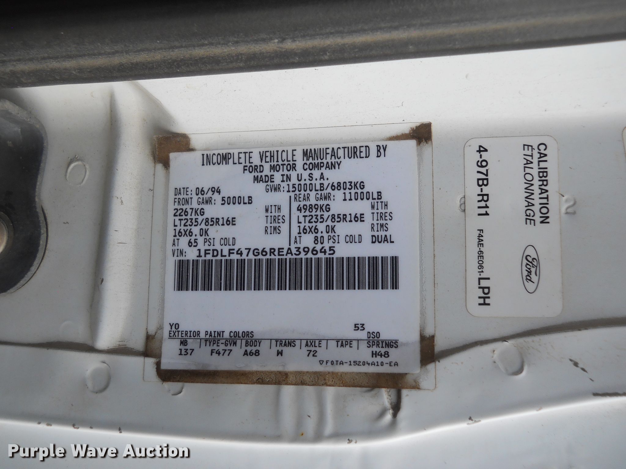1994 Ford F450 Super Duty dump truck. 36,369 miles on odometer. Engine Ford, Displacement: 7.5L, Cylinders: 8, Fuel type: Gas. Transmission Manual, Speed: 5. Chassis Axles: Single, Suspension: Spring, Brakes: Hydraulic, PTO, GVWR: 15,000 lbs, Wheelbase: 140". Interior Heat. Operational Dump bed Warren, 8' L x 92" W, Side height: 15", Bed type: Steel, Ram: Single , End gate: Manual. Tires Size: 235/85R16. Kansas title. Title distribution may be delayed up to 14 days from verification of funds. 1FDLF47G6REA39645. City of Salina. 412 Ash St. Salina, KS 67401