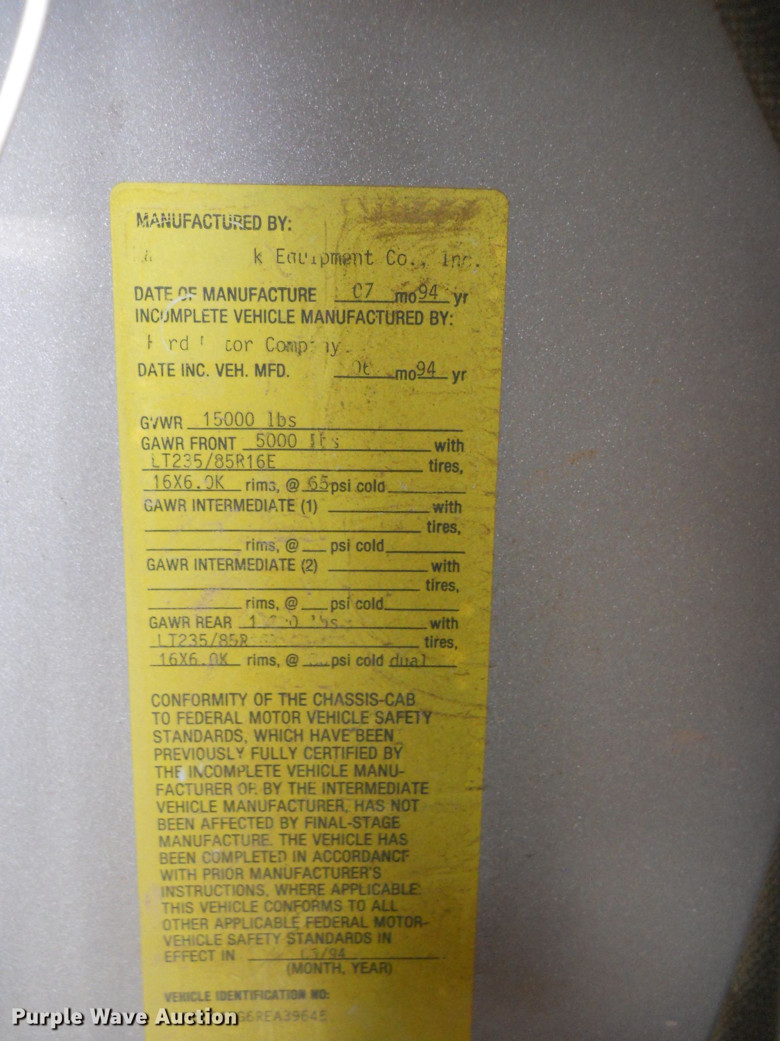 - GVWR: 15,000 lbs