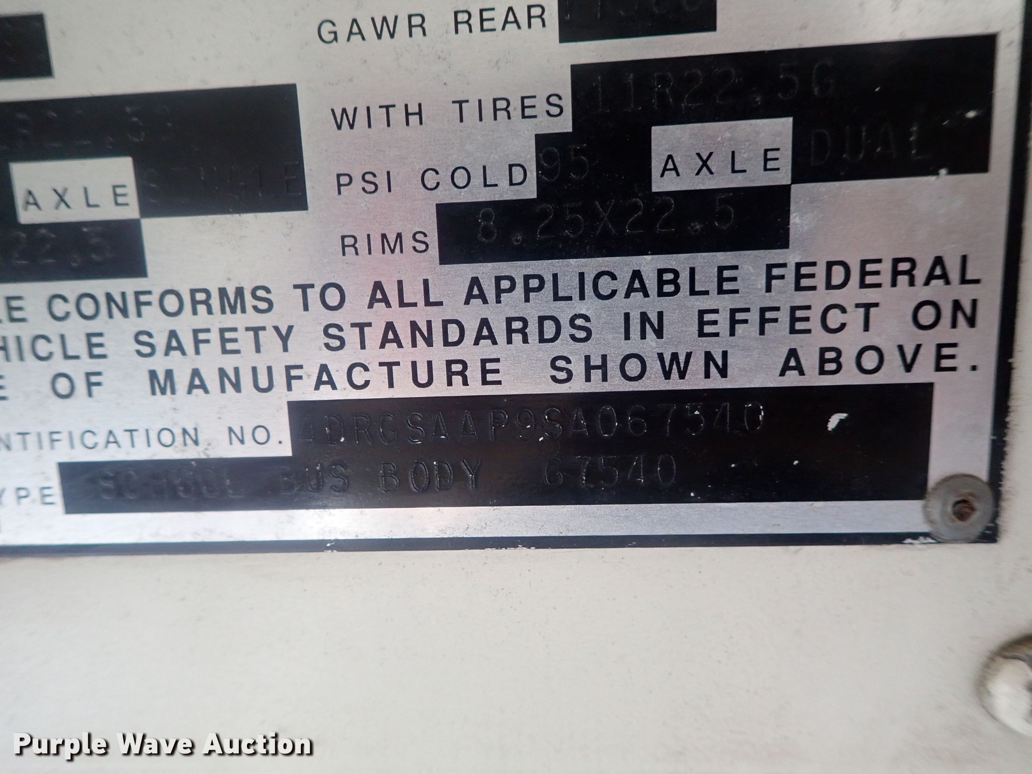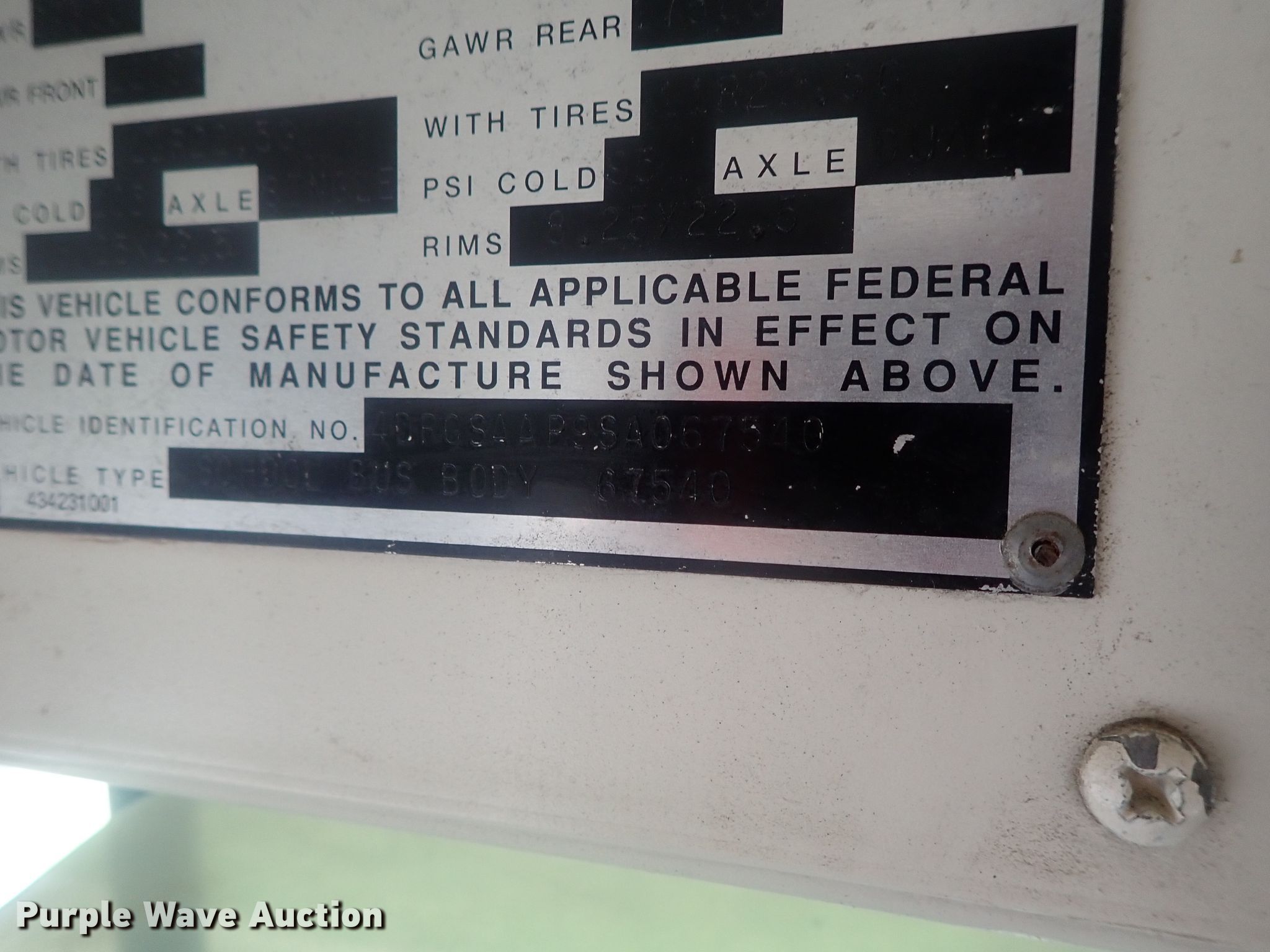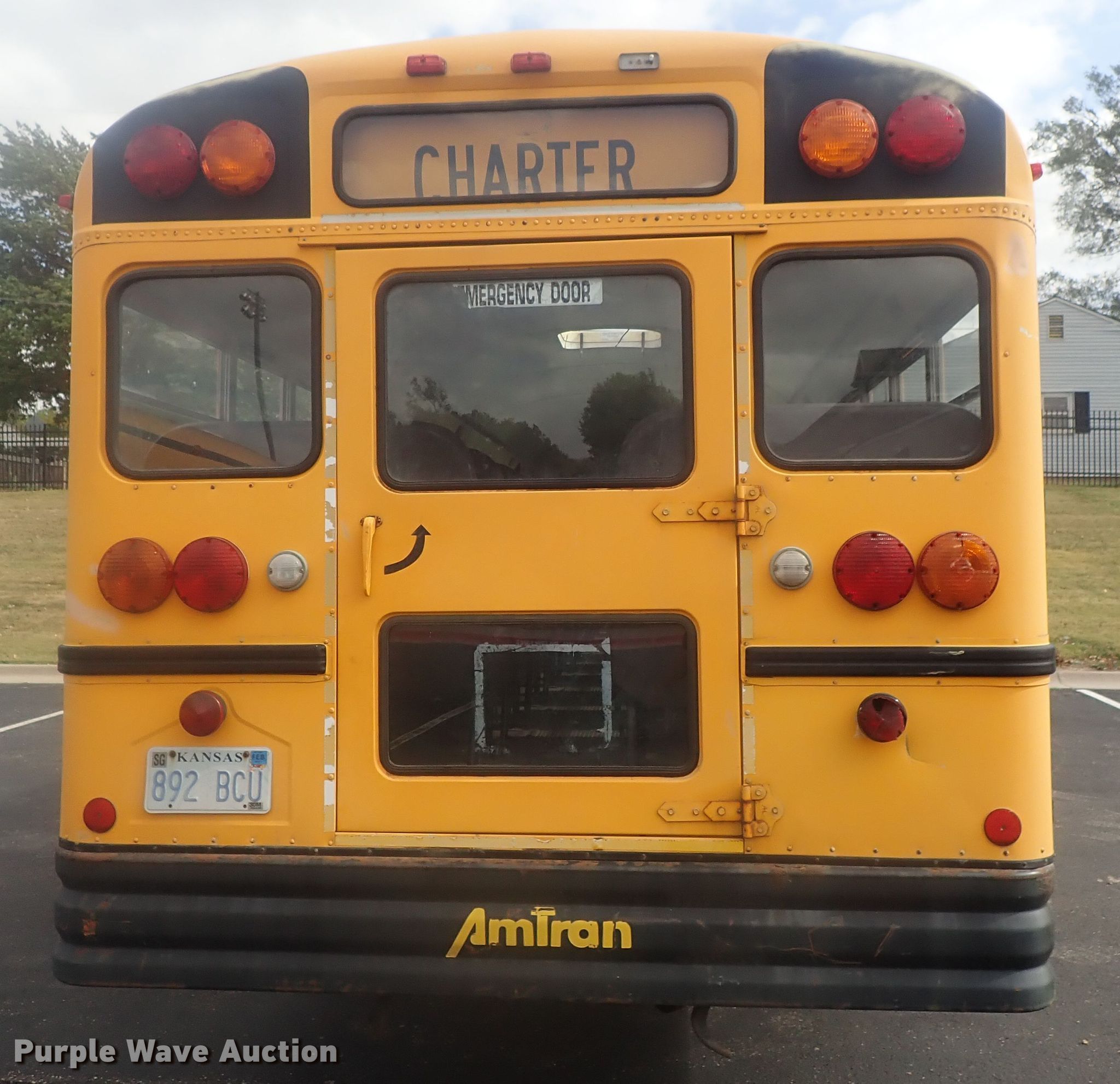 1995 International AmTran school bus. 133,415 miles on odometer, Engine hours: 8,652. Engine International DT466, Displacement: 7.6L, Cylinders: 6, Fuel type: Diesel. Transmission Automatic. Chassis Axles: Single, Suspension: Spring, Brakes: Hydraulic. Interior Heat. Tires Front: 11R22.5, Rear: 12R22.5. Notes One roof access door detached but included. Kansas title. 4DRGSAAP9SA067540. Boys and Girls Club of Southcentral Kansas. Wichita, KS 67204