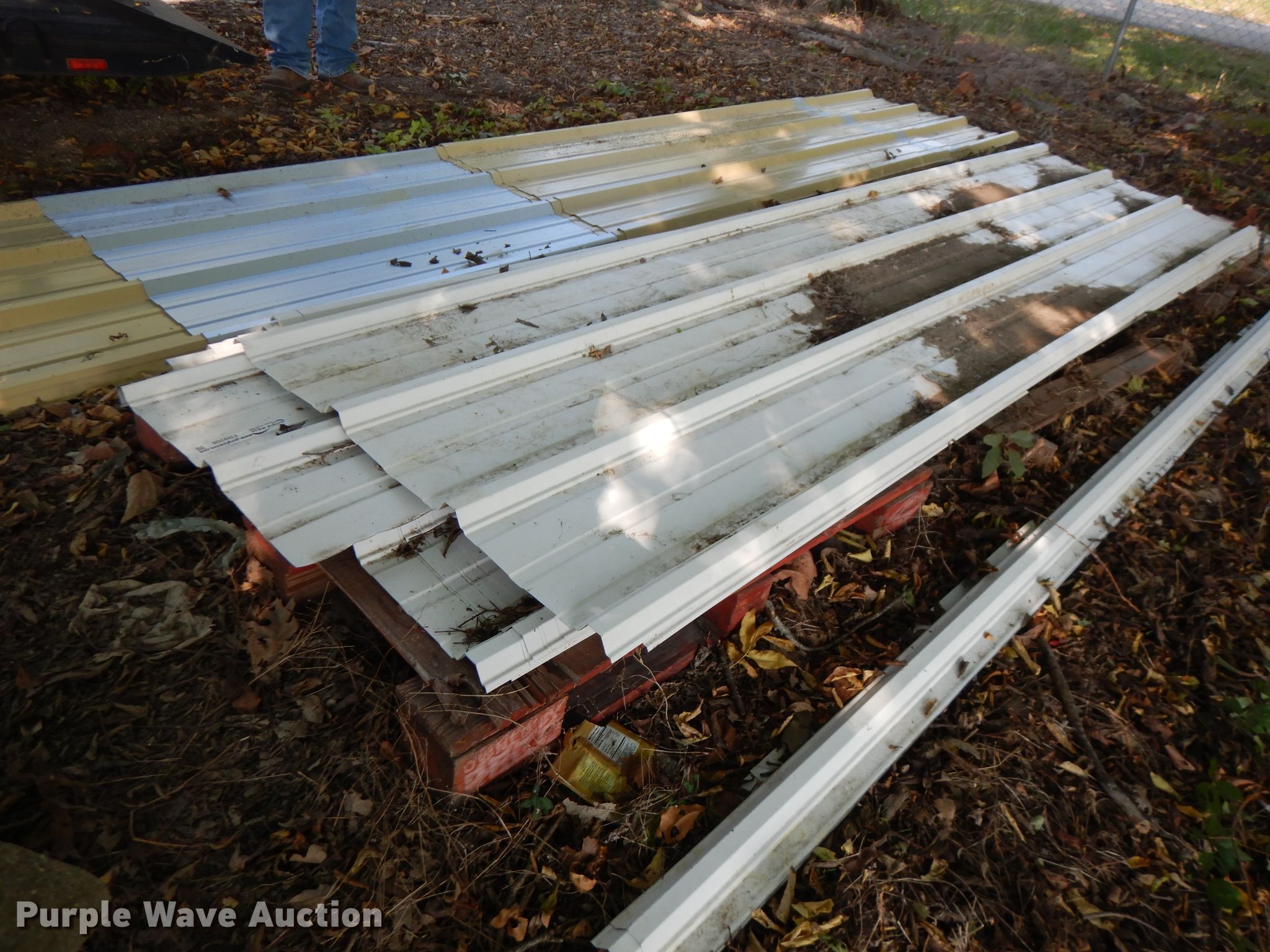Purple Wave is selling a used Building Materials in Kansas. This item is a Approximately 30 sheets of steel siding/roofing with the following: 12'L x 38"W