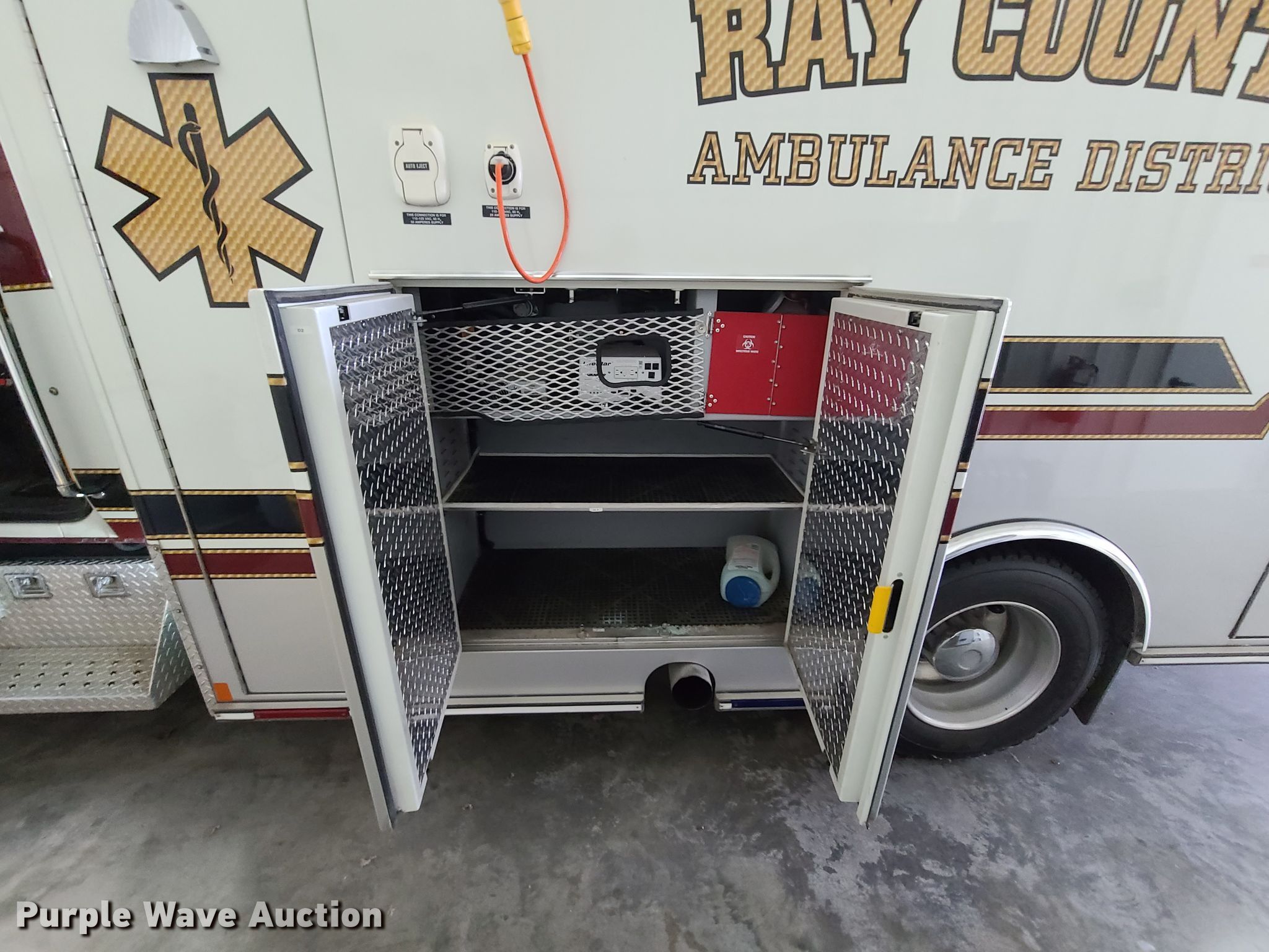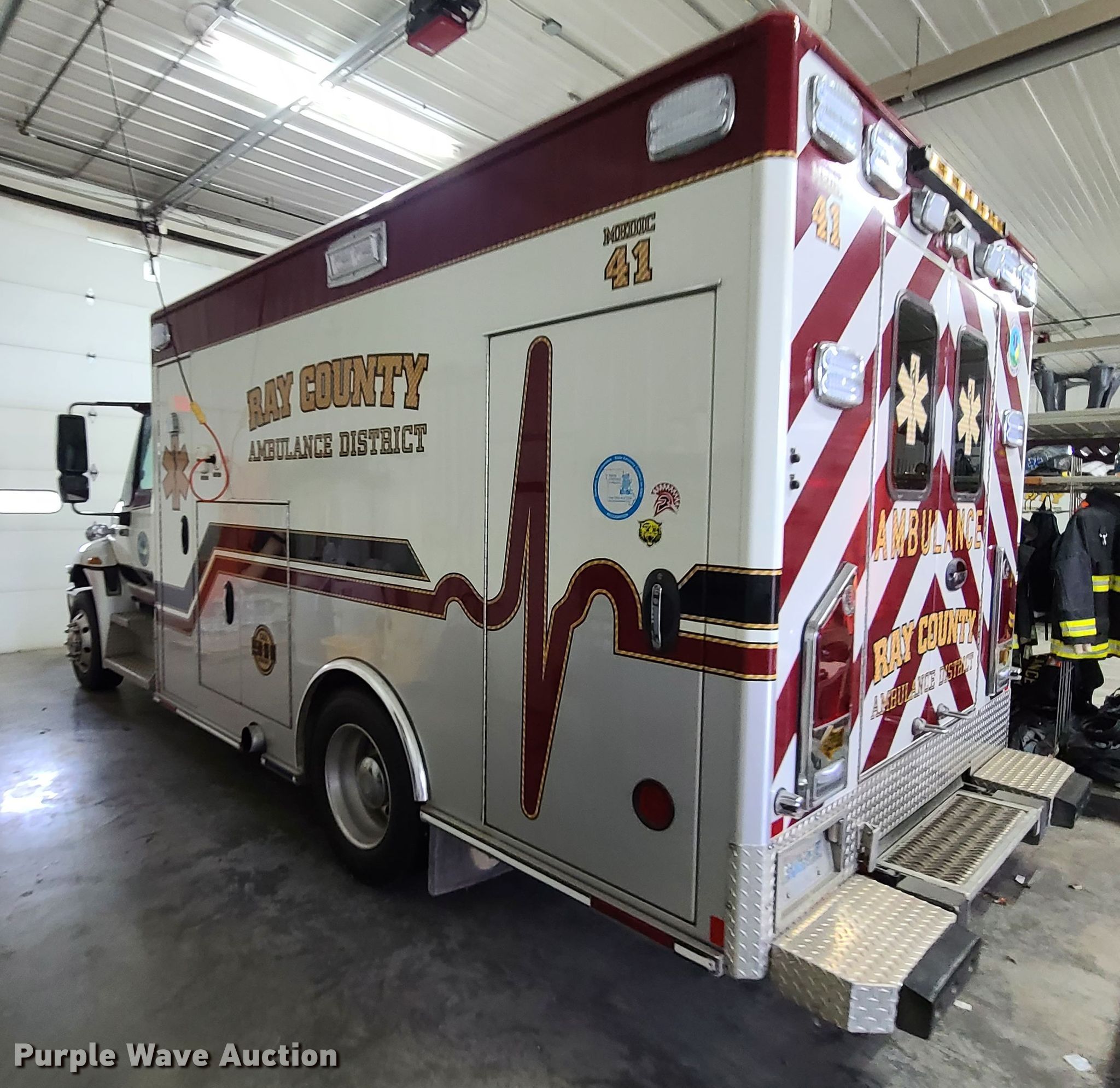 2014 International 4300 ambulance. 196,247 miles on odometer. Engine International DT466, Displacement: 7.6L, Cylinders: 6, Fuel type: Diesel. Transmission Automatic. Chassis Axles: Single, Suspension: Air, Brakes: Air, GVWR: 20,000 lbs. Interior Heat, Power windows, Cruise control. Operational Ambulance Wheeled Coach Industries IX. Tires Size: 245/70R19.5. Notes Battery will be replaced prior to auction. Missouri title. 3HAMNAAM2EL755683. Ray County Ambulance District. 10625 Lee Holt Lane. Richmond, MO 64085