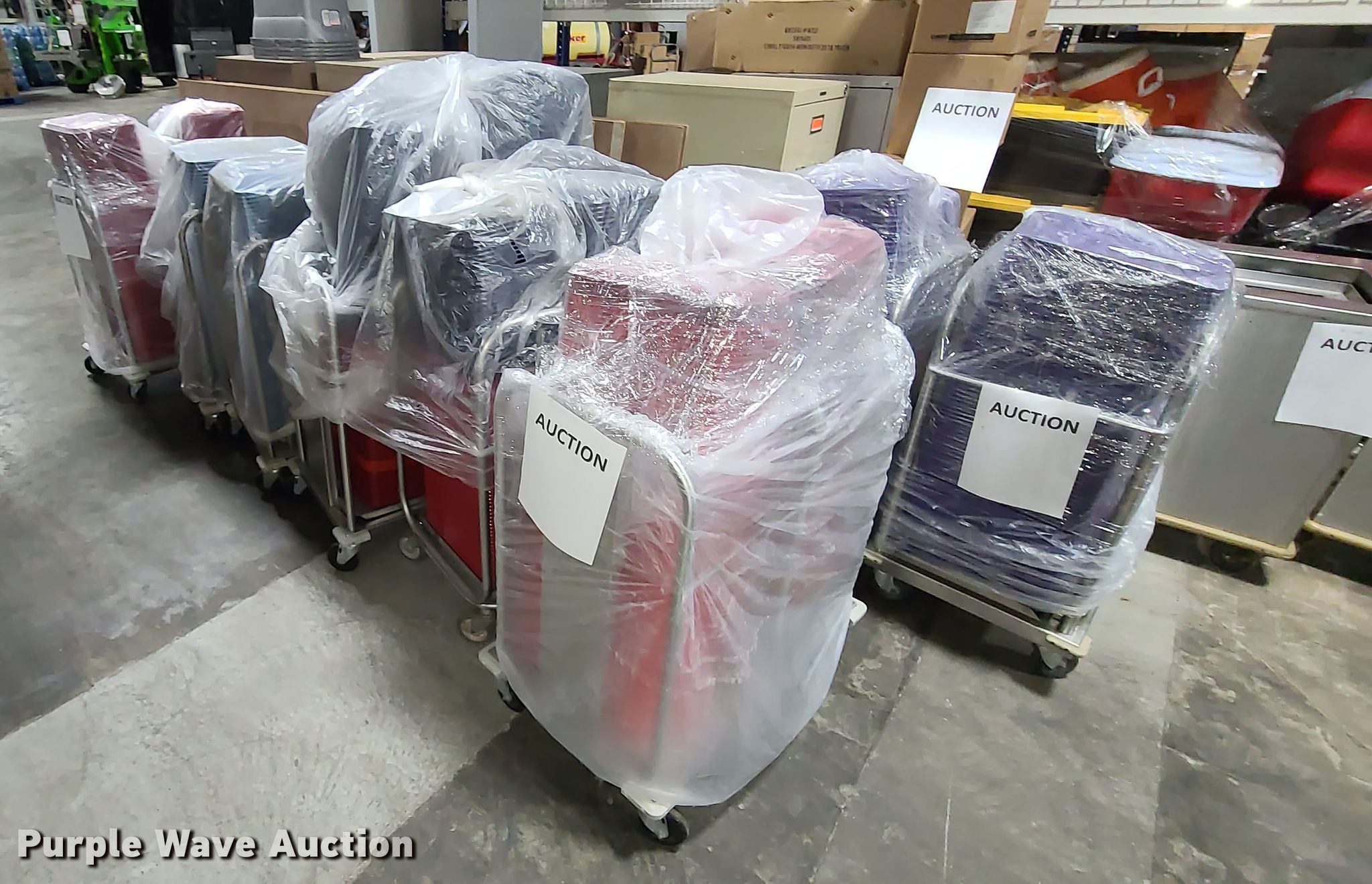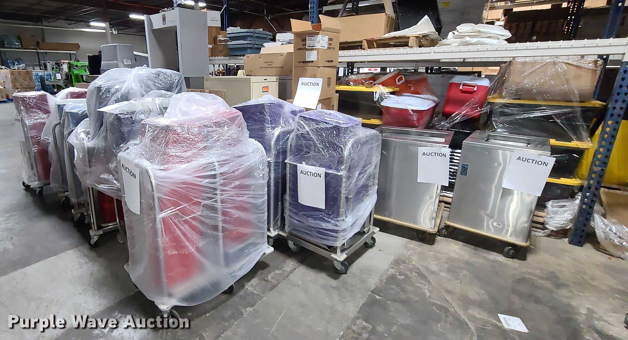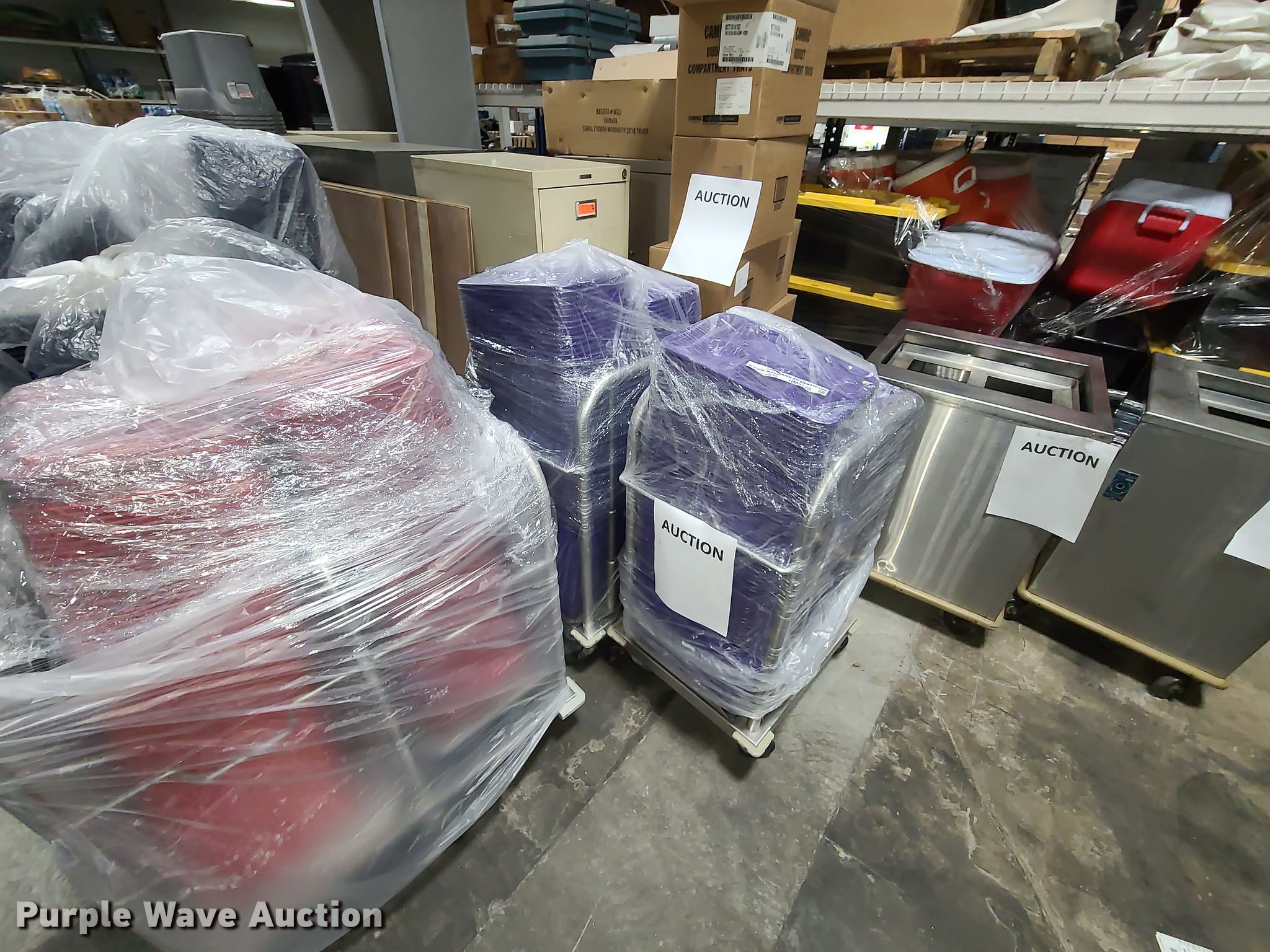 Purple Wave is selling a used Restaurant Equip. in Missouri. This item is a Approximately 1,200 lunch trays with the following: (2) food tray holders, Some unused