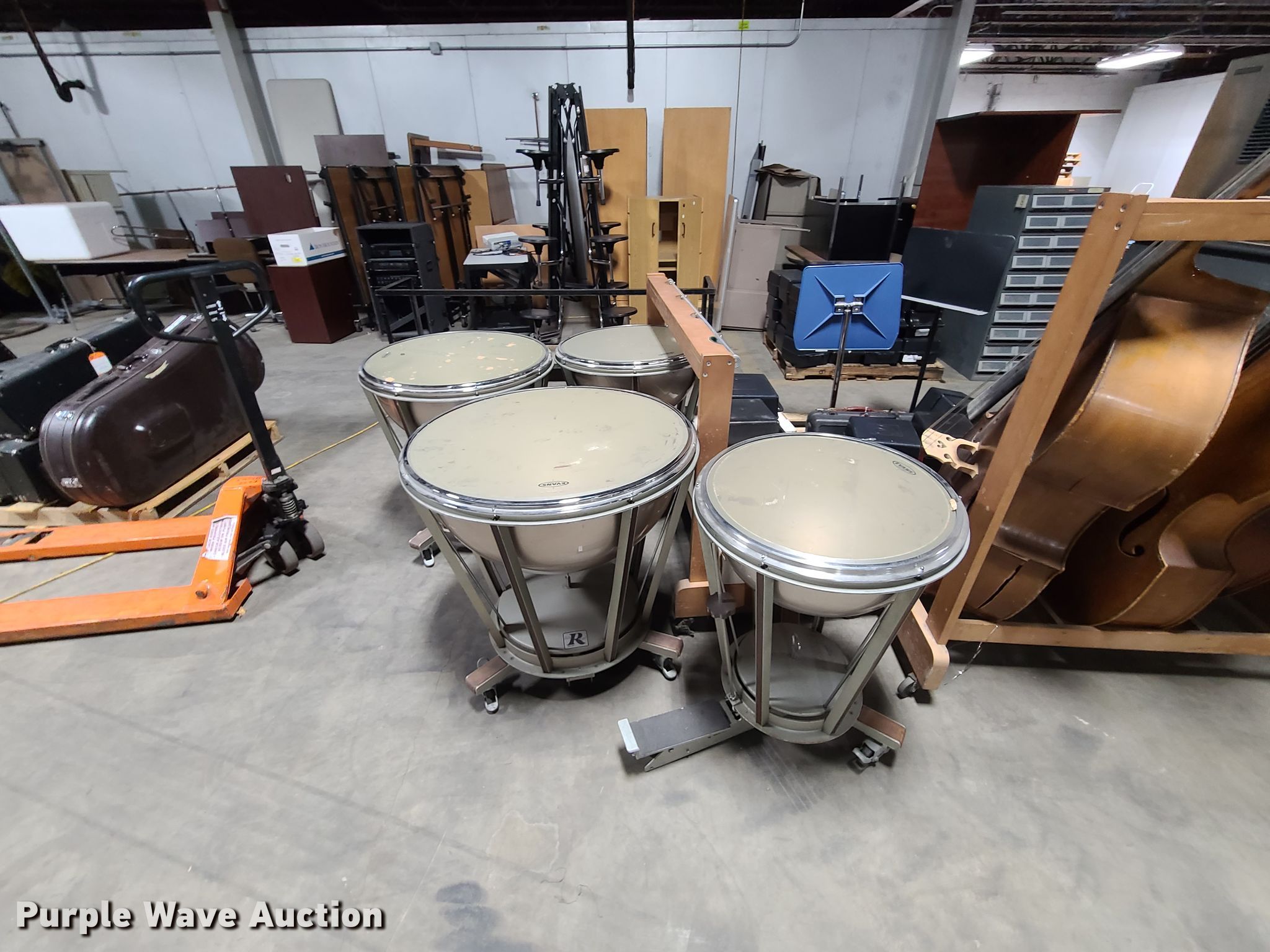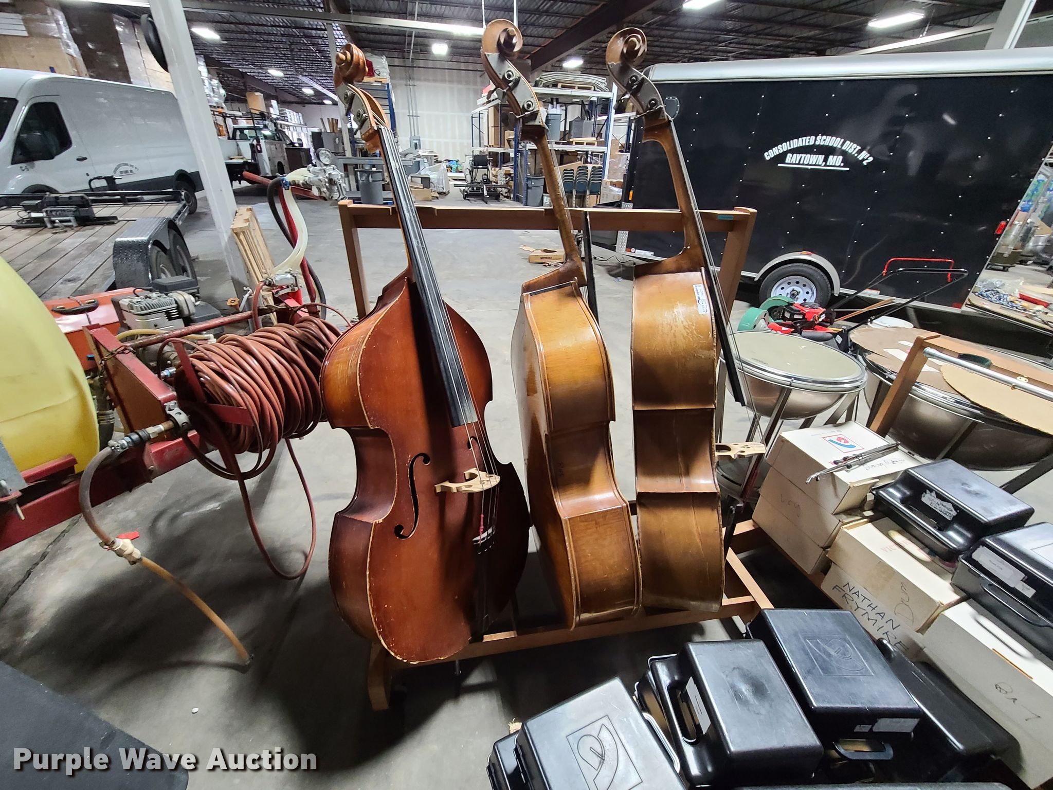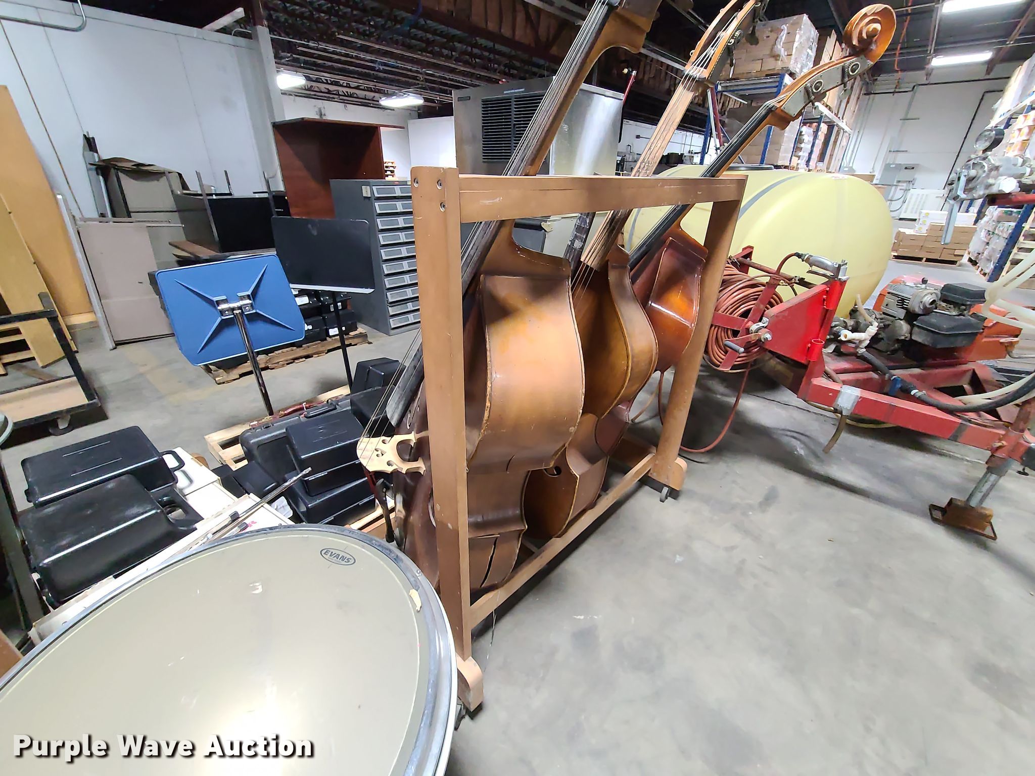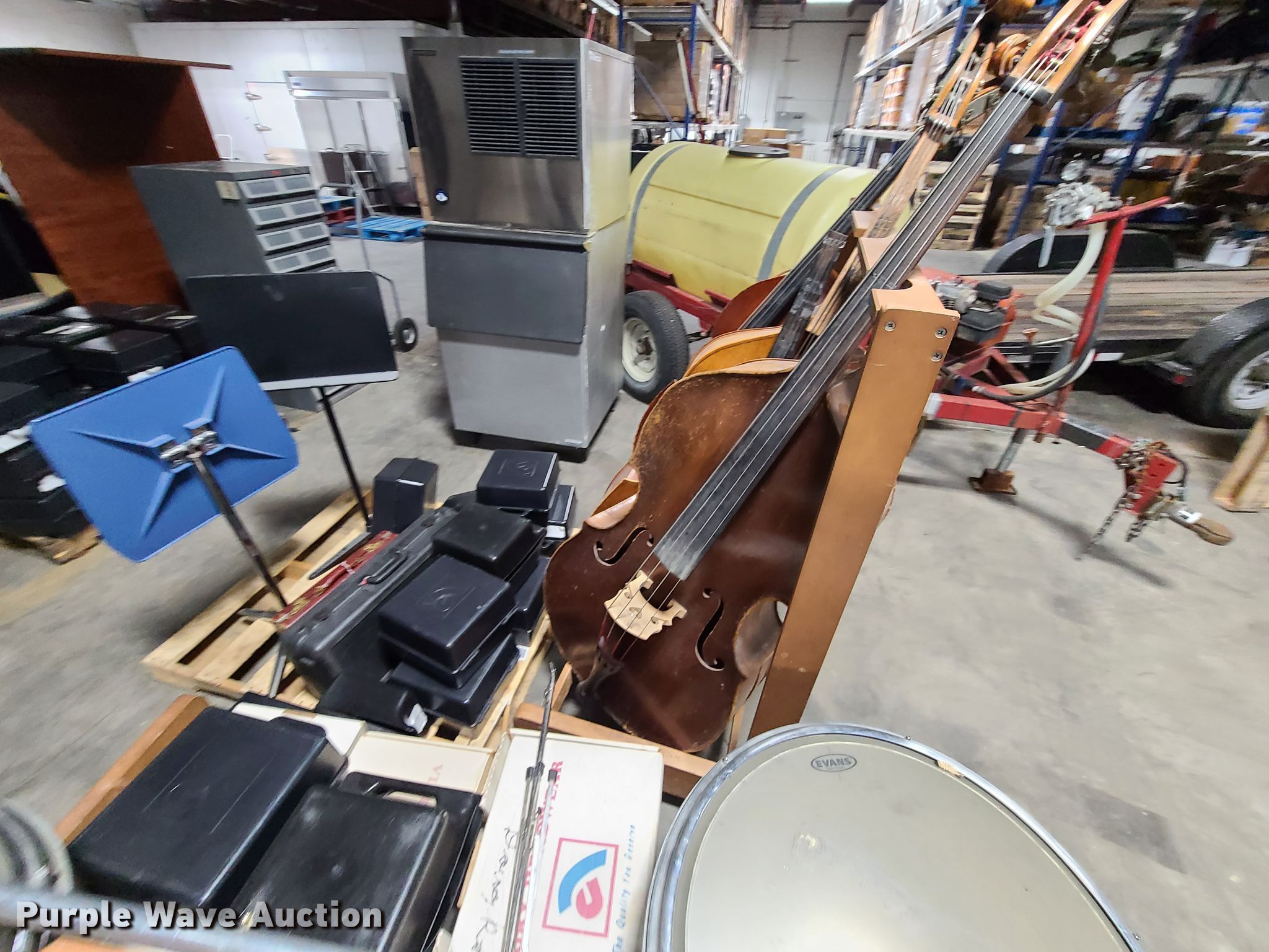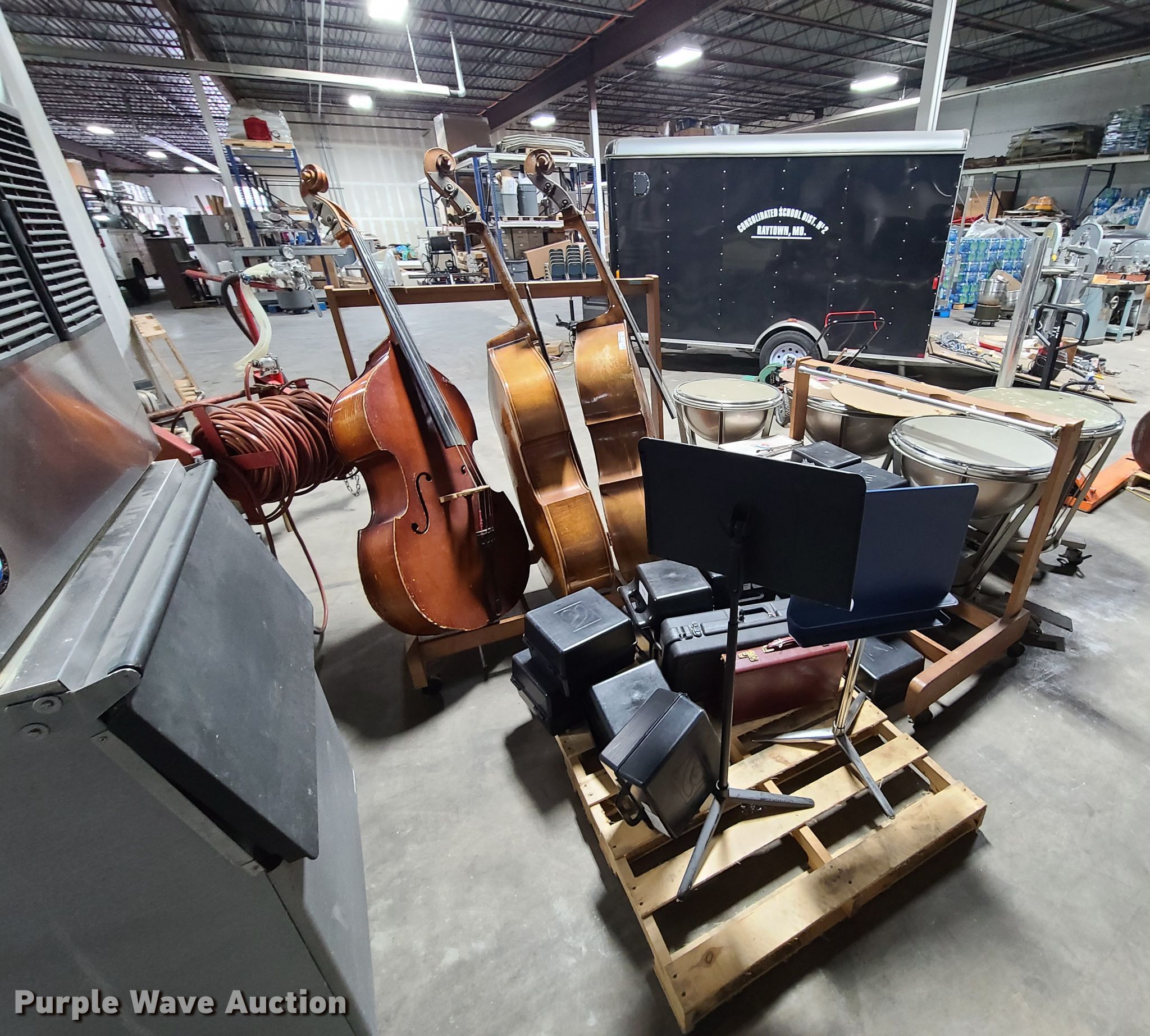 Purple Wave is selling a used Music Equip. in Missouri. This item is a Band instruments with the following: (3) Cellos, (4) drums, Marching hats and more