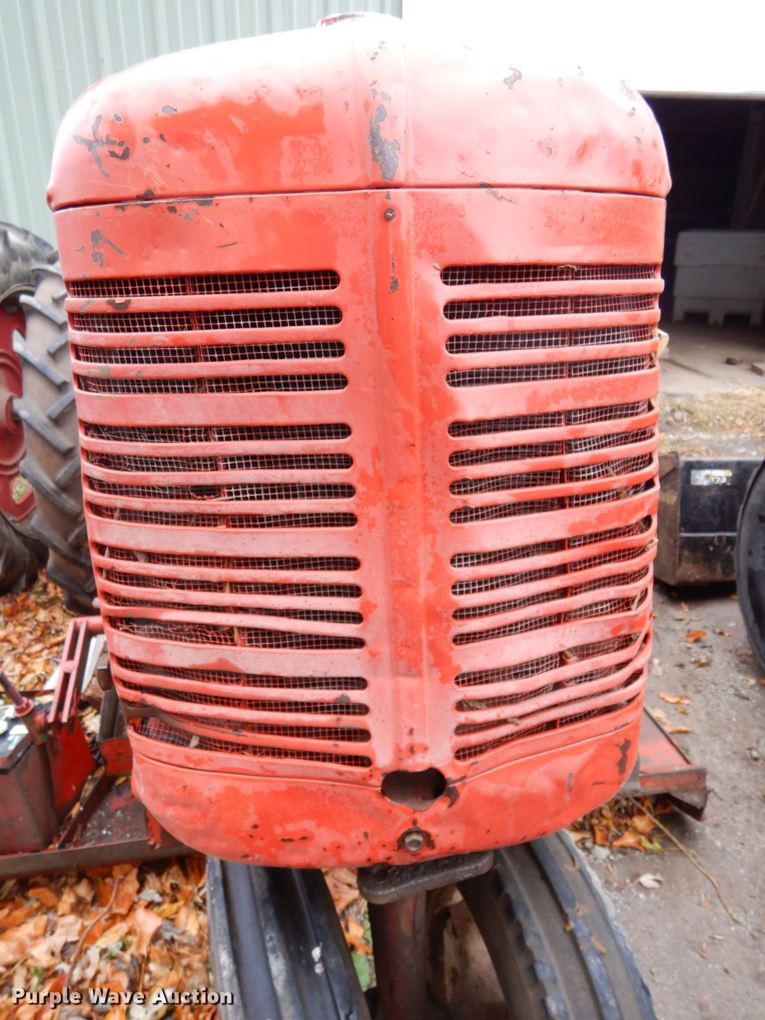 1949 International Farmall C tractor. Serial: FC28057. Engine International Harvester C113, Displacement: 1.9L, Cylinders: 4, Fuel type: Gas. Transmission Manual, 4F - 1R. Operational PTO: 540, Belly mower. Tires Front: 5.00-15SL, Rear: 11.2-36. Notes Model M engine hood, Parts missing, Non-operational unit. 2874 Co Rd P41. Fort Calhoun, NE 68023