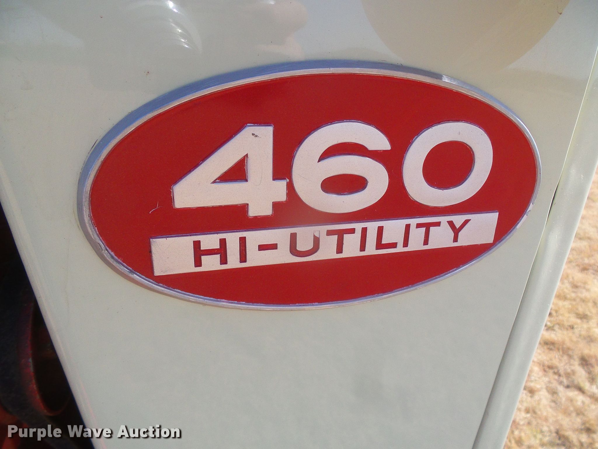 1958 International 460 Hi-Utility tractor. 5,825 hours on meter, Serial: 1524. Engine International Harvester , Displacement: 3.6L, Cylinders: 6, Fuel type: Gas. Transmission Torque amplifier, 10F - 2R. Operational PTO: 540, Three point. Tires Front: 6.00-16, Rear: 13.6-38. Charles Norwood Irrevocable Trust. Garden City, KS 67846