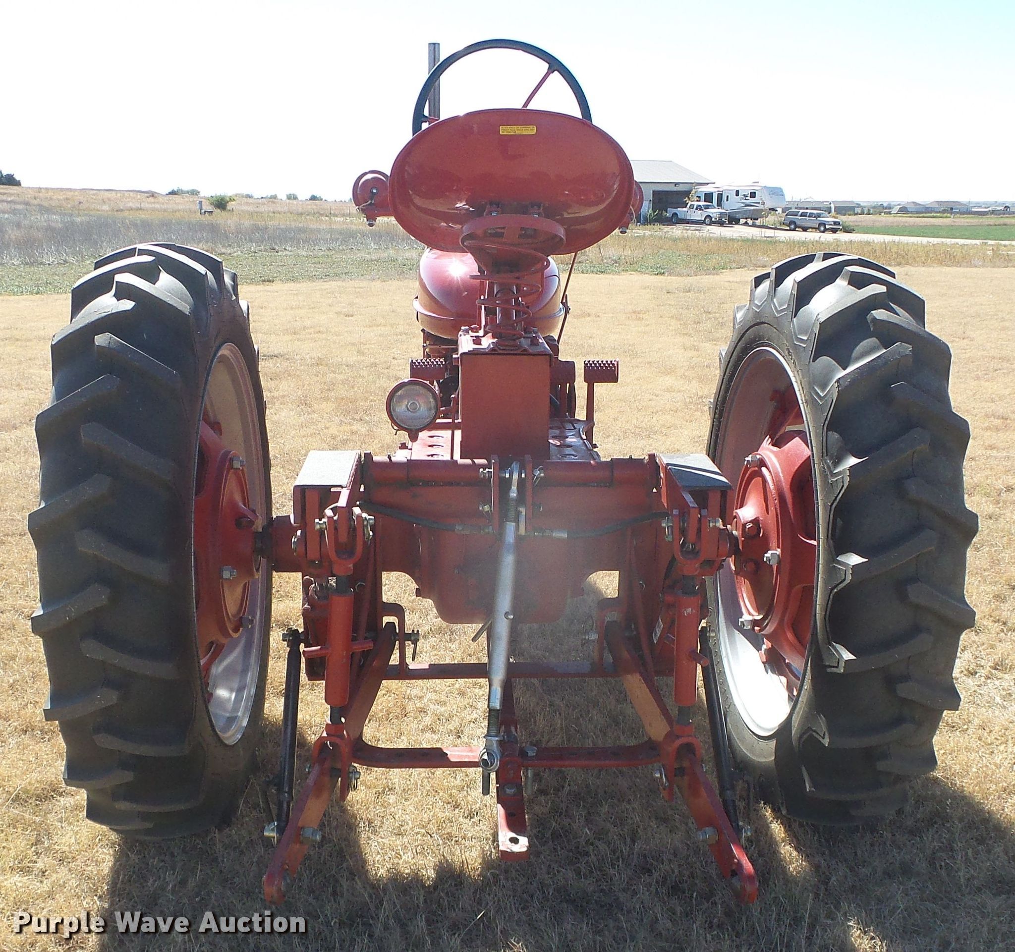 1953 International Farmall Super H tractor. Serial: 20594J. Engine International Harvester C164, Displacement: 2.7L, Cylinders: 4, Fuel type: Gas. Transmission Manual, 5F - 1R. Operational PTO: 540, Three point Top link. Tires Front: 5.50-16, Rear: 12.4-38. Charles Norwood Irrevocable Trust. Garden City, KS 67846