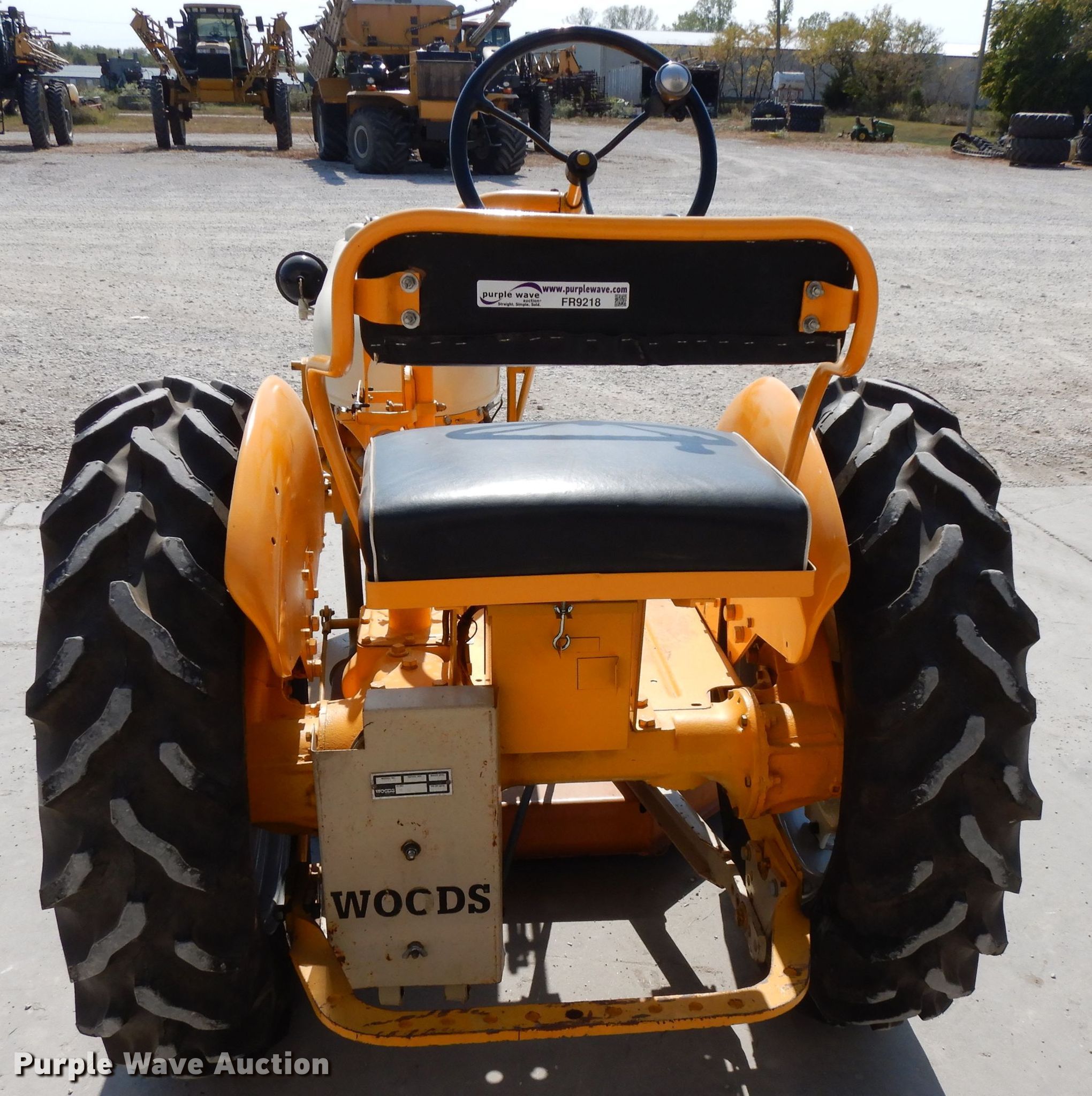 1966 International Cub Lo-Boy tractor. Serial: 21823J. Engine International , Cylinders: 4, Fuel type: Gas. Transmission Manual, 3F - 1R. Tires Front: 4.00-12, Rear: 9.5-24. Notes Woods 420L-6 mower deck 42"W, Serial: 703373. 101 S. Wilson Ave. Chanute, KS 66720