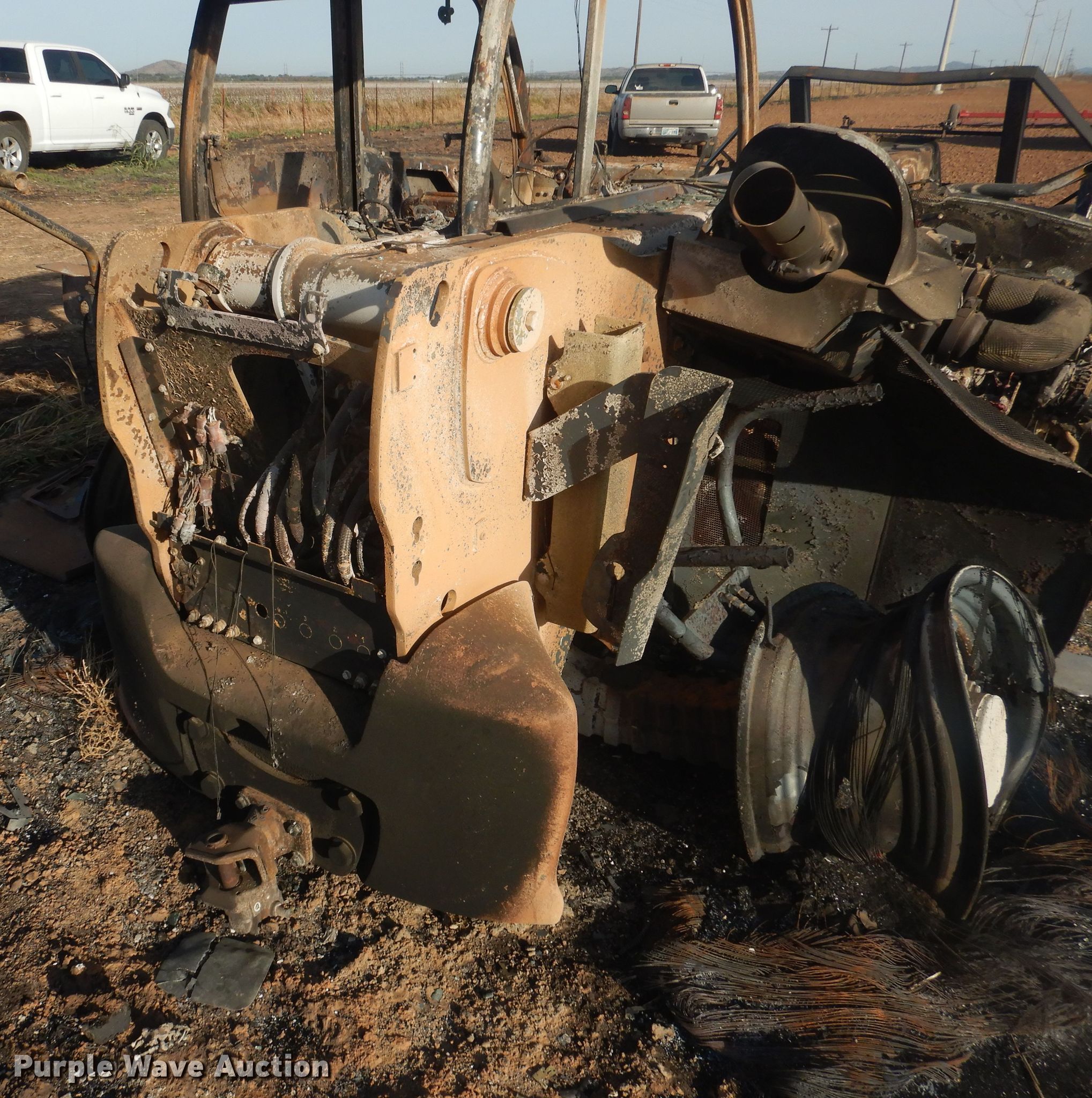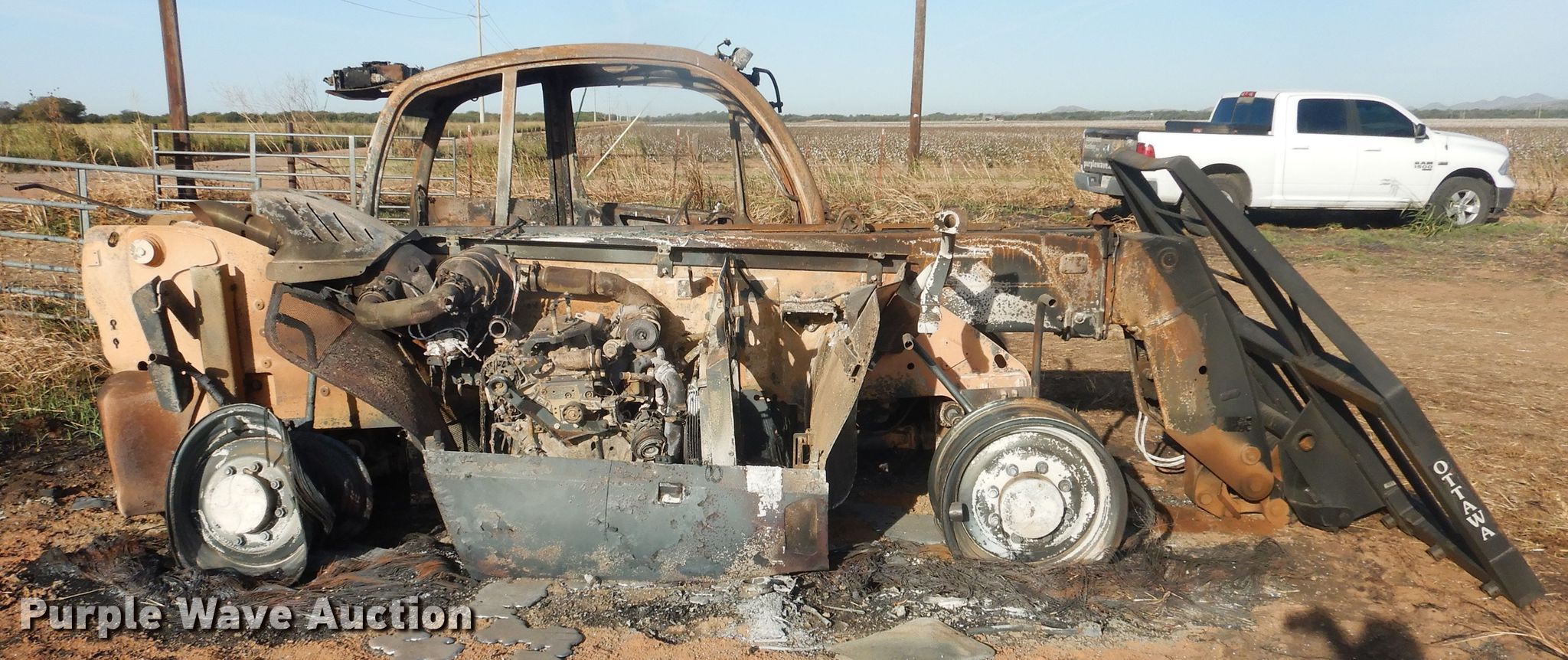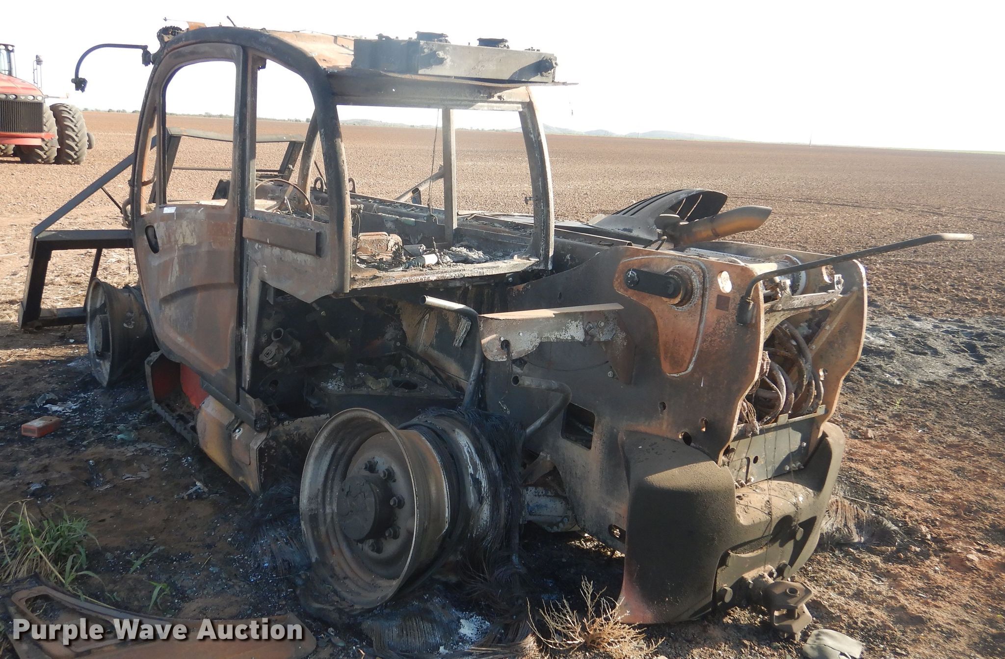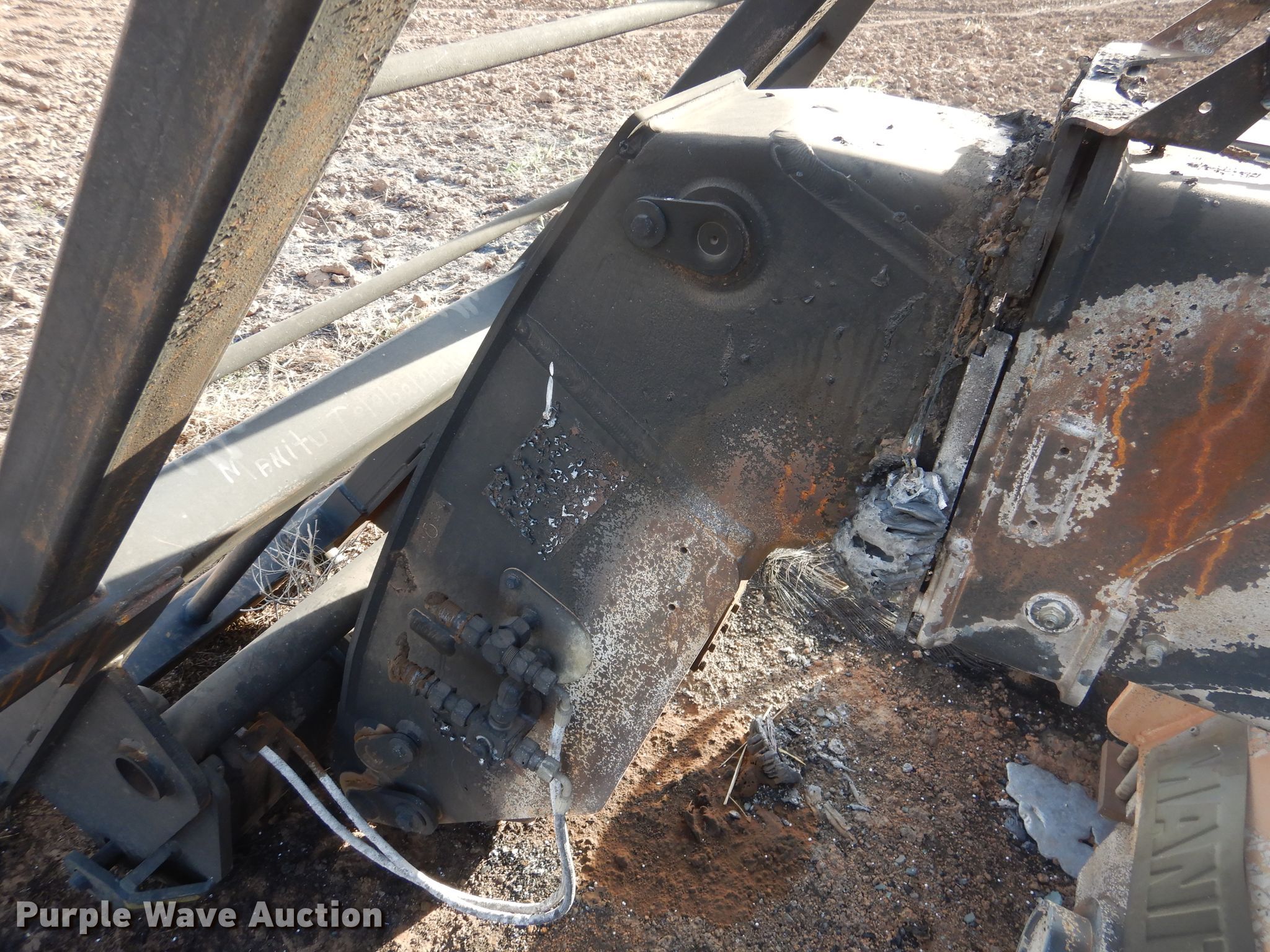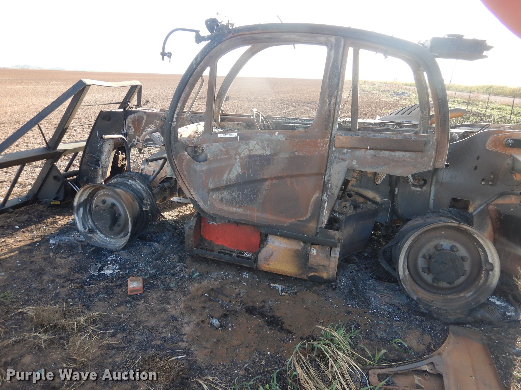 2020 Manitou MLT840-145 telehandler. Unknown hours on meter, Serial: 01019674, Claim #: 2020000390. Engine John Deere, Cylinders: 4, Fuel type: Diesel. Transmission Powershift, 3F - 3R. Operators station Enclosed cab. Operational Maximum lift capacity: 2,900 lbs, Maximum lift height: 25', Boom stages: 2, Tilt carriage, Quick attach: Hydraulic, 2020 Ottawa bale spear Serial 303657 , Spears included. Notes Fire damage, No tires. Insurance salvage. Oklahoma Farm Bureau Insurance. Snyder, OK 73566