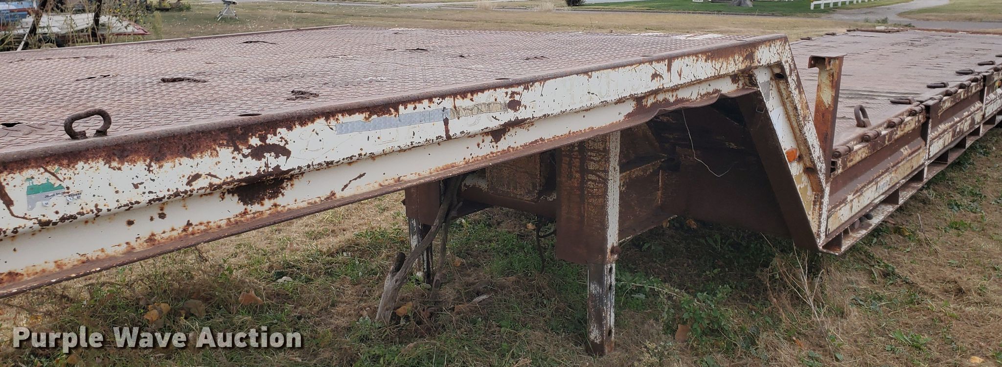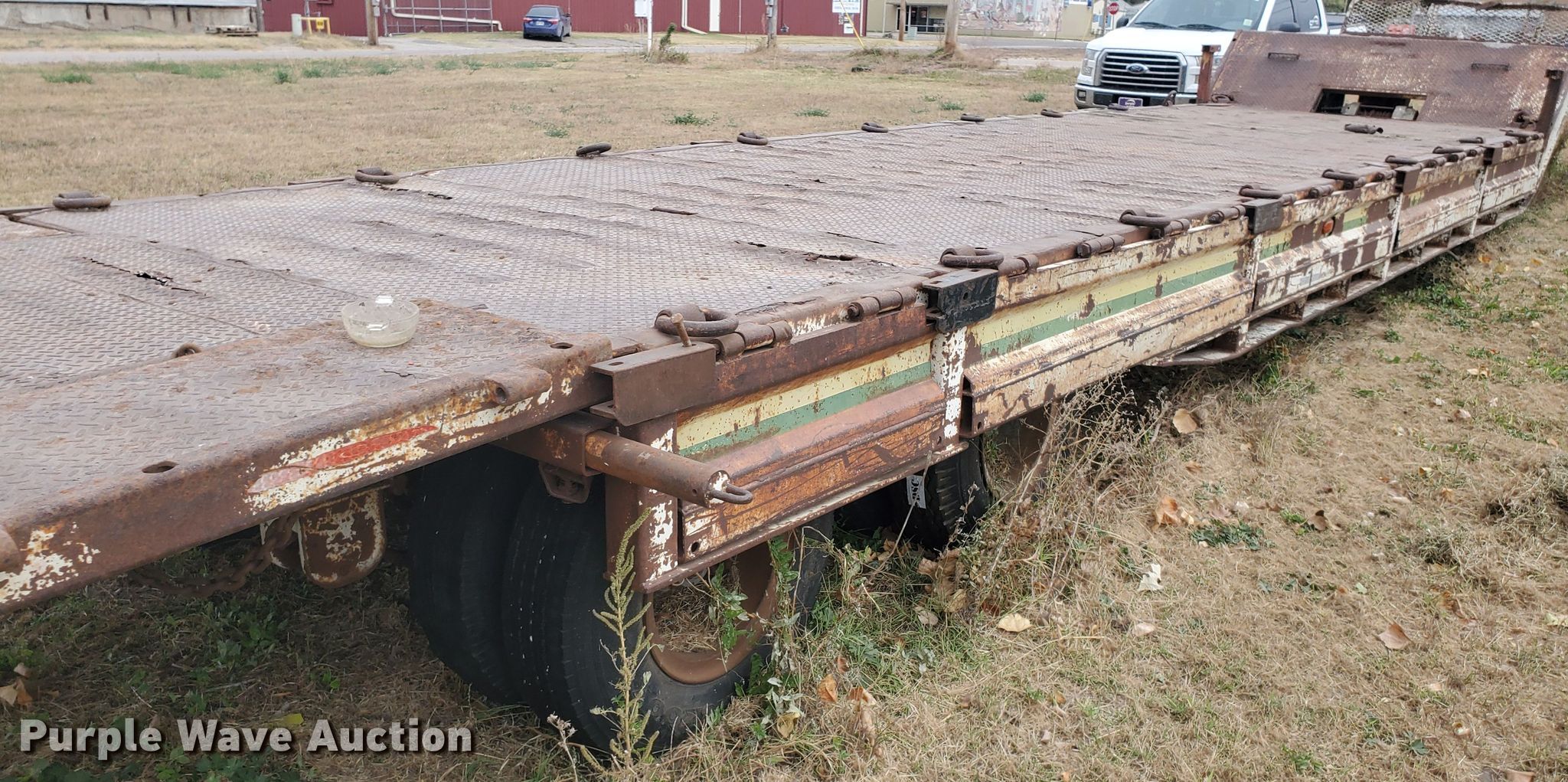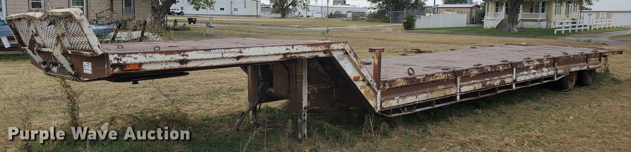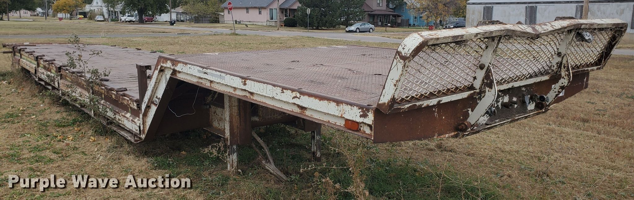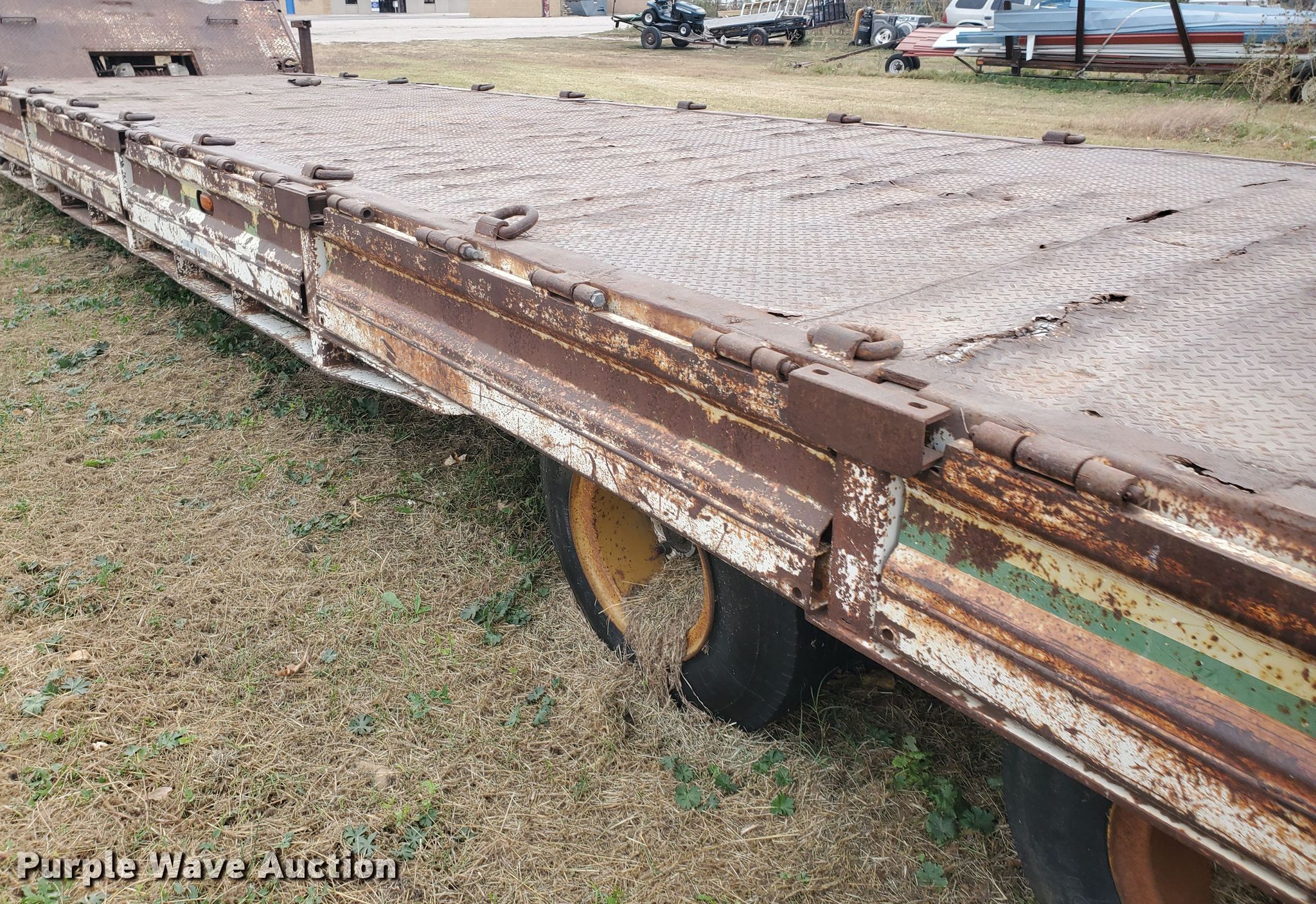 Purple Wave is selling a used Equip. Trailer in Kansas. This item is a 1980 Landoll Hauloll 316-45 tilt deck equipment trailer with the following: 45'L x 96"W overall, 9'L top deck, 34'L steel main deck, 34" floor height, Winch, Manual hydraulic controls, Dual leg landing gear, Spring suspension, Air brakes, Sliding tandem axle, Steel wheels, 8.25-20 tires, GVWR 50,000 lbs