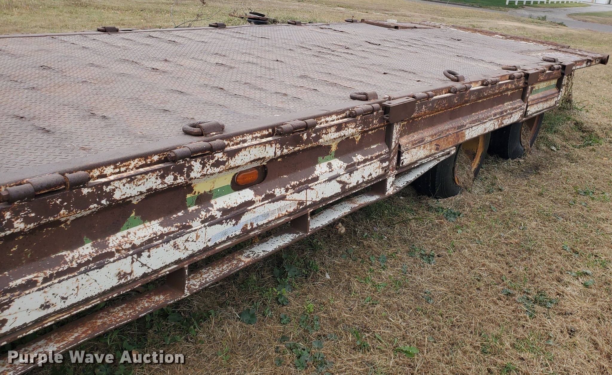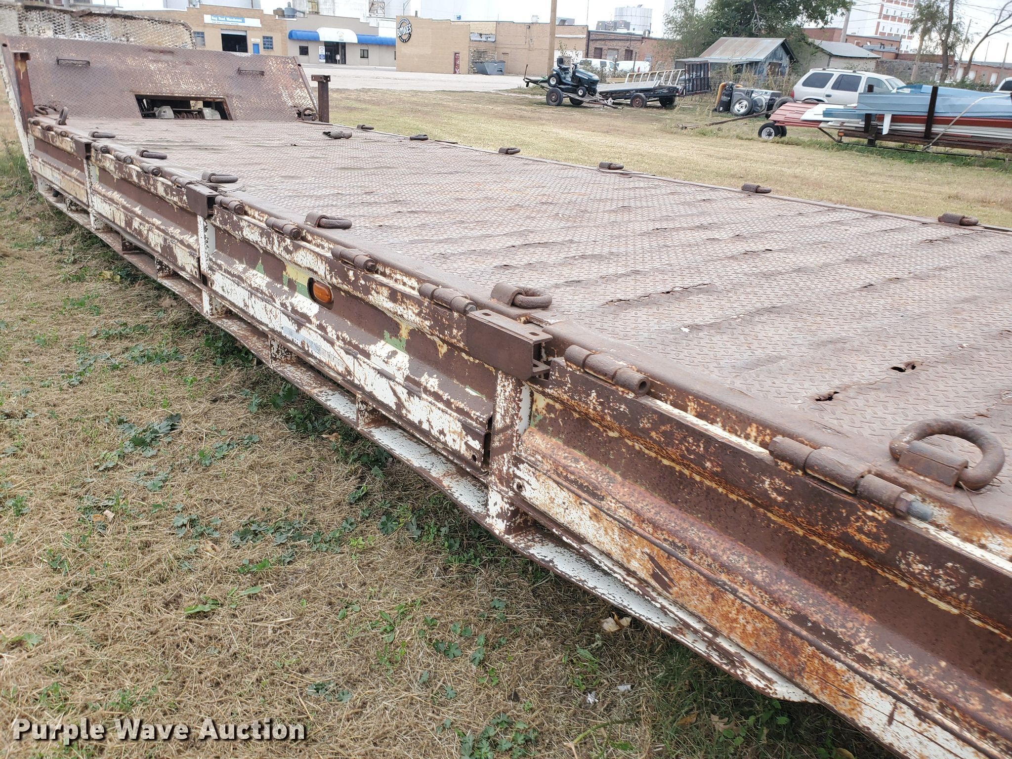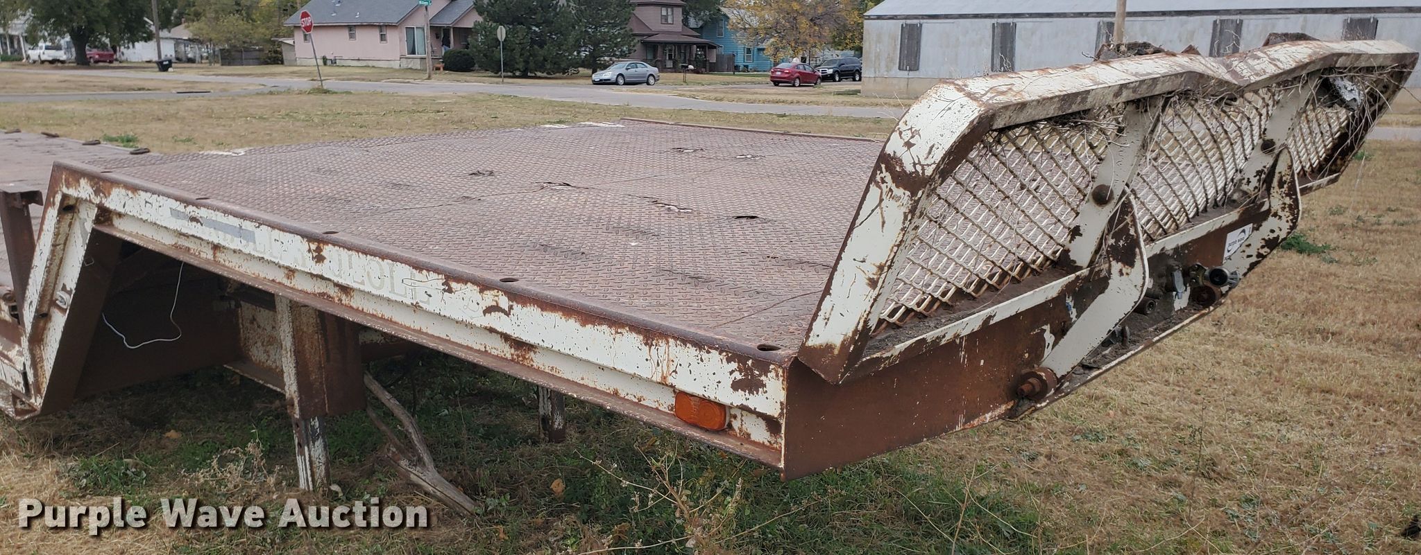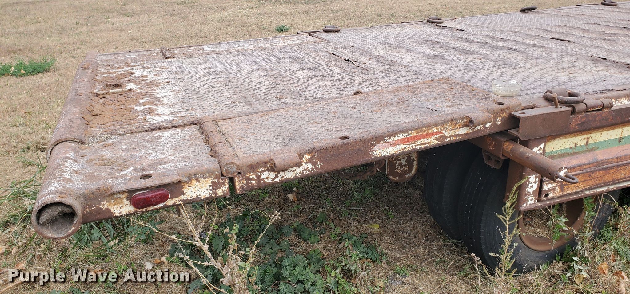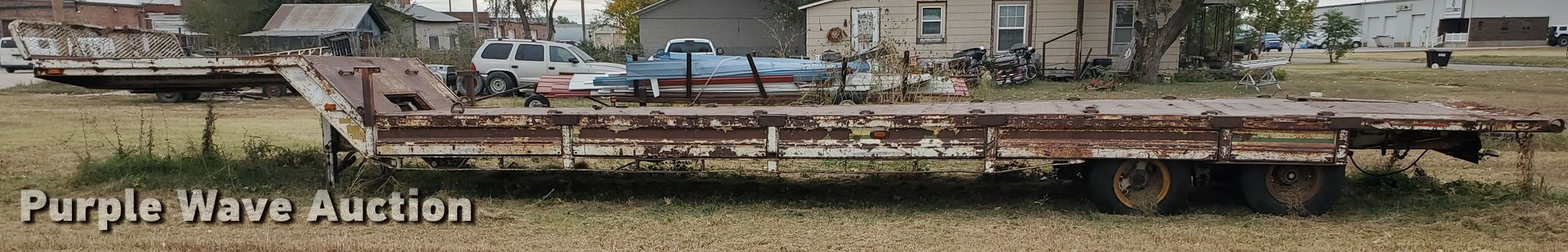 Purple Wave is selling a used Equip. Trailer in Kansas. This item is a 1980 Landoll Hauloll 316-45 tilt deck equipment trailer with the following: 45'L x 96"W overall, 9'L top deck, 34'L steel main deck, 34" floor height, Winch, Manual hydraulic controls, Dual leg landing gear, Spring suspension, Air brakes, Sliding tandem axle, Steel wheels, 8.25-20 tires, GVWR 50,000 lbs