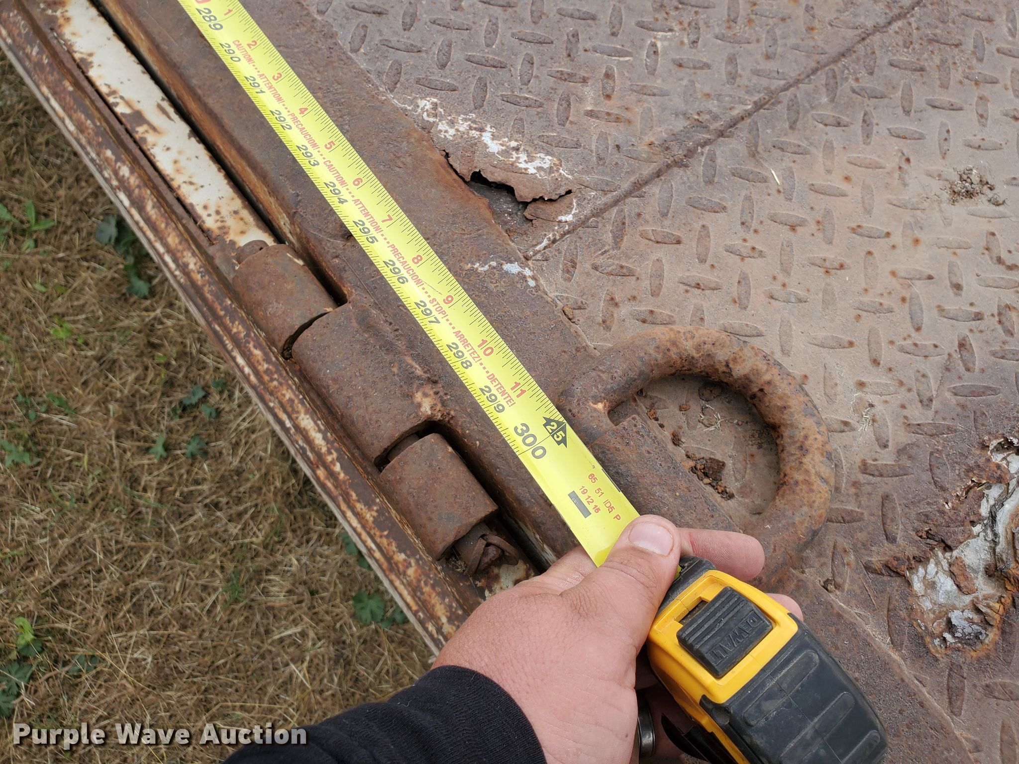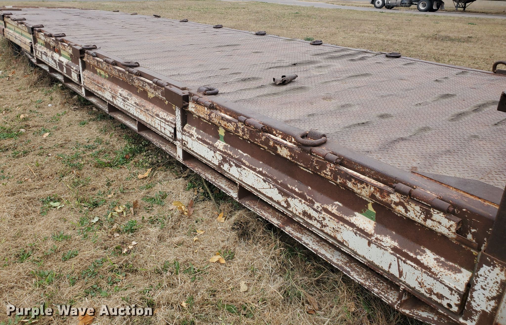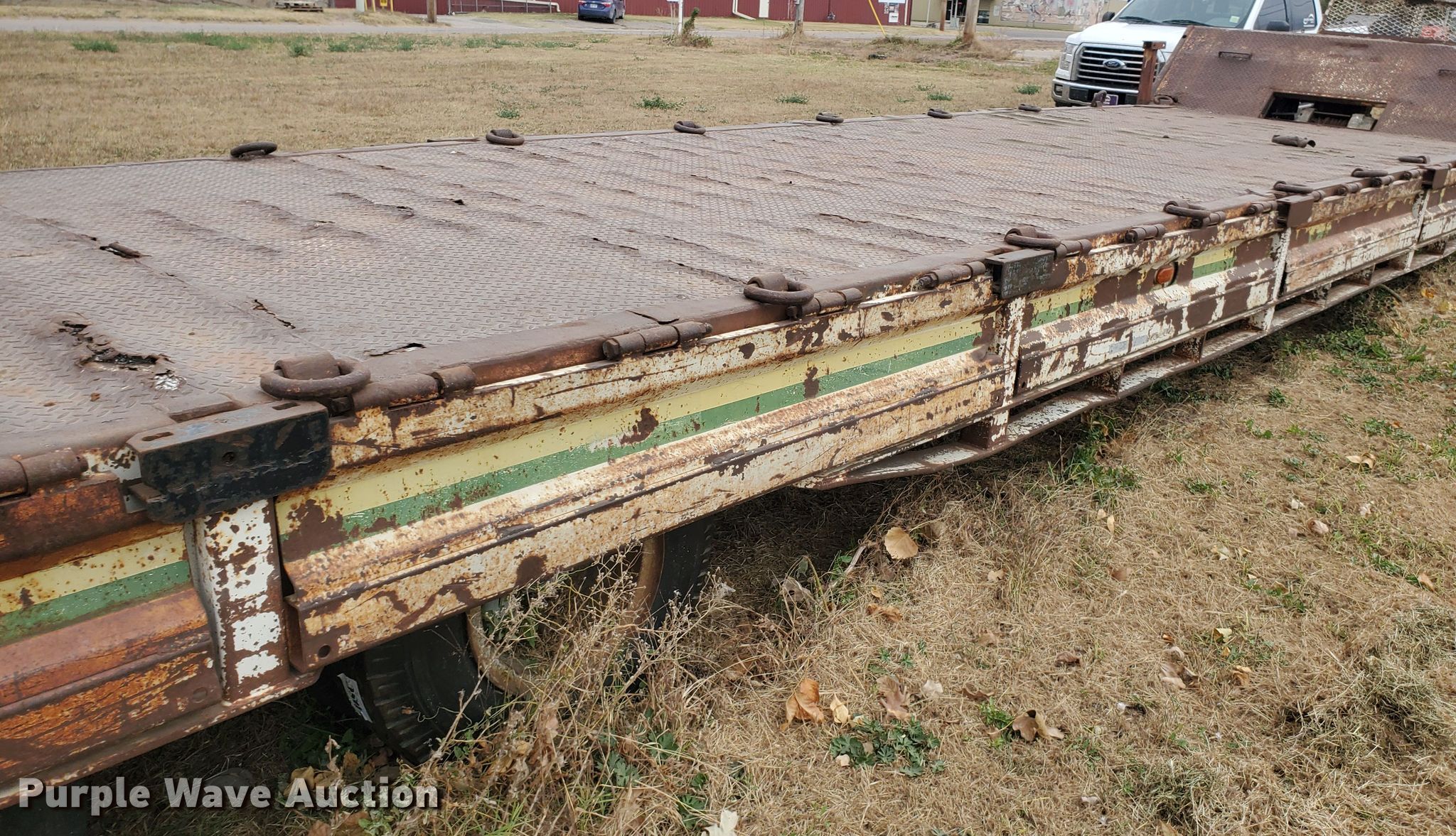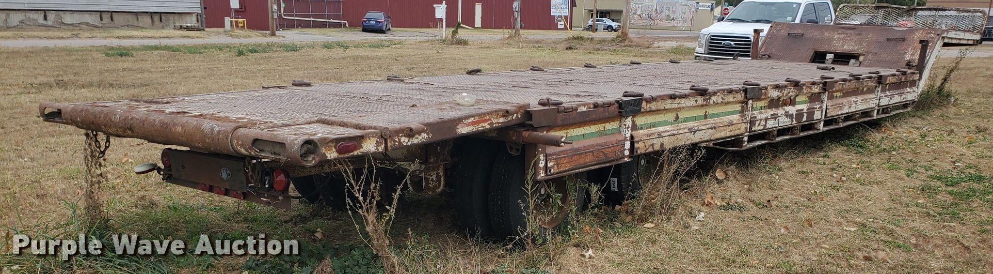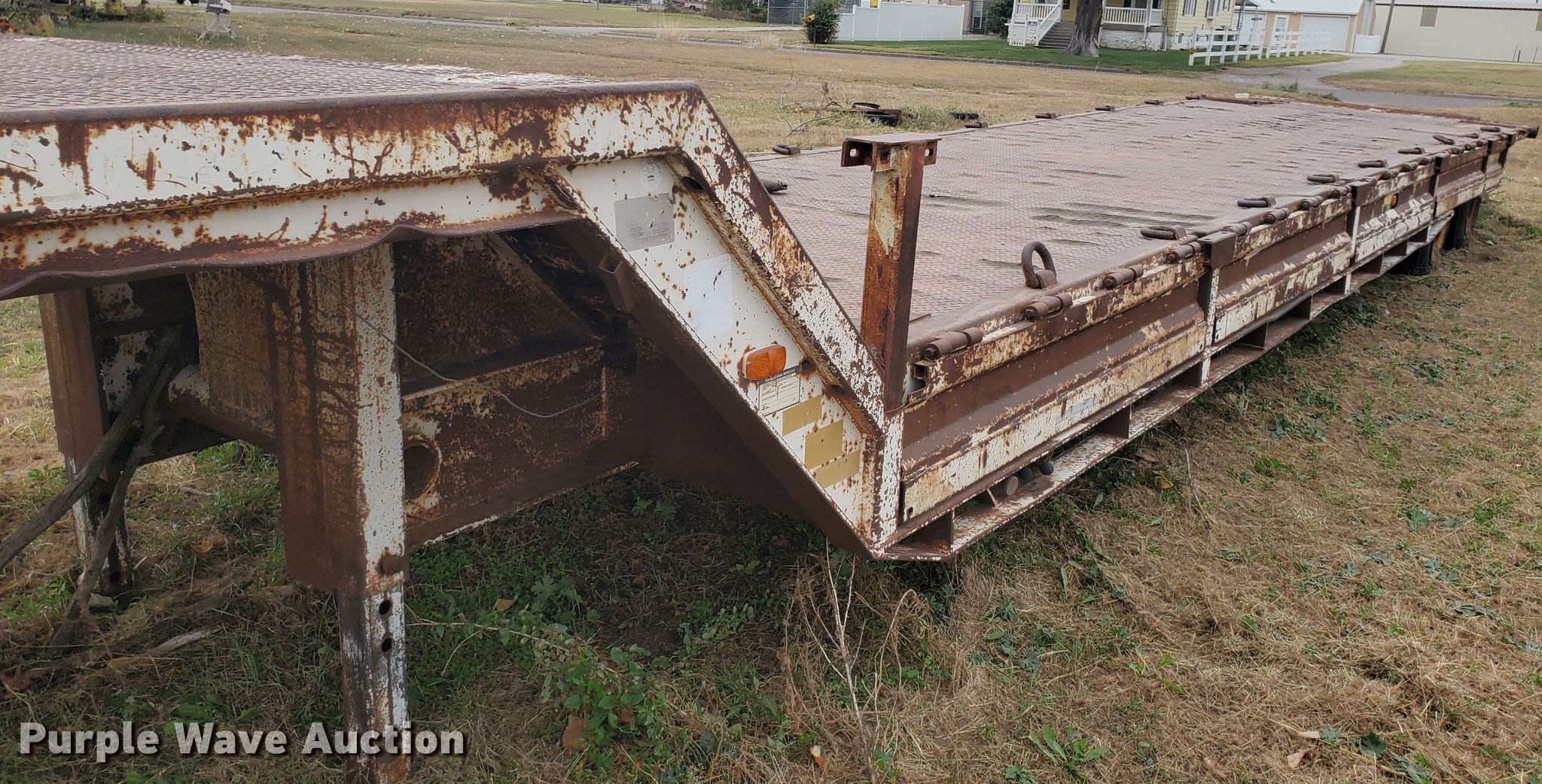 Purple Wave is selling a used Equip. Trailer in Kansas. This item is a 1980 Landoll Hauloll 316-45 tilt deck equipment trailer with the following: 45'L x 96"W overall, 9'L top deck, 34'L steel main deck, 34" floor height, Winch, Manual hydraulic controls, Dual leg landing gear, Spring suspension, Air brakes, Sliding tandem axle, Steel wheels, 8.25-20 tires, GVWR 50,000 lbs