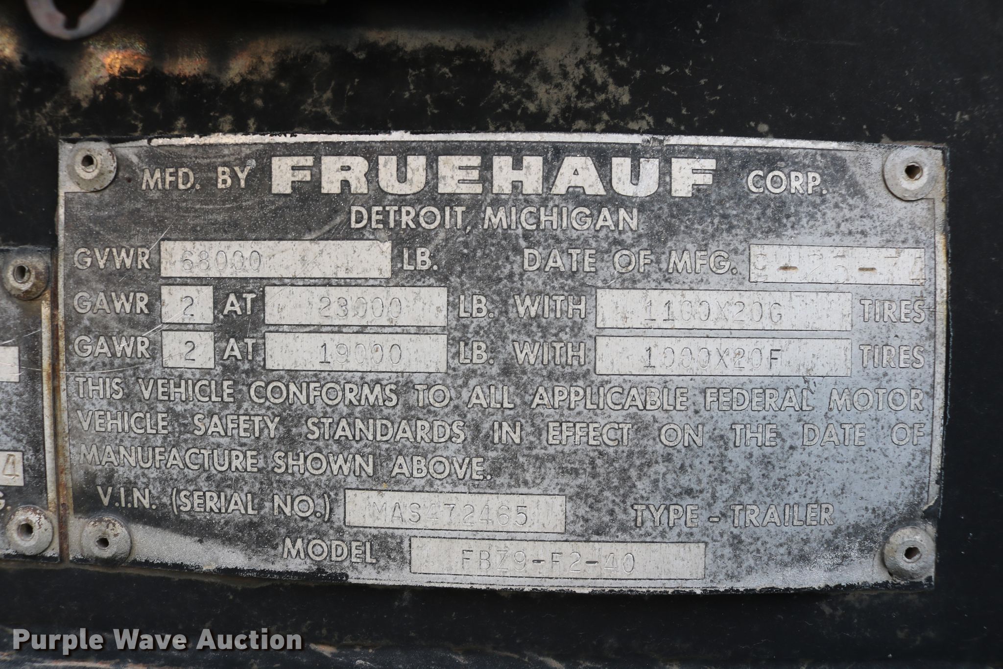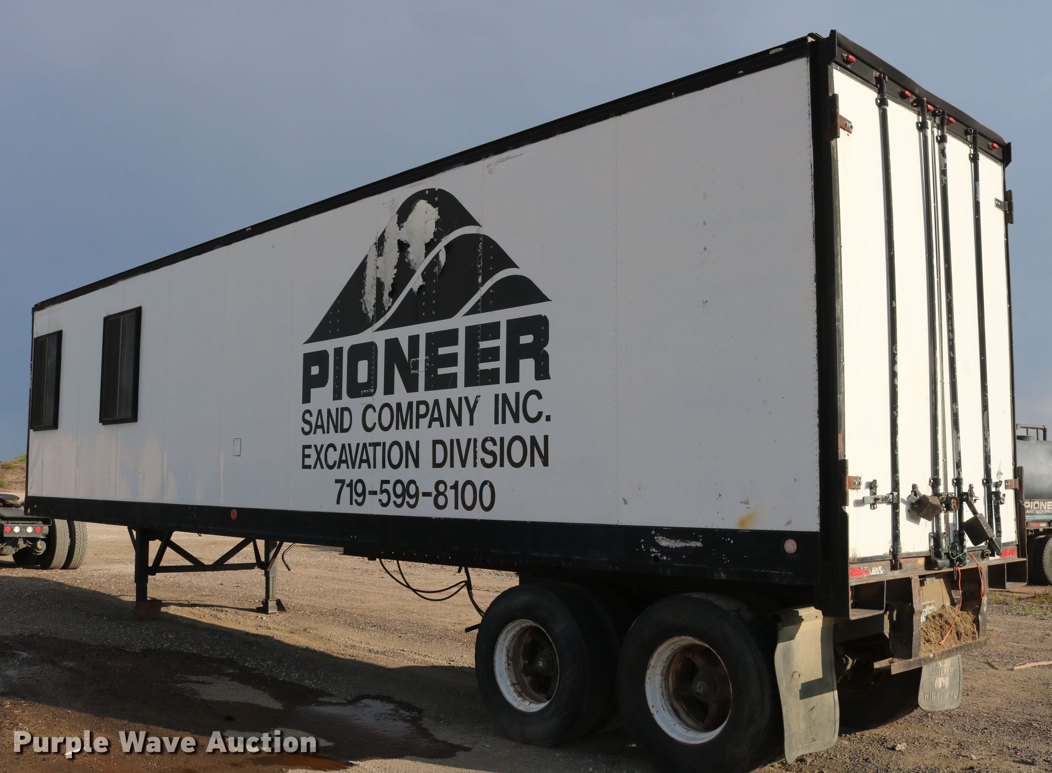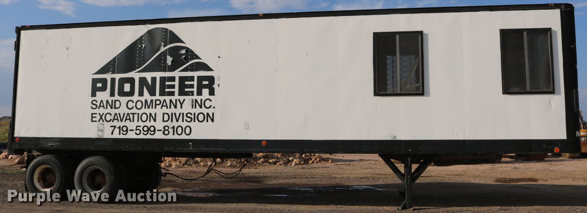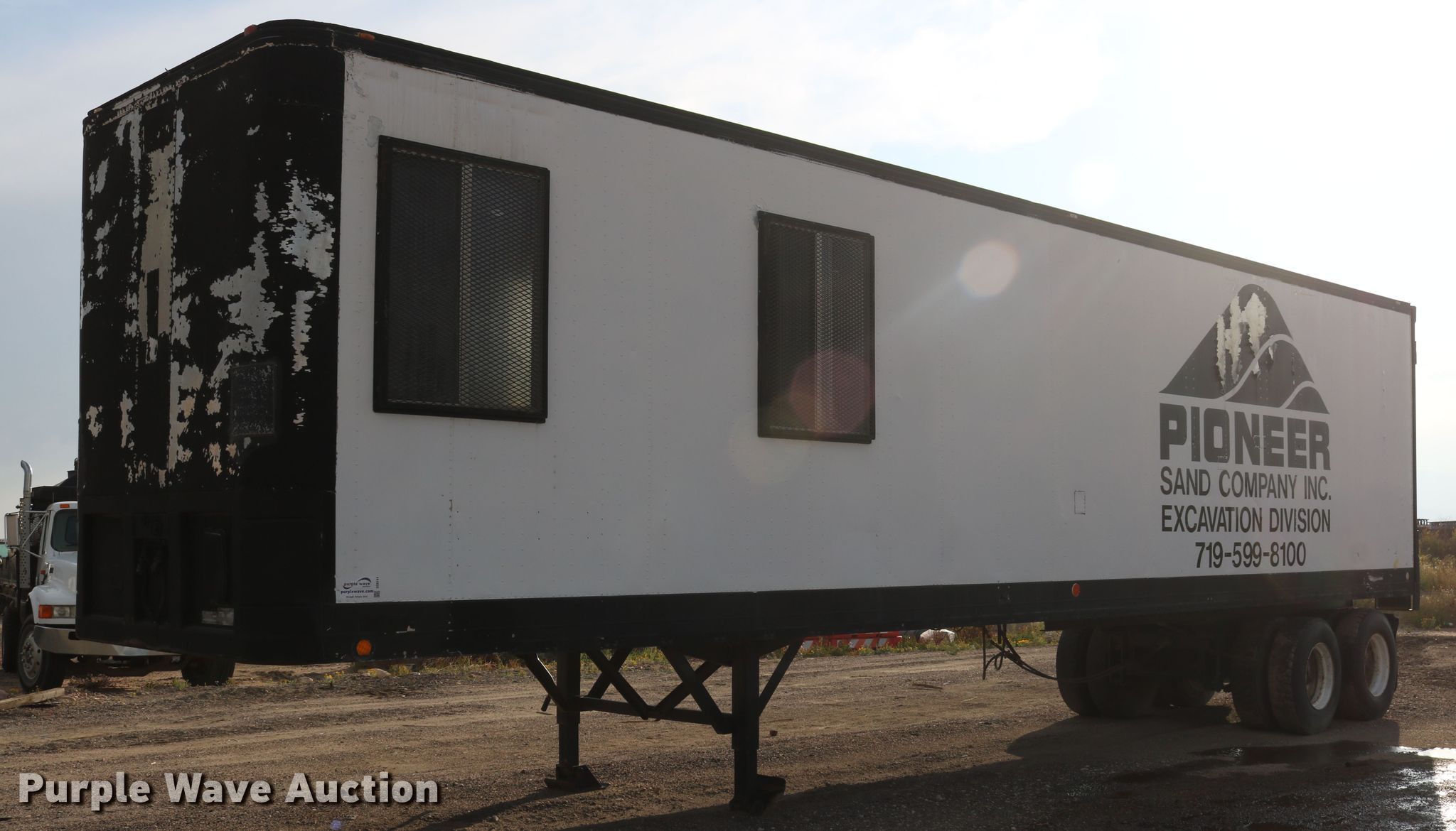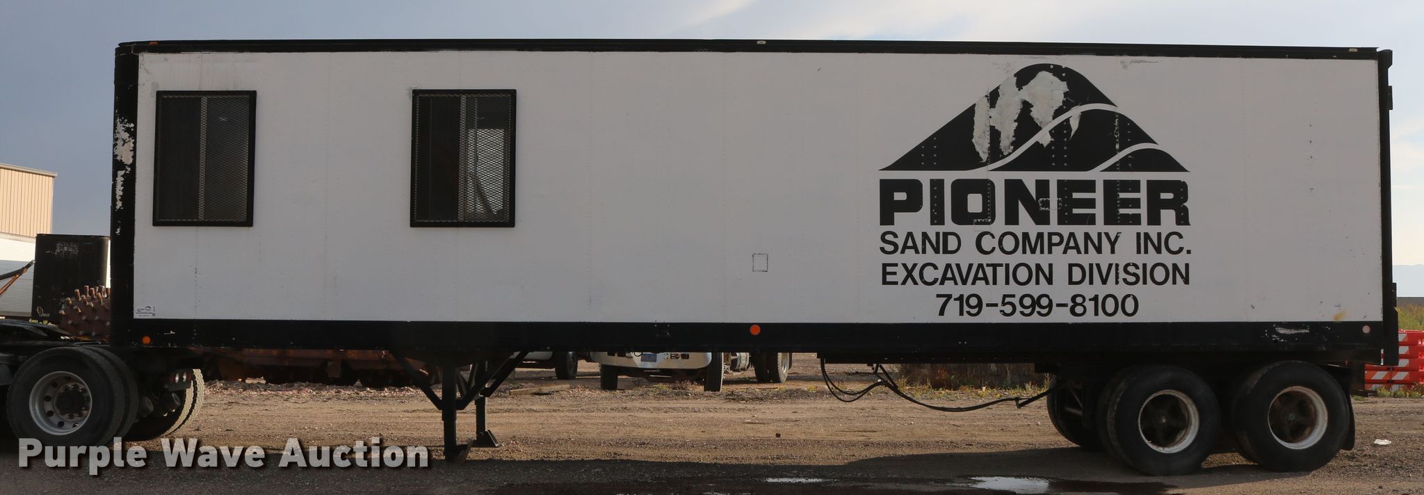 Purple Wave is selling a used Manufactured Home or Office in Colorado. This item is a 1974 Fruehauf FBZ9-F2-40 office trailer with the following: 40'L x 96"W, Wood deck, Interior shelving, 110V wiring, Dual leg landing gear, Spring suspension, Air brakes, Tandem axle, Steel wheels, 11R22.5 tires, GVWR 68,000 lbs