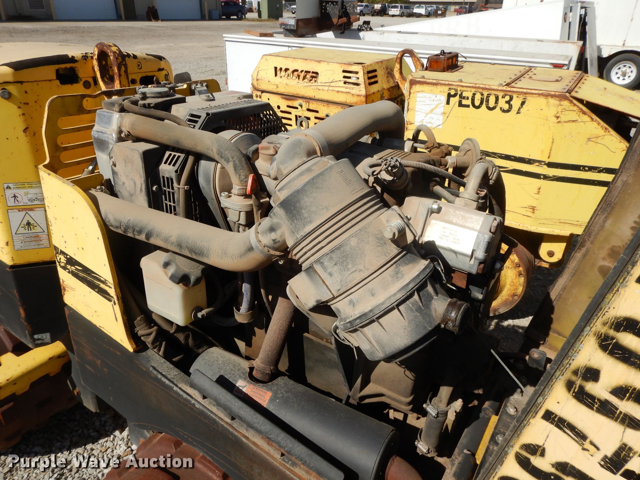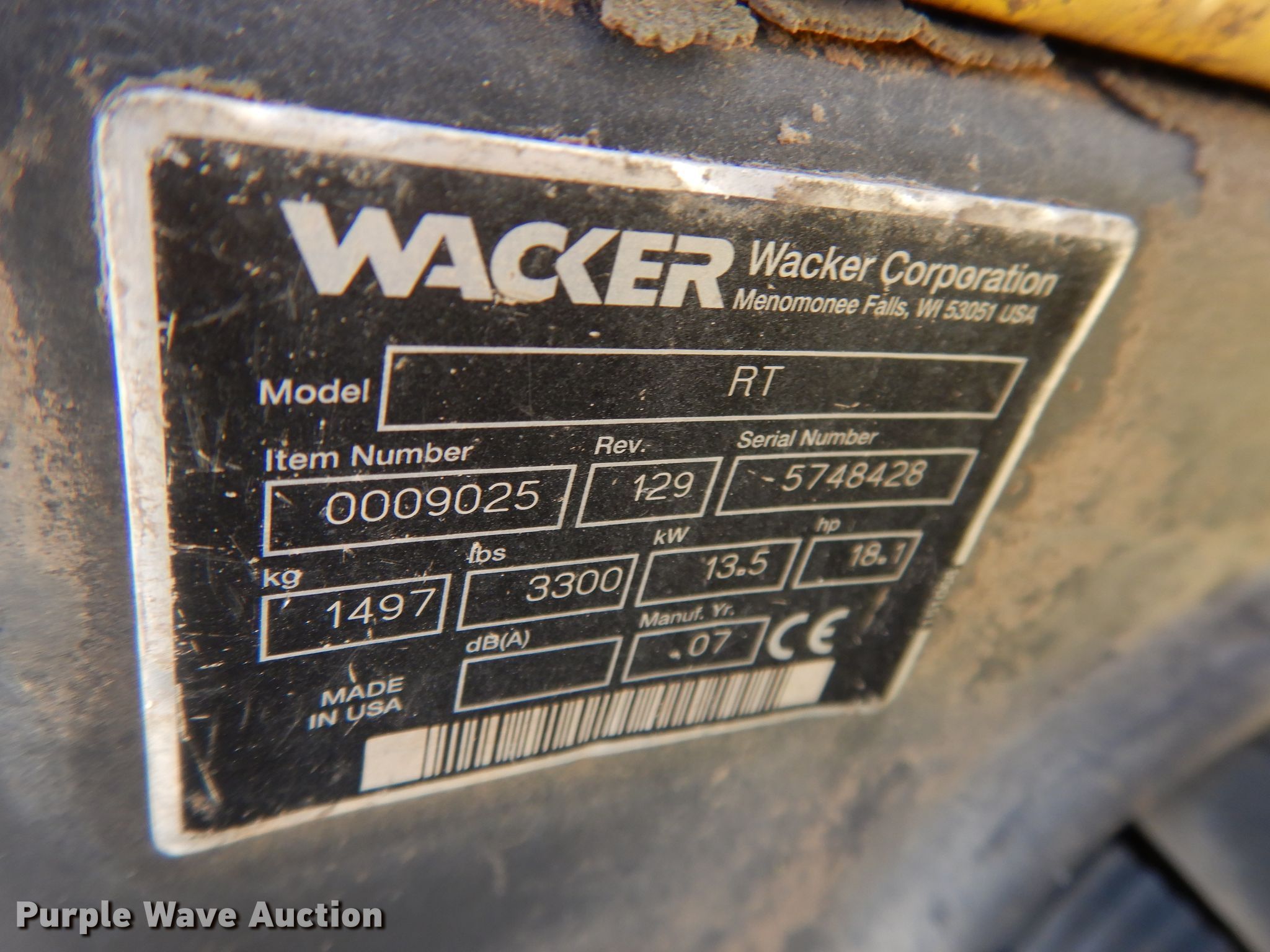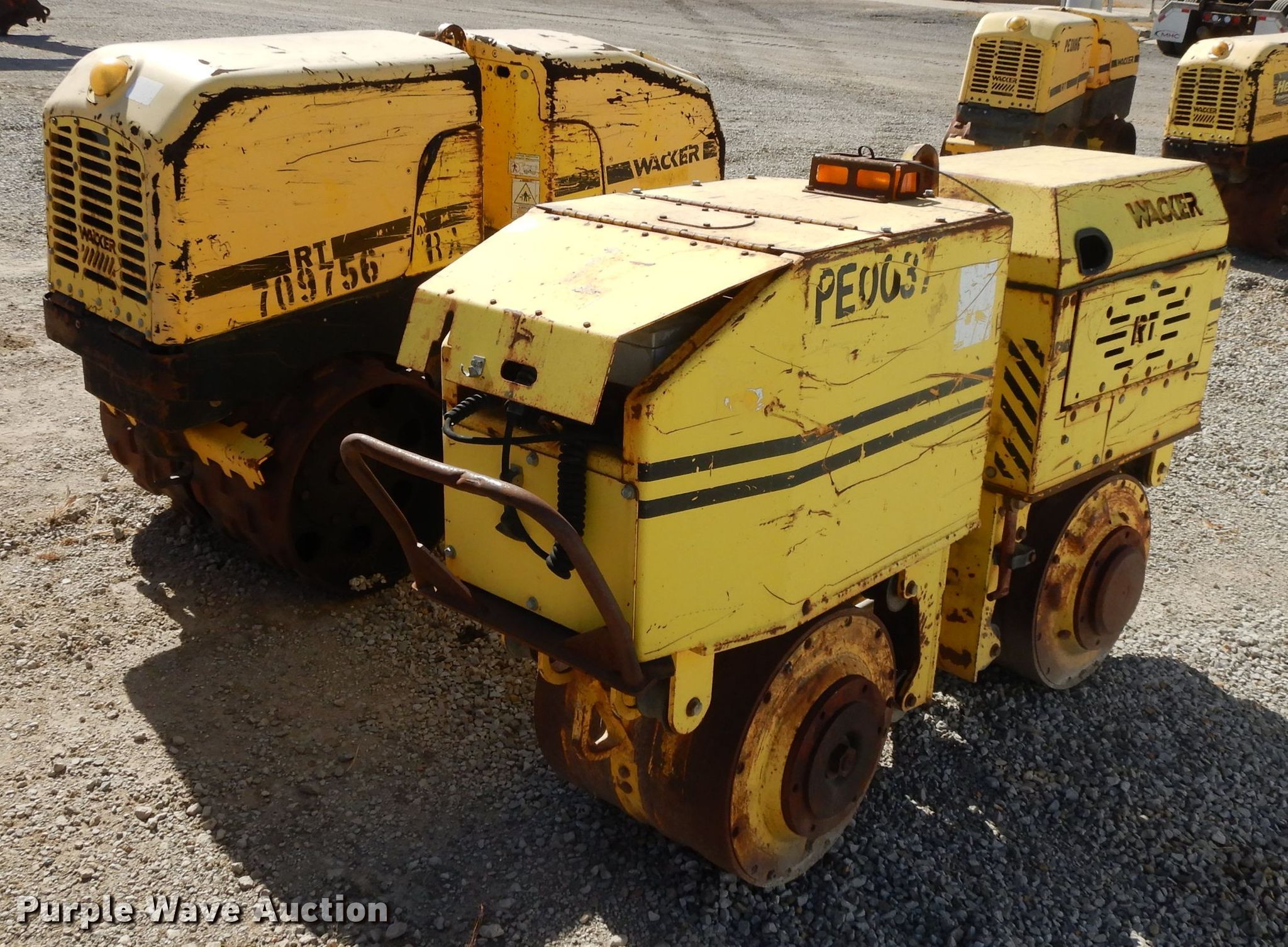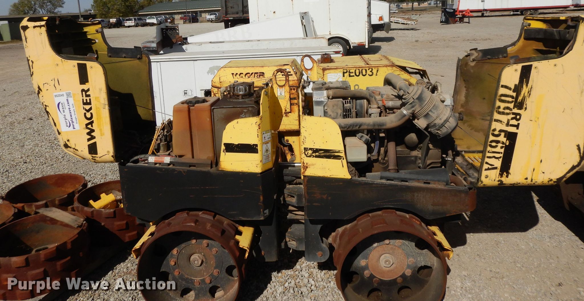 Purple Wave is selling a used Walk Behind Compactor in Kansas. This item is a (2) Wacker trench compactors with the following: 2007 model RT, Three cylinder gas engine, 18.1 HP, Double drum, 32"W drums, Front and rear scrapers, Tethered remote, Serial 5748428, Model RT, Two cylinder diesel engine, Double drum, Tethered remote, Non-operational units
