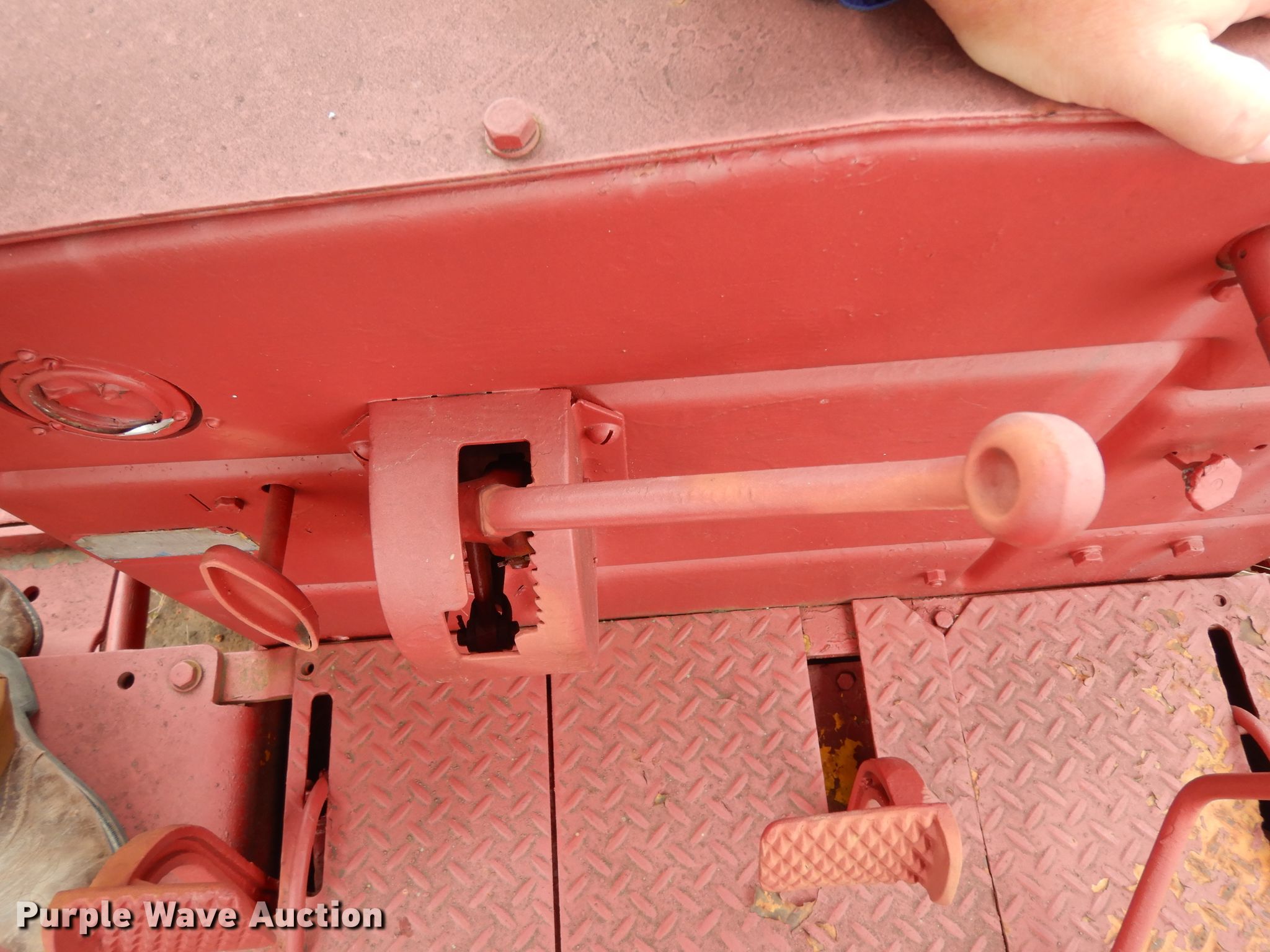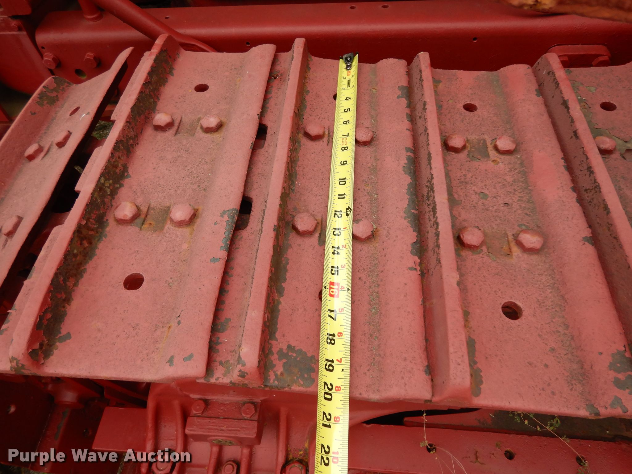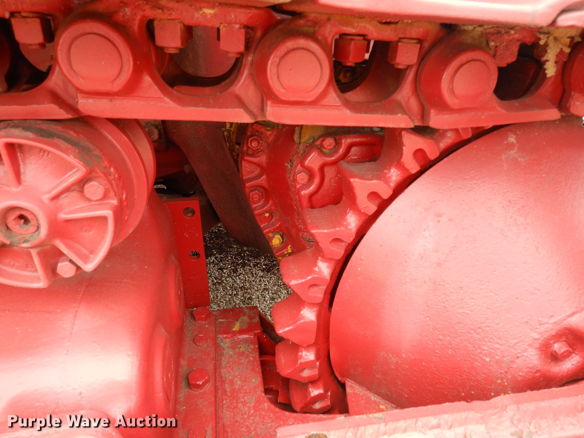 International TD18 dozer. Serial: 35779. Engine International Harvester D691, Displacement: 691 C.I.D., Cylinders: 6, Fuel type: Diesel. Transmission Dual range sliding gear, 6F - 2R. Operators station OROPS, Steering: Clutch brake. Operational Rear drawbar, Dozer blade: Straight 10' W. Tracks Width: 20", Grouser pads: Single, Bottom rollers: 6 Track guards. Notes Non-operational unit. 475 Shahan Prairie Rd. Oak Point, TX 75068