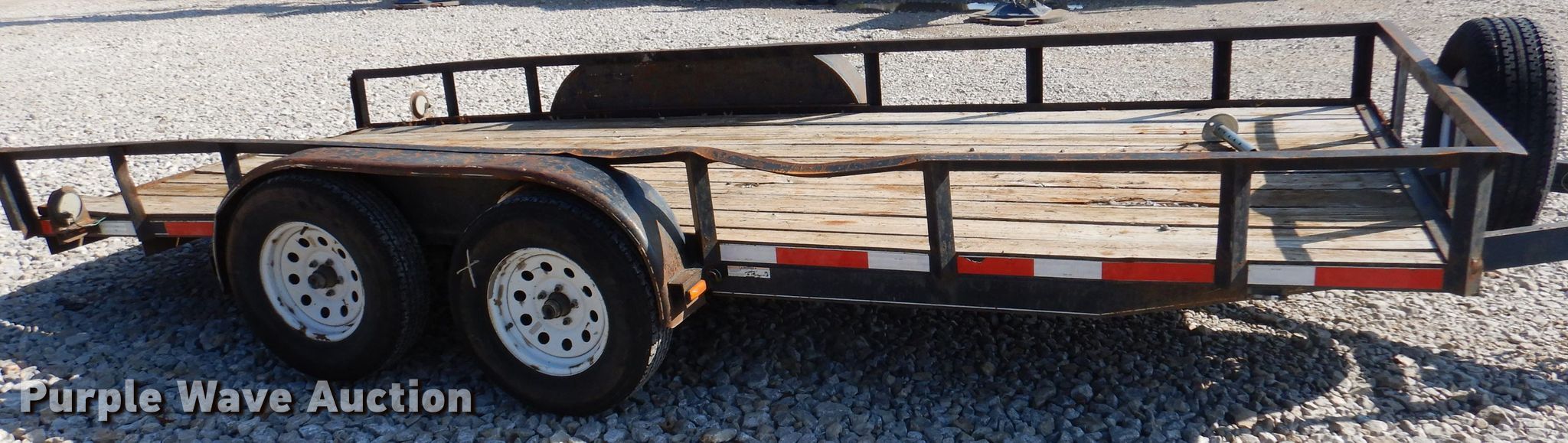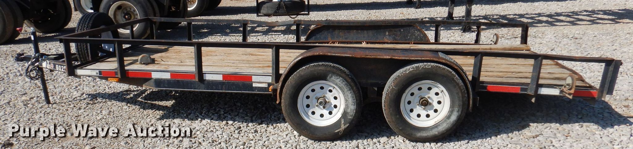 Purple Wave is selling a used Car or Utility Trailer in Arkansas. This item is a 2011 Carry-On utility trailer with the following: 16'L x 76"W wood deck, 2" ball hitch, Single leg landing gear, Spring suspension, Electric brakes, Tandem axle, ST225/75R15 tires, Unit has been wrecked, Unknown operating condition, Unit# 602527