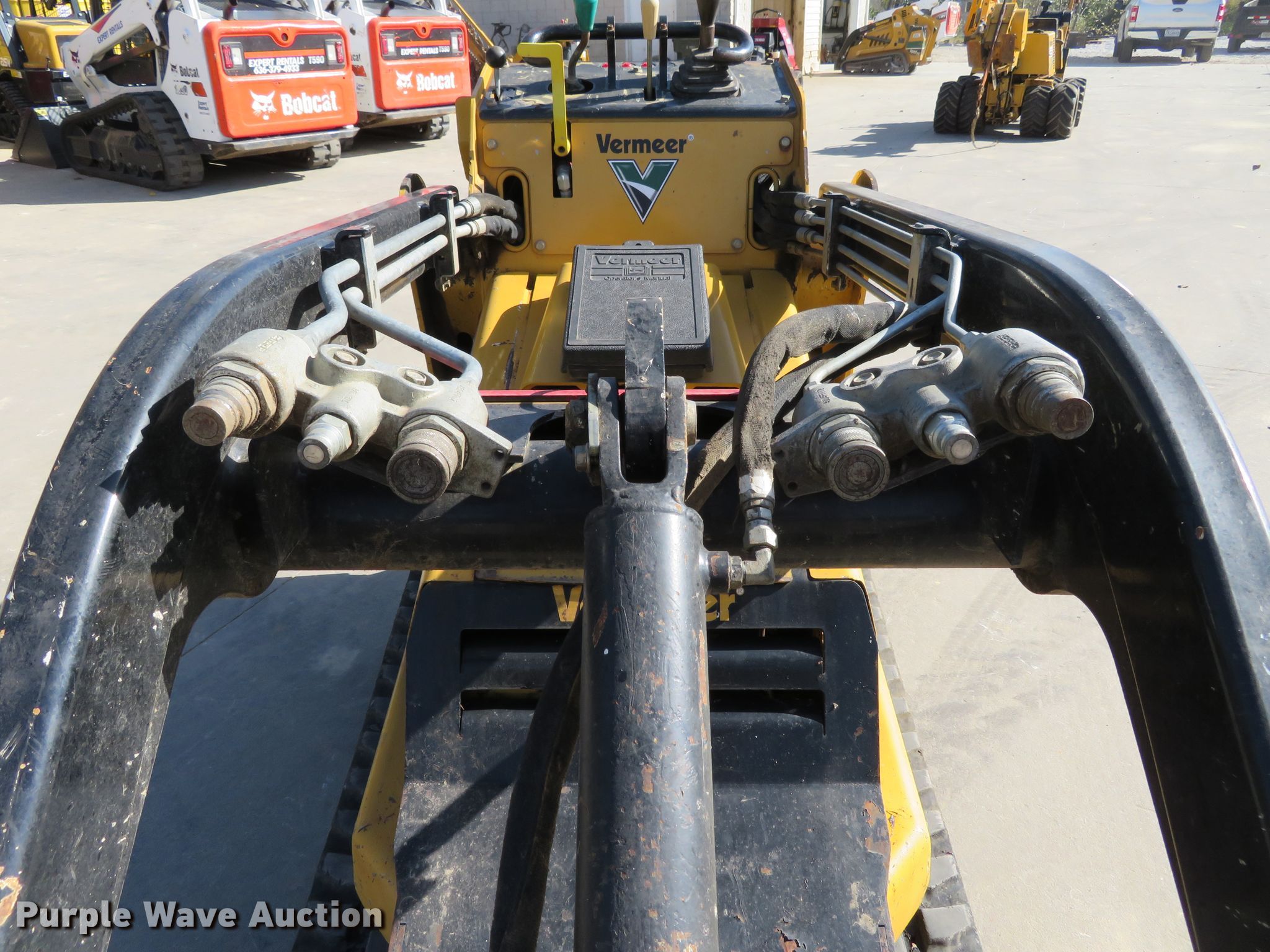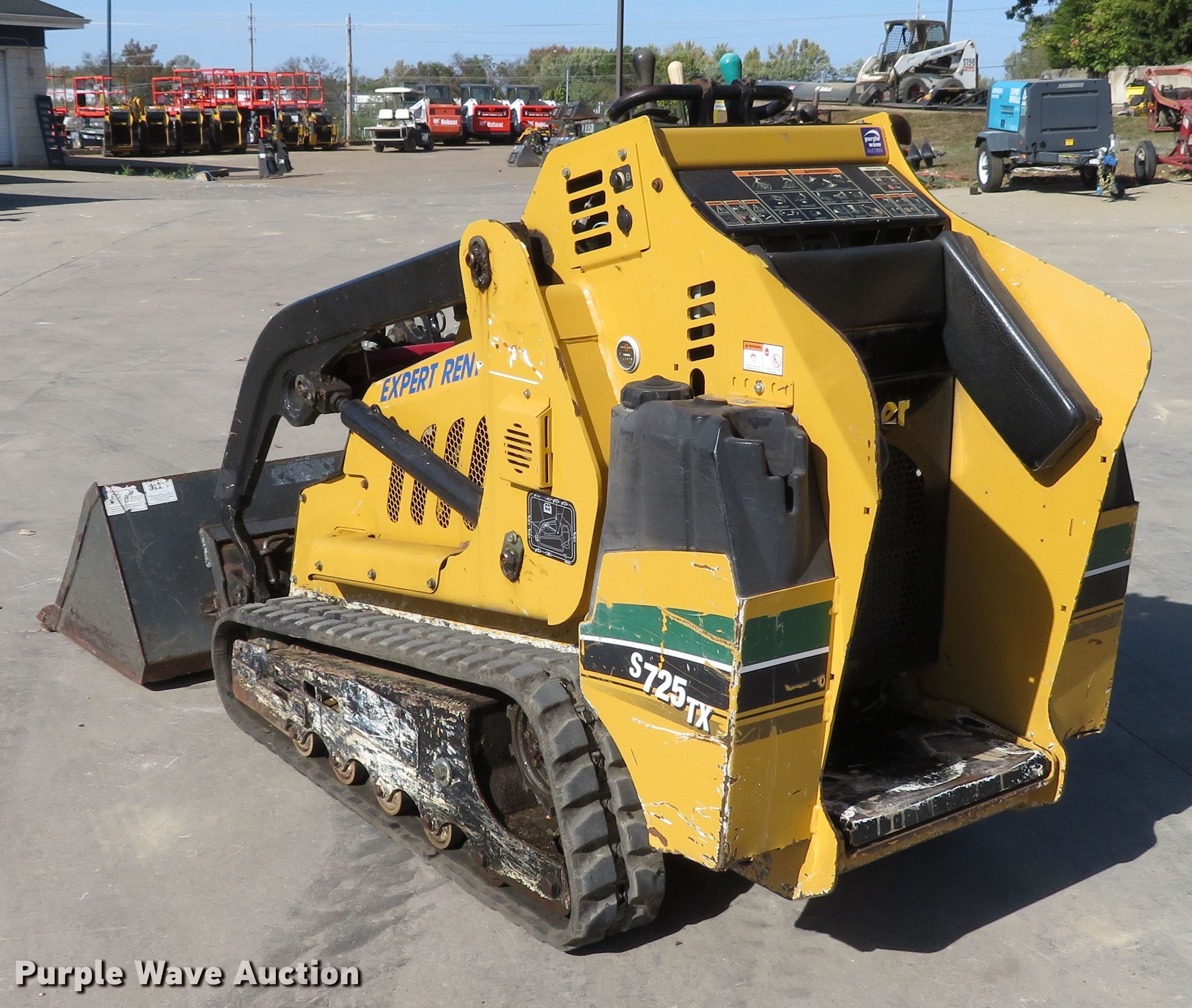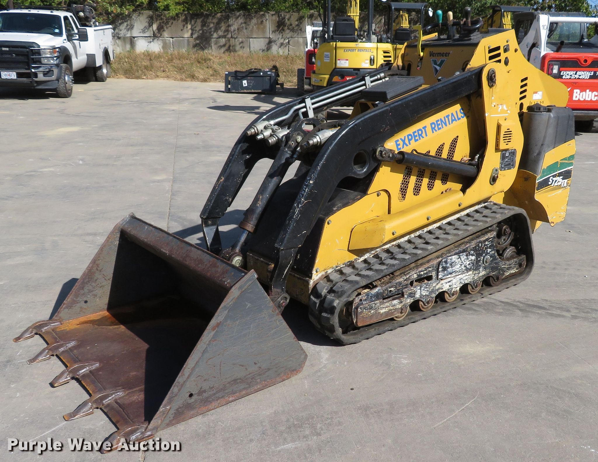 2016 Vermeer S725TX compact utility loader. 1,197 hours on meter, Serial: 1VRD070Y7G1000873. Engine Kubota V1505-EF01, Displacement: 1.5L, Cylinders: 4, Fuel type: Diesel, HP: 25. Transmission Hydrostatic. Operators station Bucket control: Hand. Operational Auxiliary hydraulics, Quick coupler: Manual, Bucket Width: 43", Teeth: Pin on. Tracks Width: 7". Expert Rentals. 8126 Veterans Memorial Pkwy. St. Peters, MO 63376