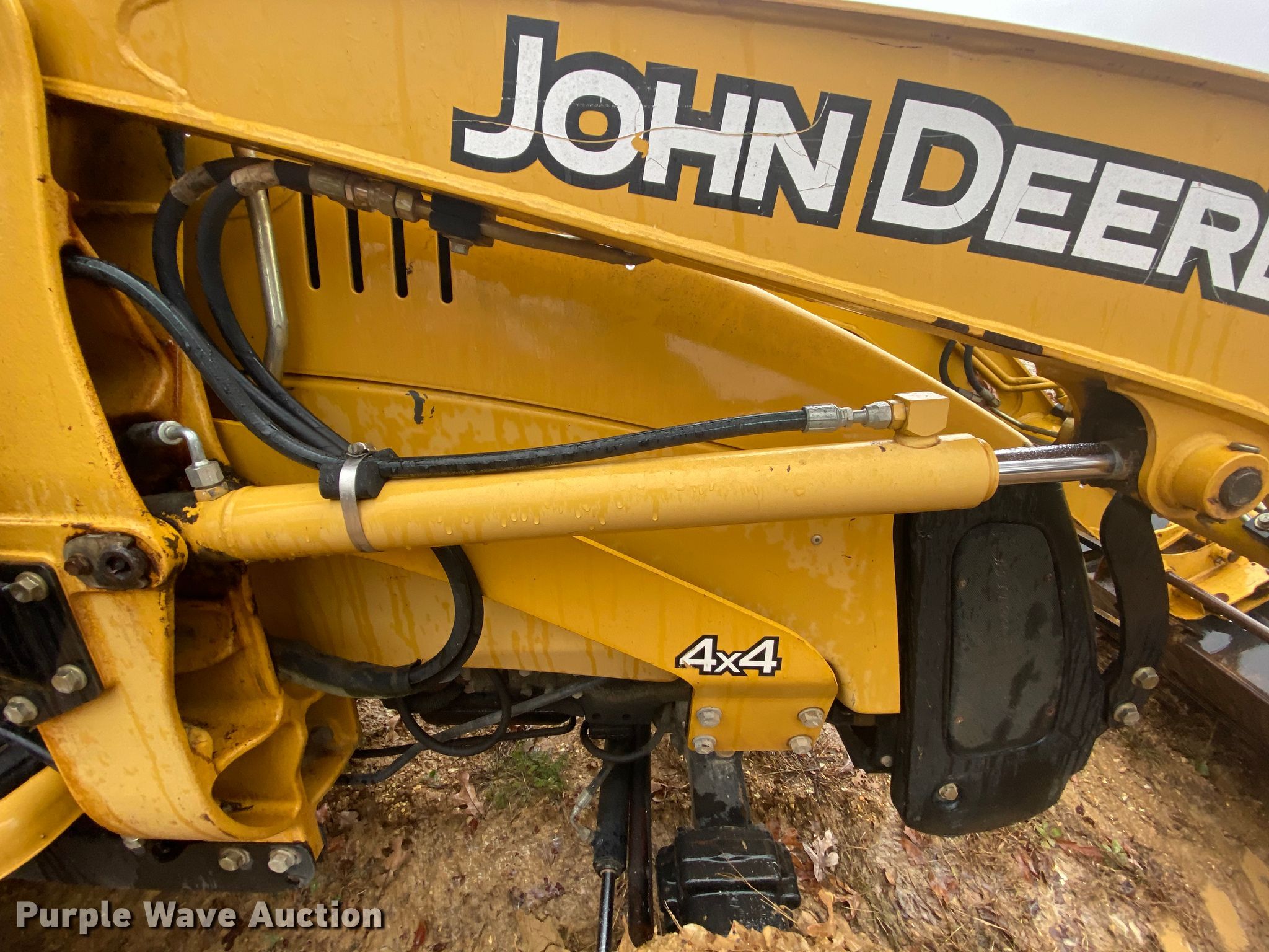 John Deere 110 backhoe. 3,012 hours on meter. Engine John Deere TNV88, Cylinders: 4, Fuel type: Diesel. Transmission Hydrostaic, 3F - 3R. Chassis Four wheel drive. Operators station OROPS, Backhoe controls: Wobble stick / two stick. Operational Loader Quick coupler: Manual, Bucket John Deere KV22712, Width: 72", Cutting edge: Bolt-on, Backhoe Quick coupler: Manual, Auxiliary hydraulics, Serial: T00110A106194, Backhoe bucket Width: 17", Cutting edge: Bolt-on Teeth: 4.. Tires Front: 10-16.5, Rear: 17.5L-24. Notes Non-operational four wheel drive. 15550 Maries Rd 340. Vienna, MO 65582