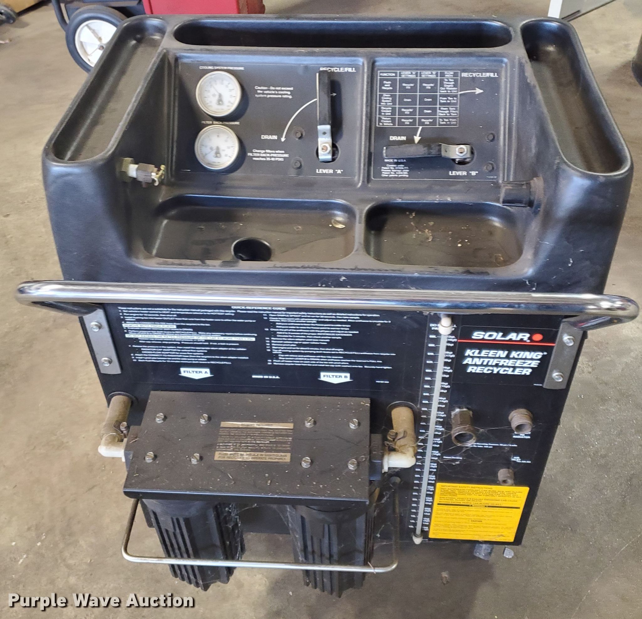 Purple Wave is selling a used Tools in Kansas. This item is a Solar 143-012-007 Kleen King anti-freeze recycler with the following: Serial D766260