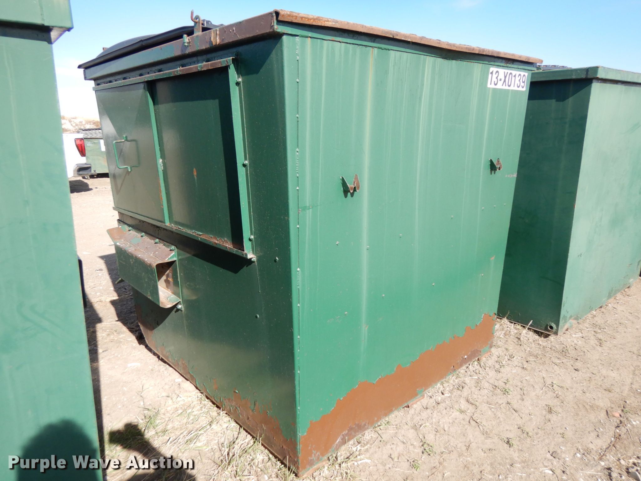 Purple Wave is selling a used Refuse or Compaction Equip. in Nebraska. This item is a (4) dumpsters with the following: Approx. 6'W x 6'D x 6'H, Eight yd. capacities, EIN 13-37774, 13-X0139, 13-37775, 13-X0099, Unit# 3