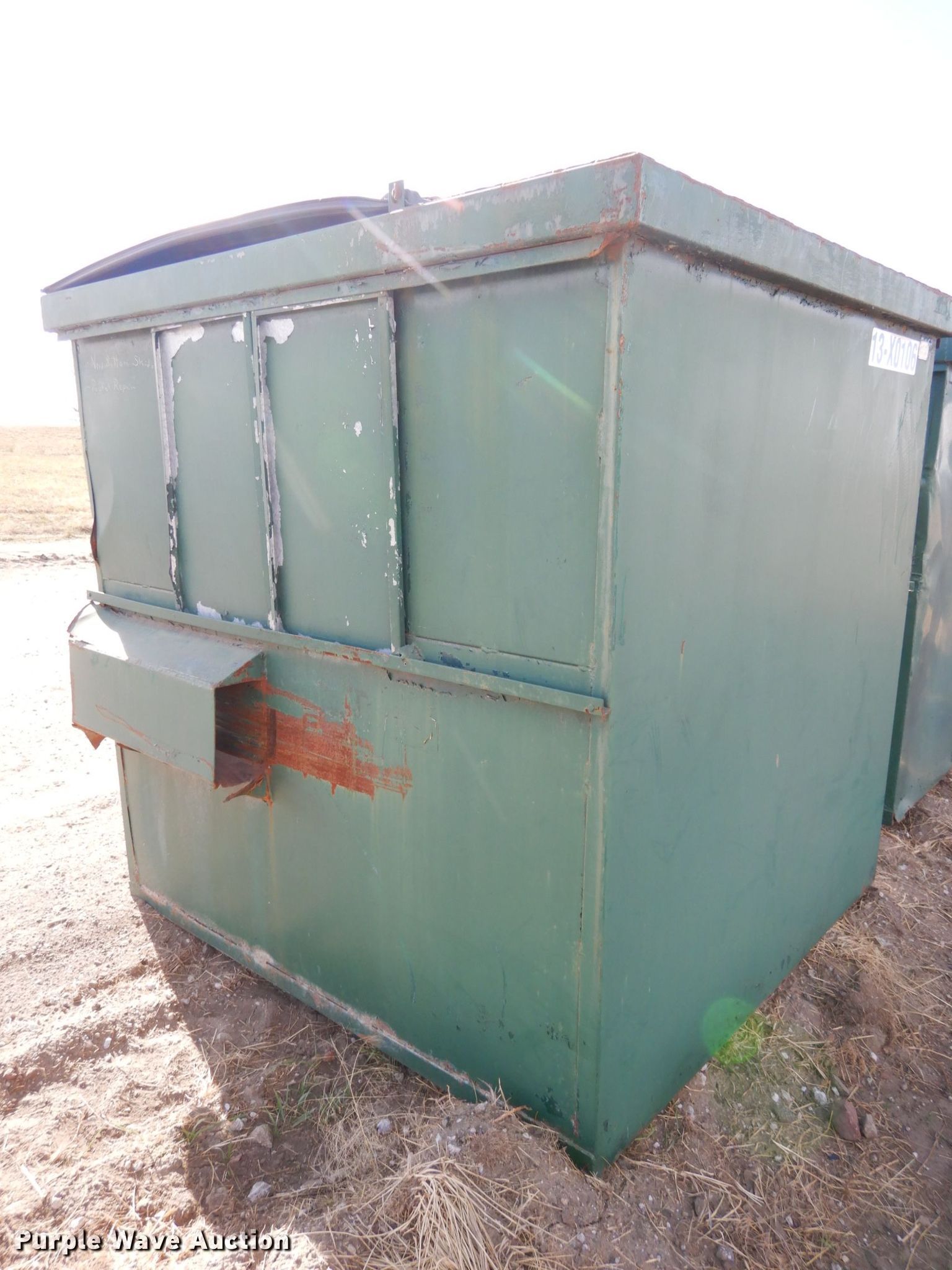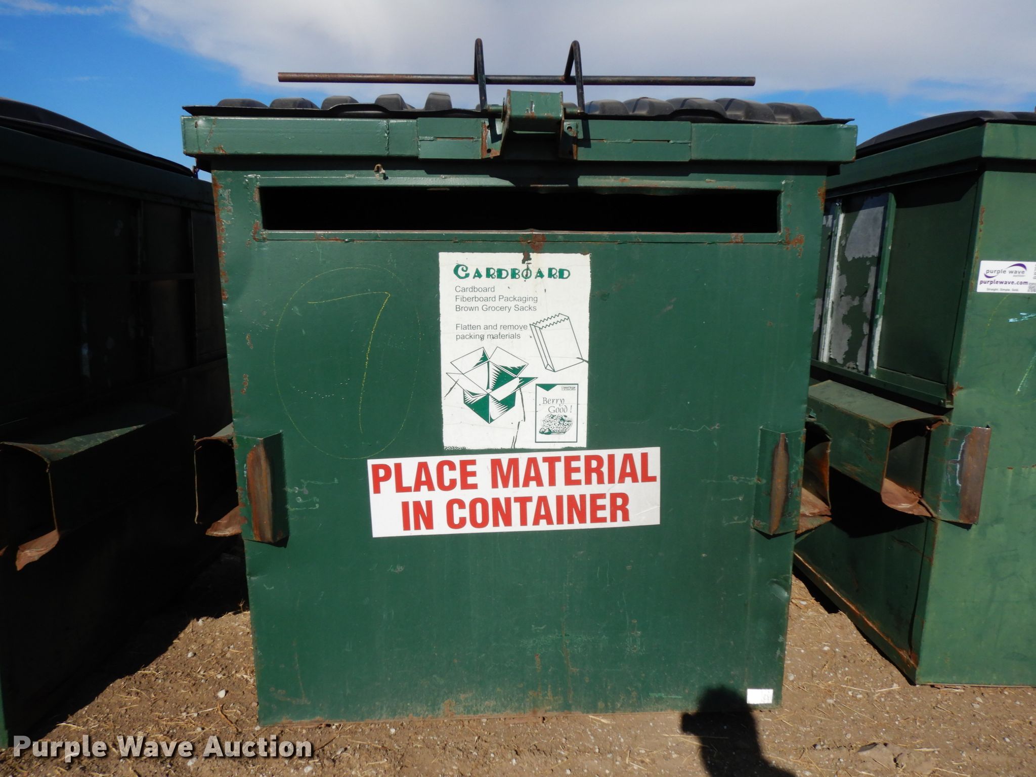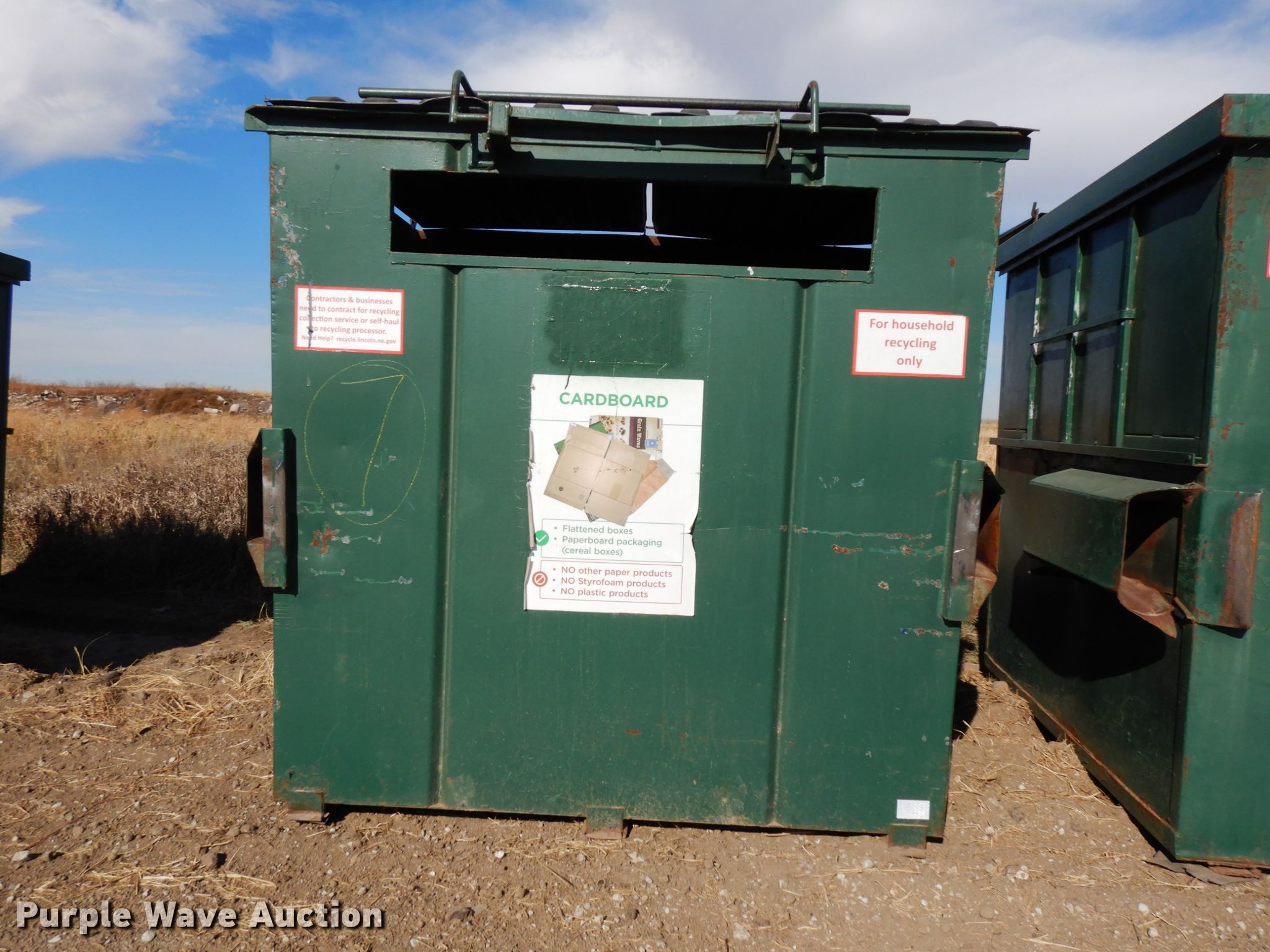 Purple Wave is selling a used Refuse or Compaction Equip. in Nebraska. This item is a (4) dumpsters with the following: Approx. 69"W x 73"D x 75"H, Eight yd. capacities, EIN 13-X0106, 13-X0043, 13-X0041, 13-X0089, Unit# 7