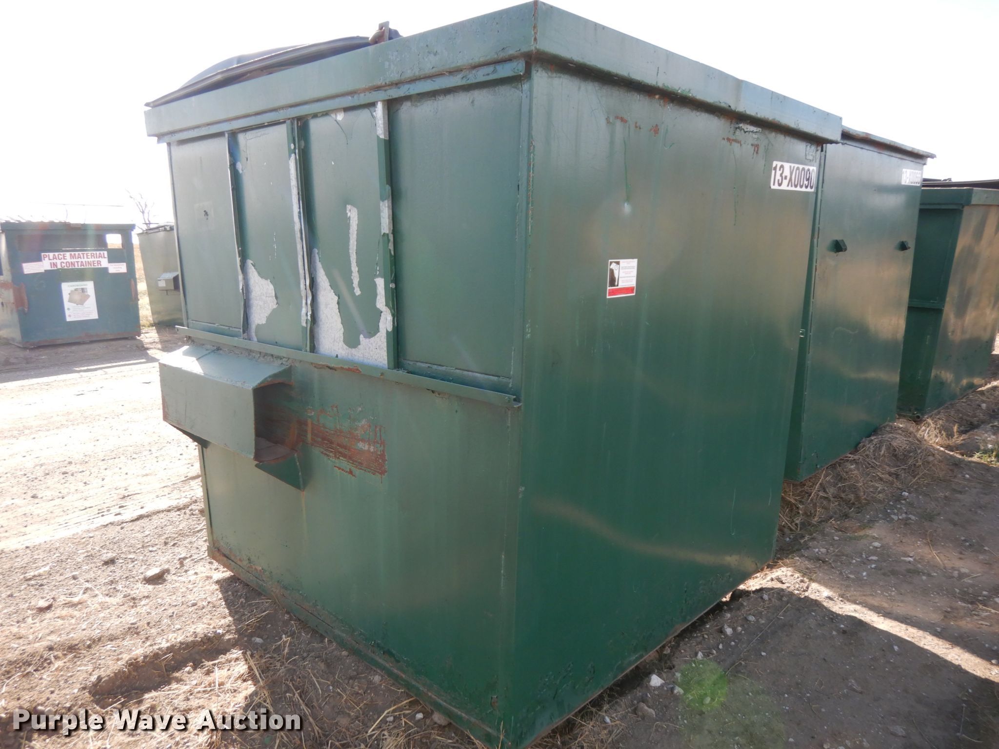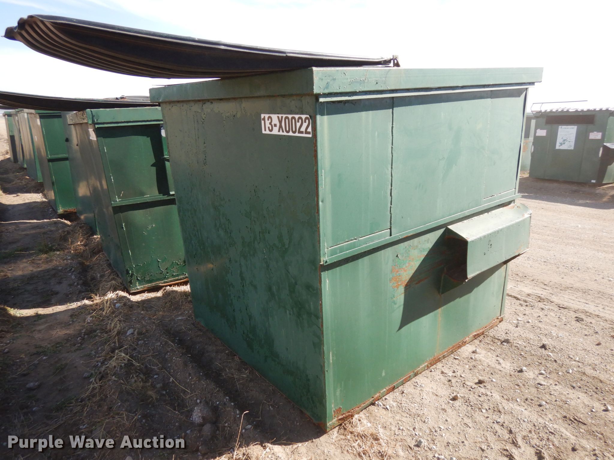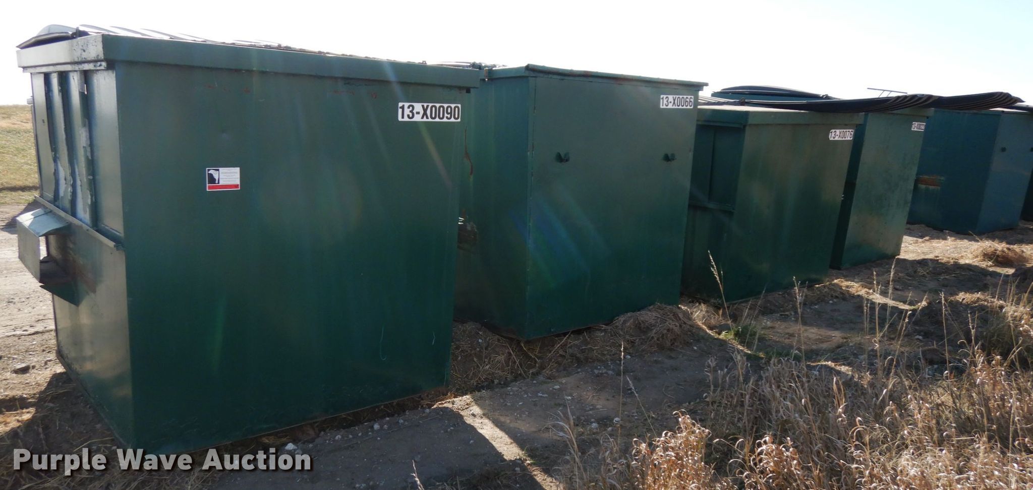 Purple Wave is selling a used Refuse or Compaction Equip. in Nebraska. This item is a (4) dumpsters with the following: Approx. 69"W x 74"D x 75"H, Eight yd. capacities, Apache FL8FD dumpster, EIN 13-X0090, 13-X0066, 13-X0076, 13-X0022, Unit# 8
