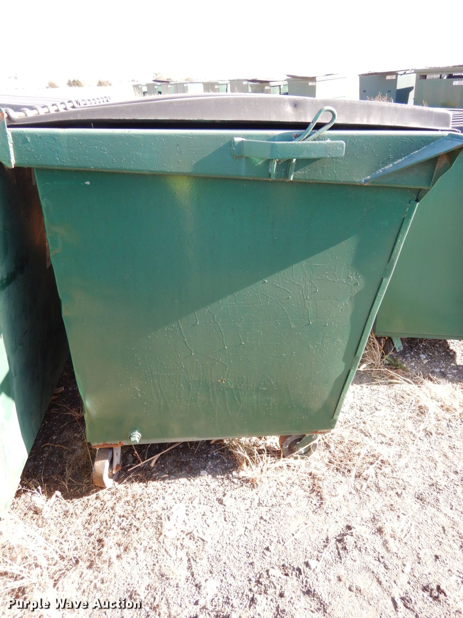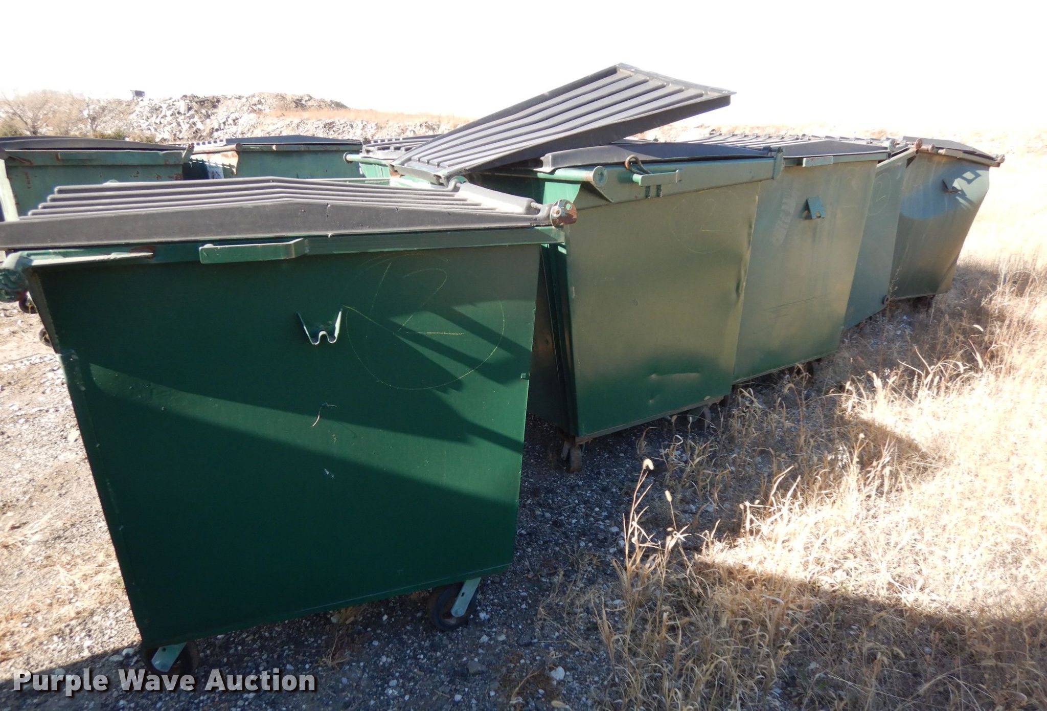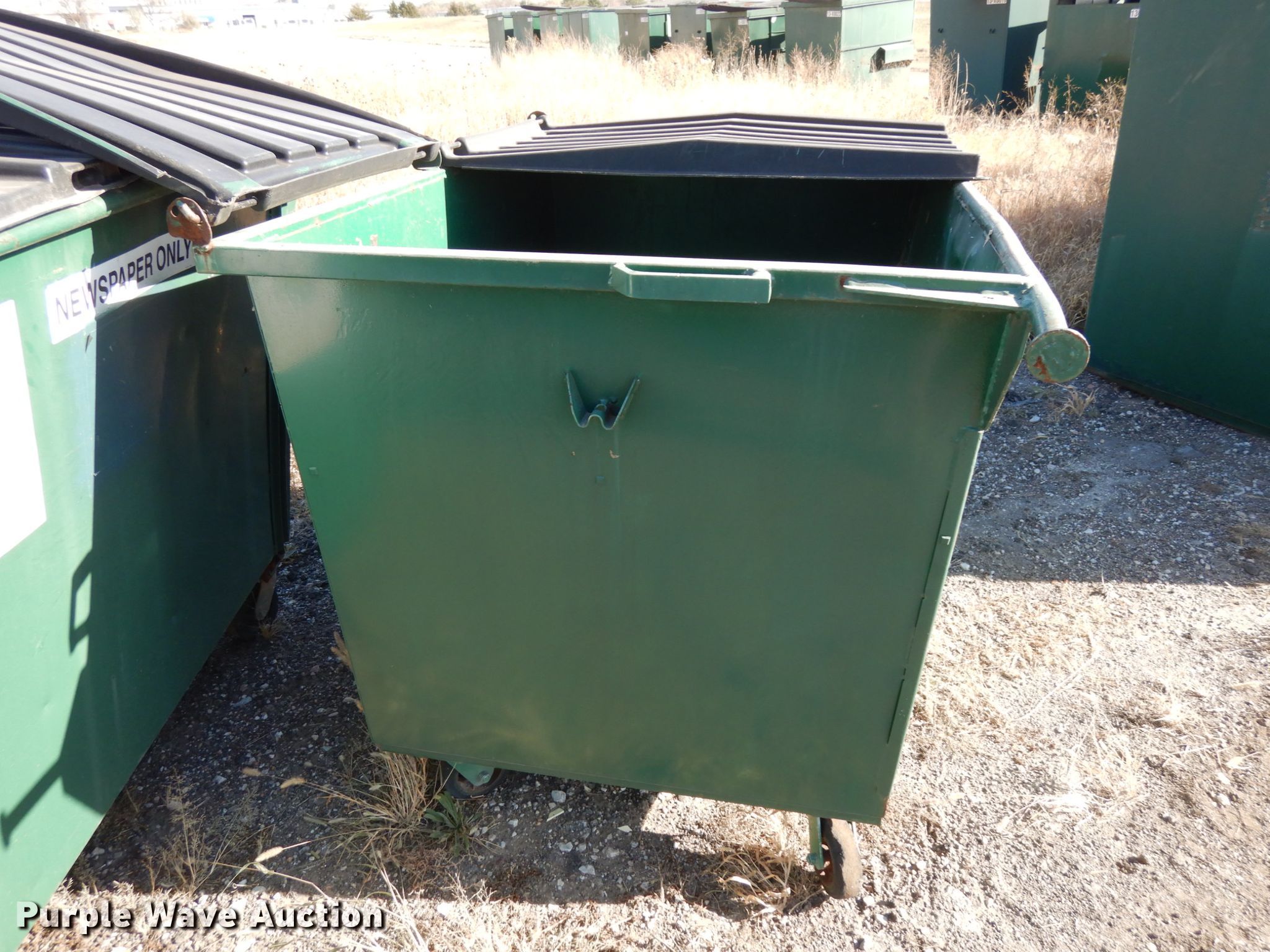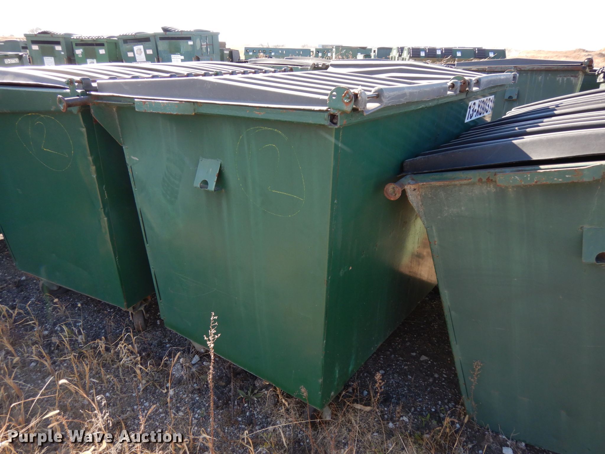 Purple Wave is selling a used Refuse or Compaction Equip. in Nebraska. This item is a (5) front load dumpsters with the following: Approx. 56"W x 39"D at base, Approx. 46"H, Two yd. capacities, One damaged, EIN 13-X0135, 13-0136, 13-X0031, 13-X0100, 13-X0134, Unit# 12