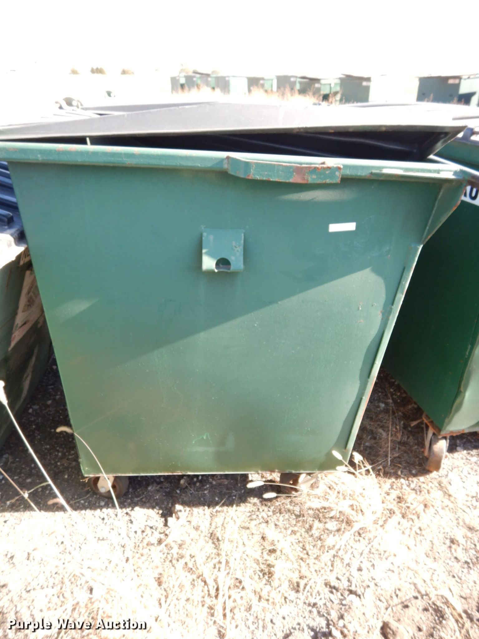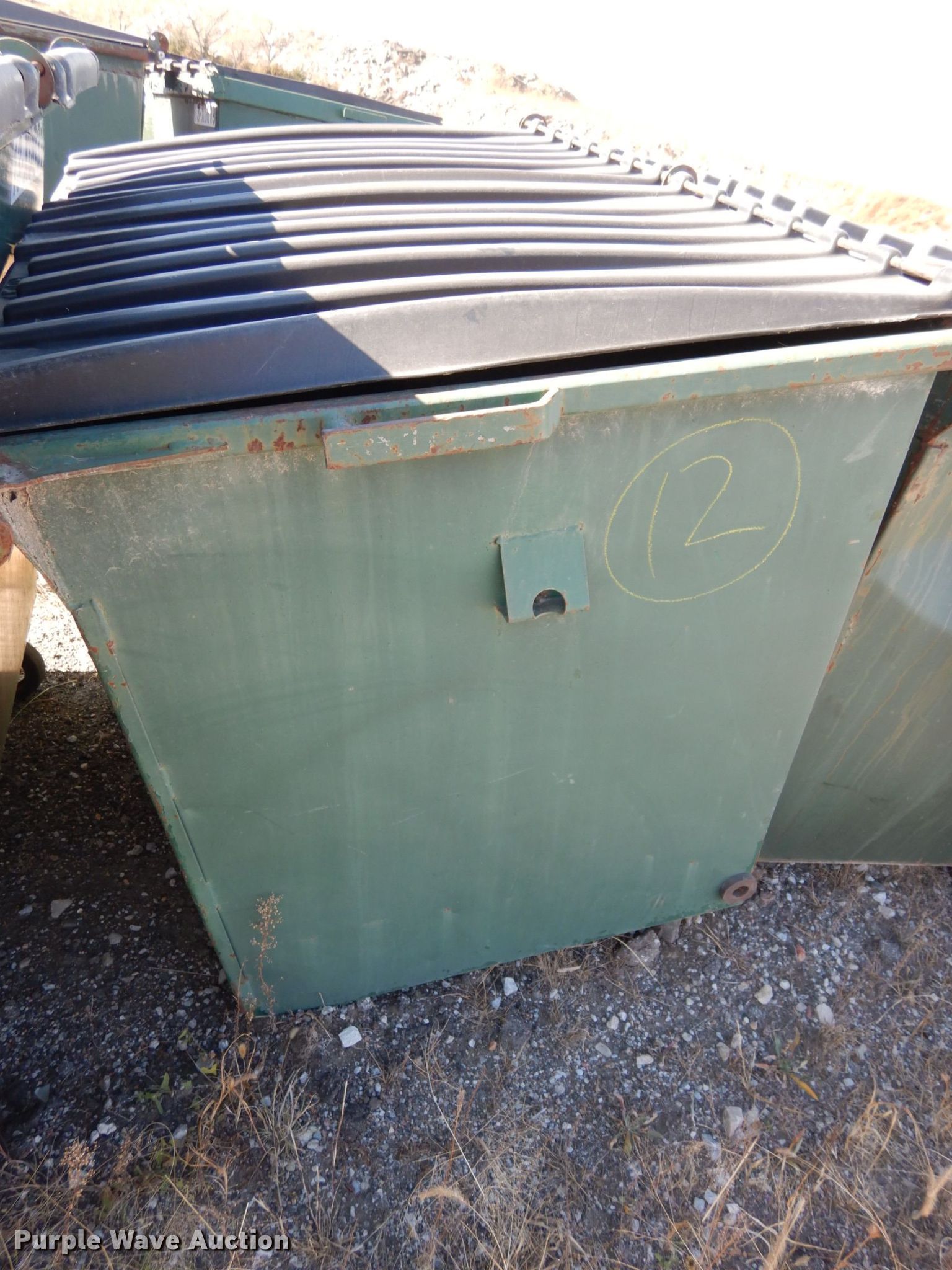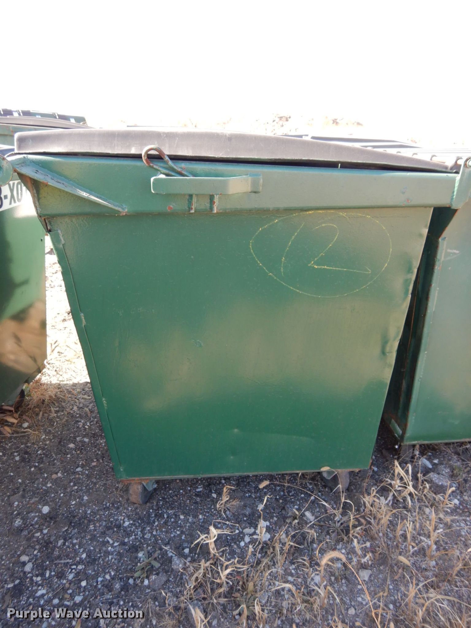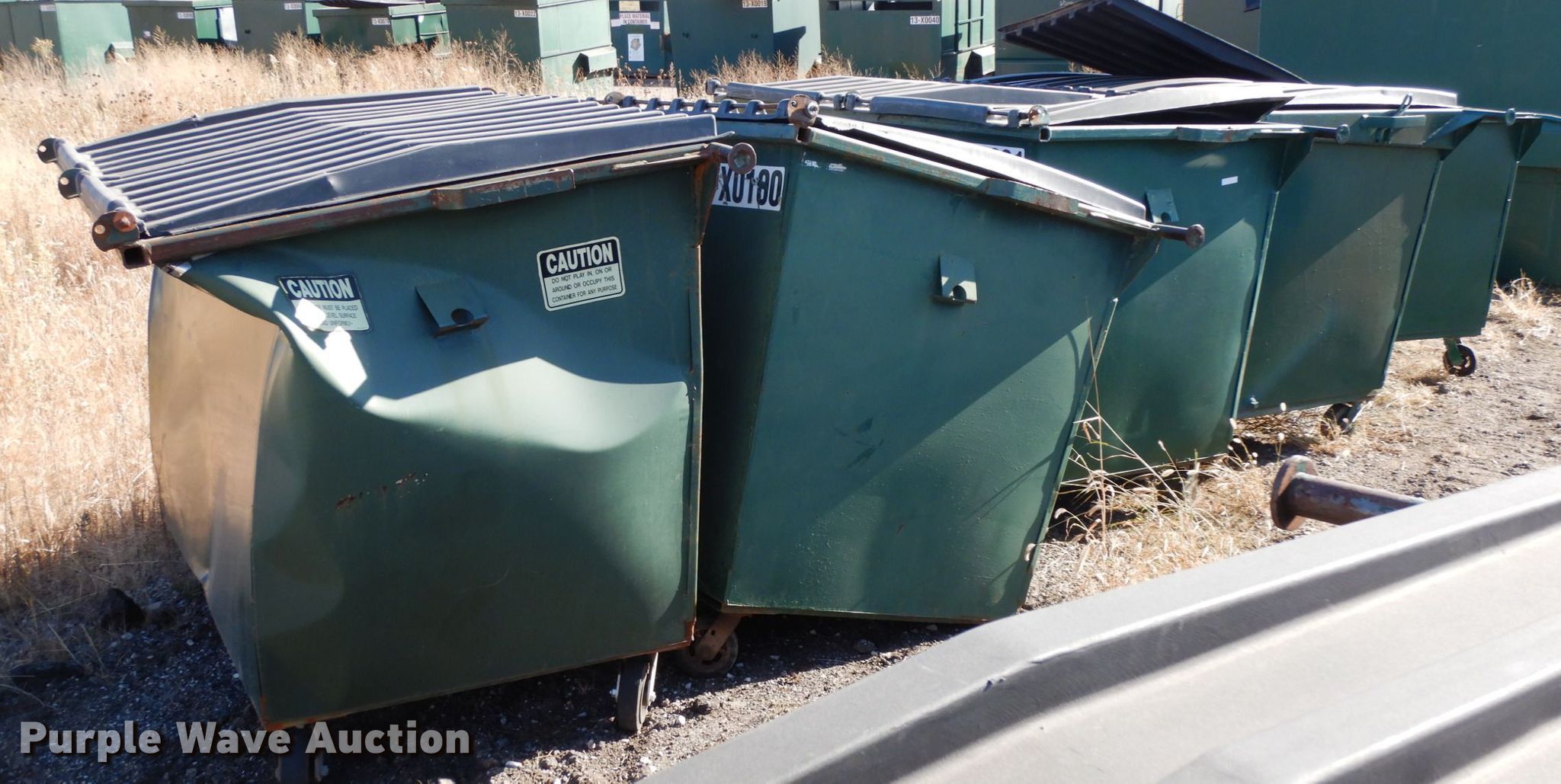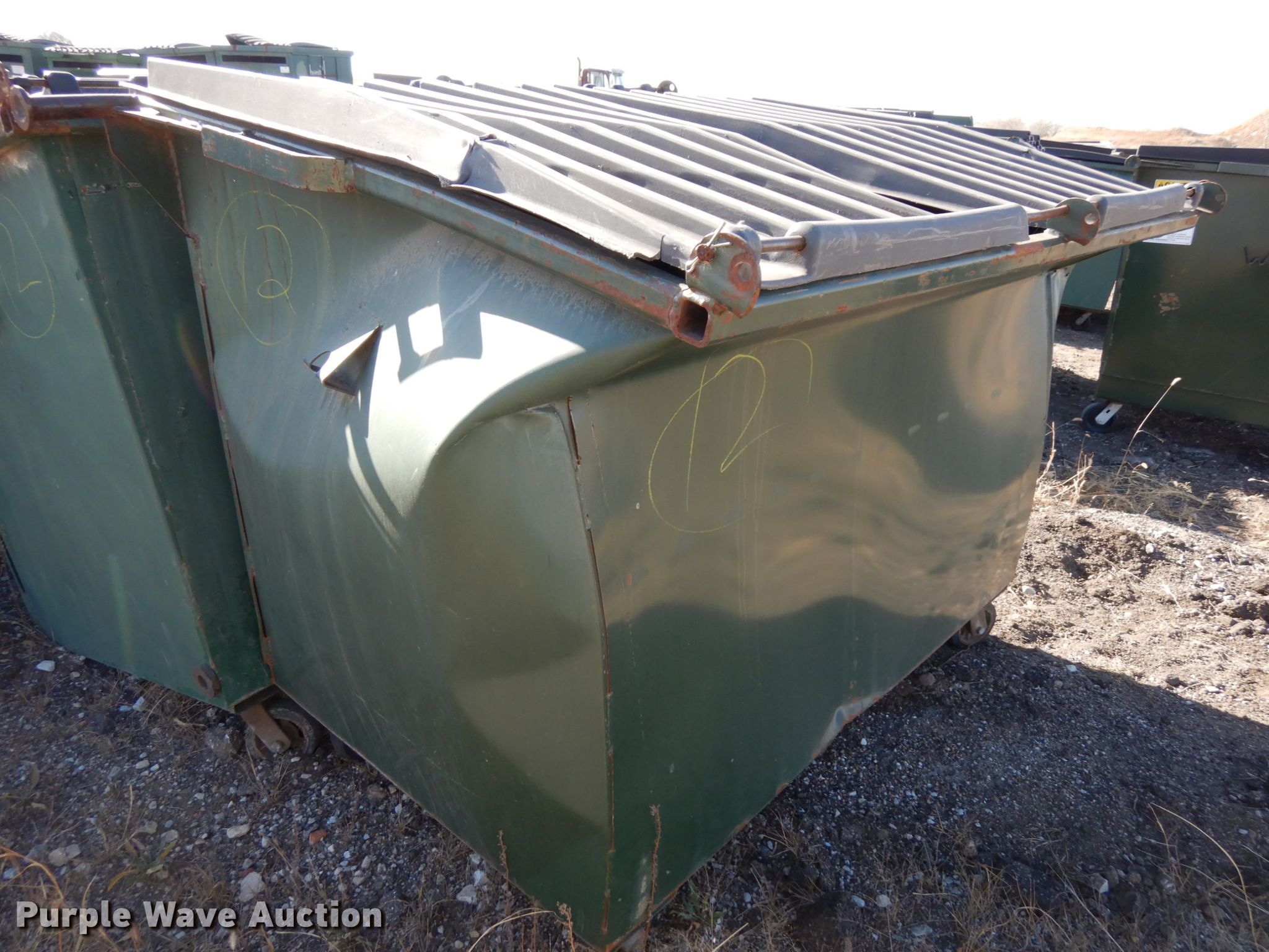 Purple Wave is selling a used Refuse or Compaction Equip. in Nebraska. This item is a (5) front load dumpsters with the following: Approx. 56"W x 39"D at base, Approx. 46"H, Two yd. capacities, One damaged, EIN 13-X0135, 13-0136, 13-X0031, 13-X0100, 13-X0134, Unit# 12