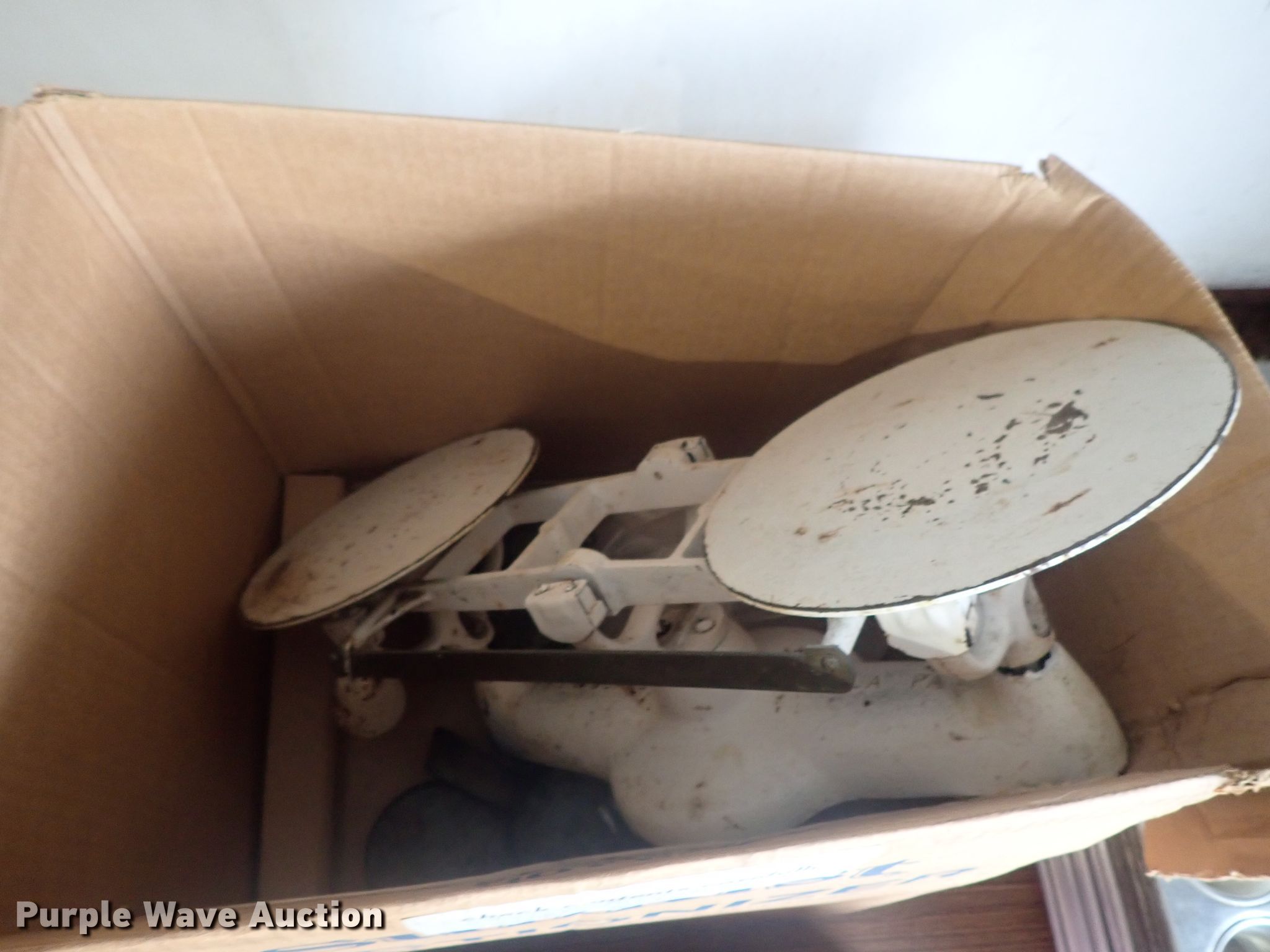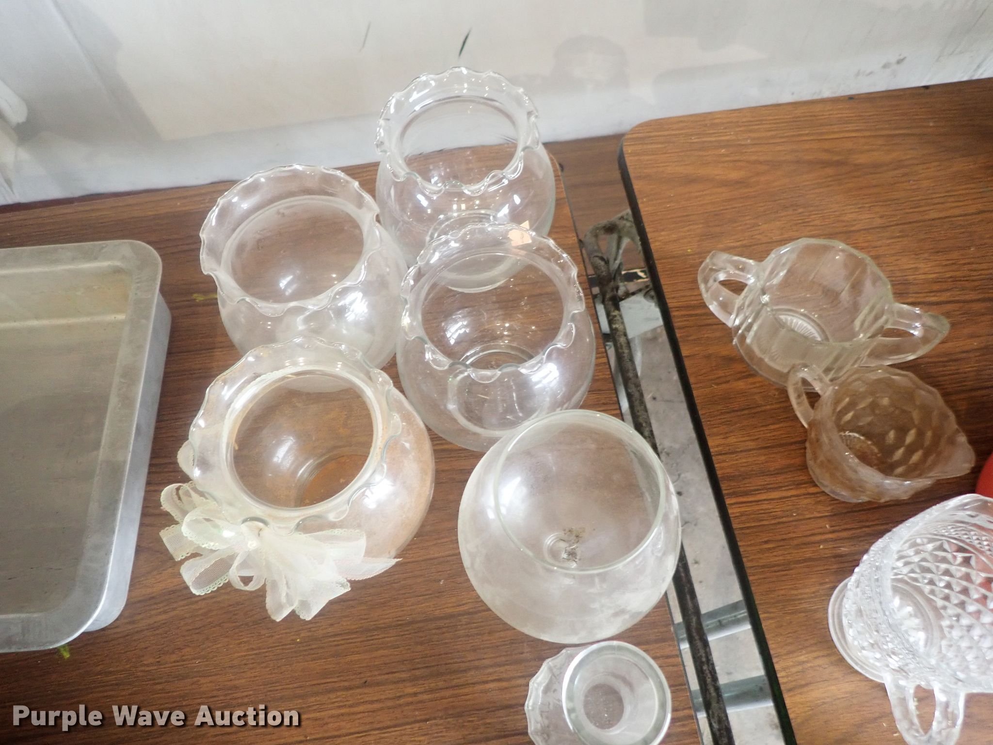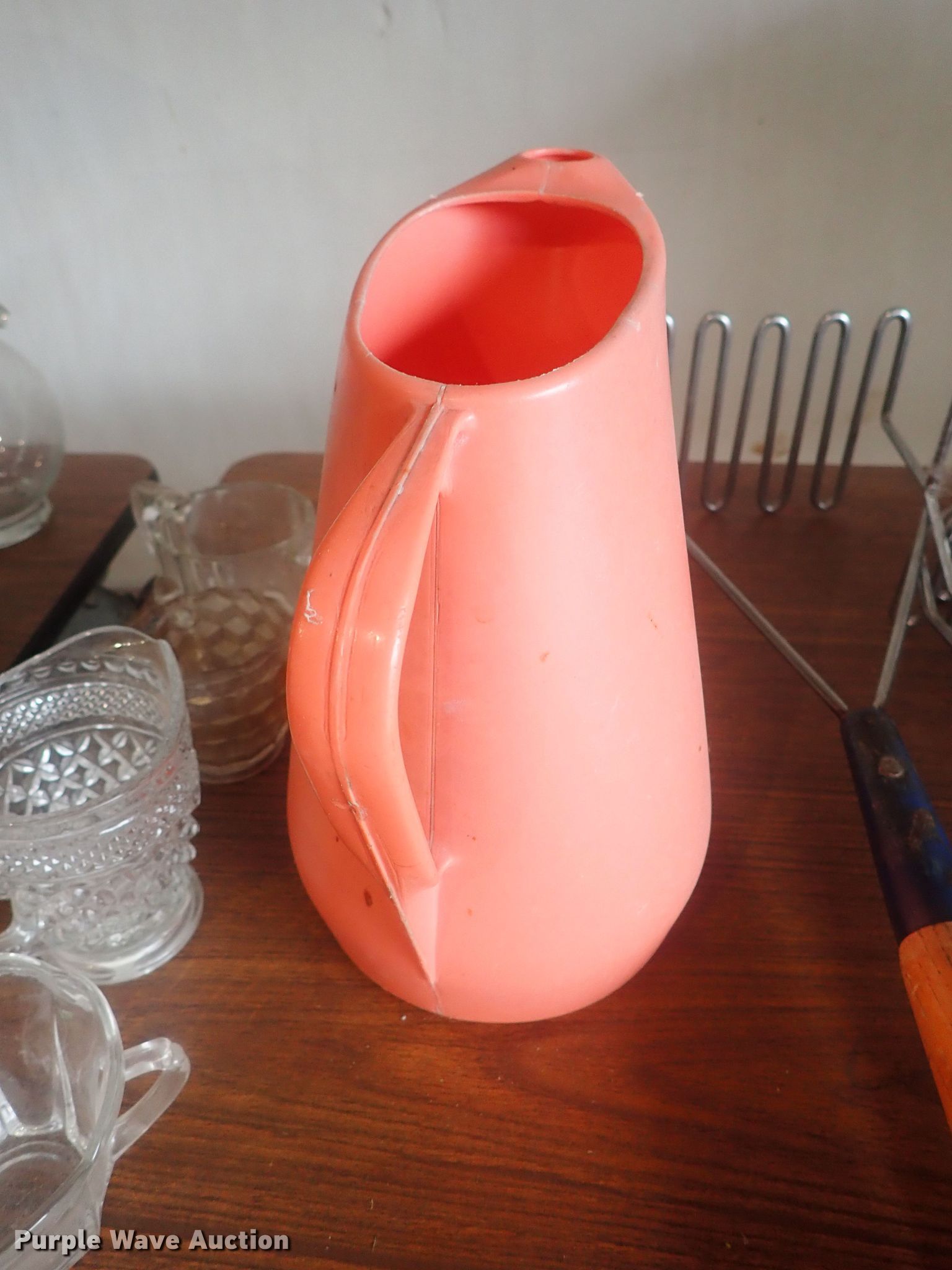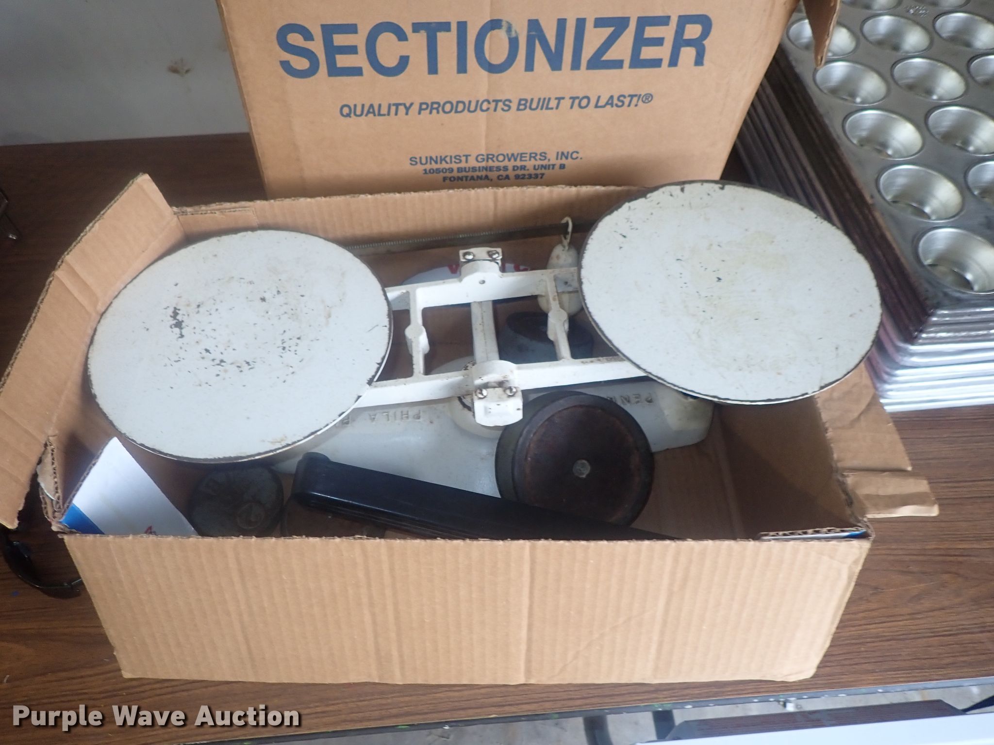 Purple Wave is selling a used Restaurant Equip. in Kansas. This item is a Restaurant equipment and supplies with the following: GE microwave, Cupcake pans, Scales, Pitchers, Glasses, Cake pans, Coffee pot, Pizza pans, Pizza peels, Nacho cheese dispenser, Vollrath food warmer, Rolling pins, Ice cream scoops, Assorted metal pans, Whisks, Assorted serving utensils, Bread pans, Baking sheets, Pots, Fryer baskets, Blenders, Mixer, Cutting boards, Serving trays and more, Tables not included