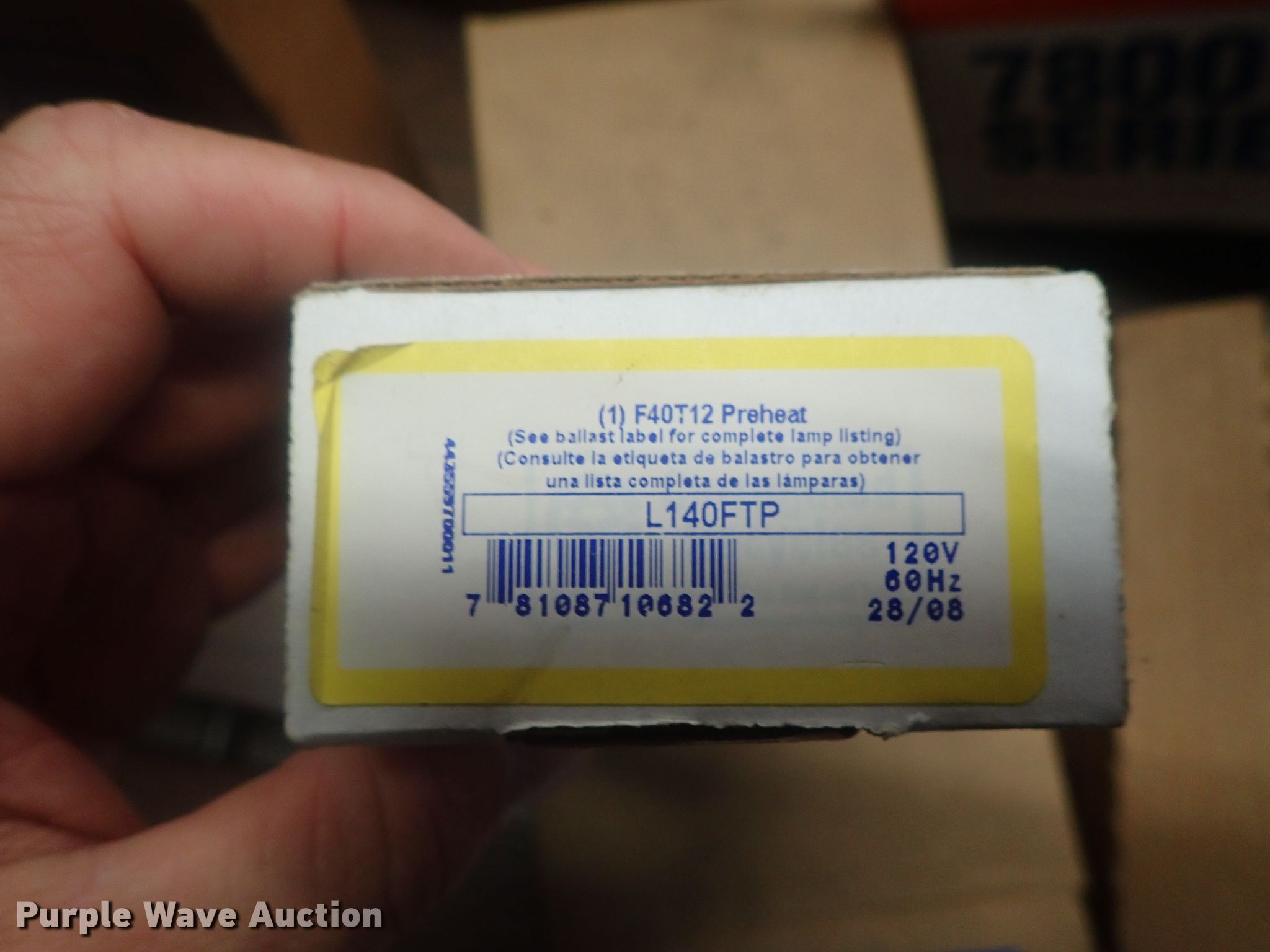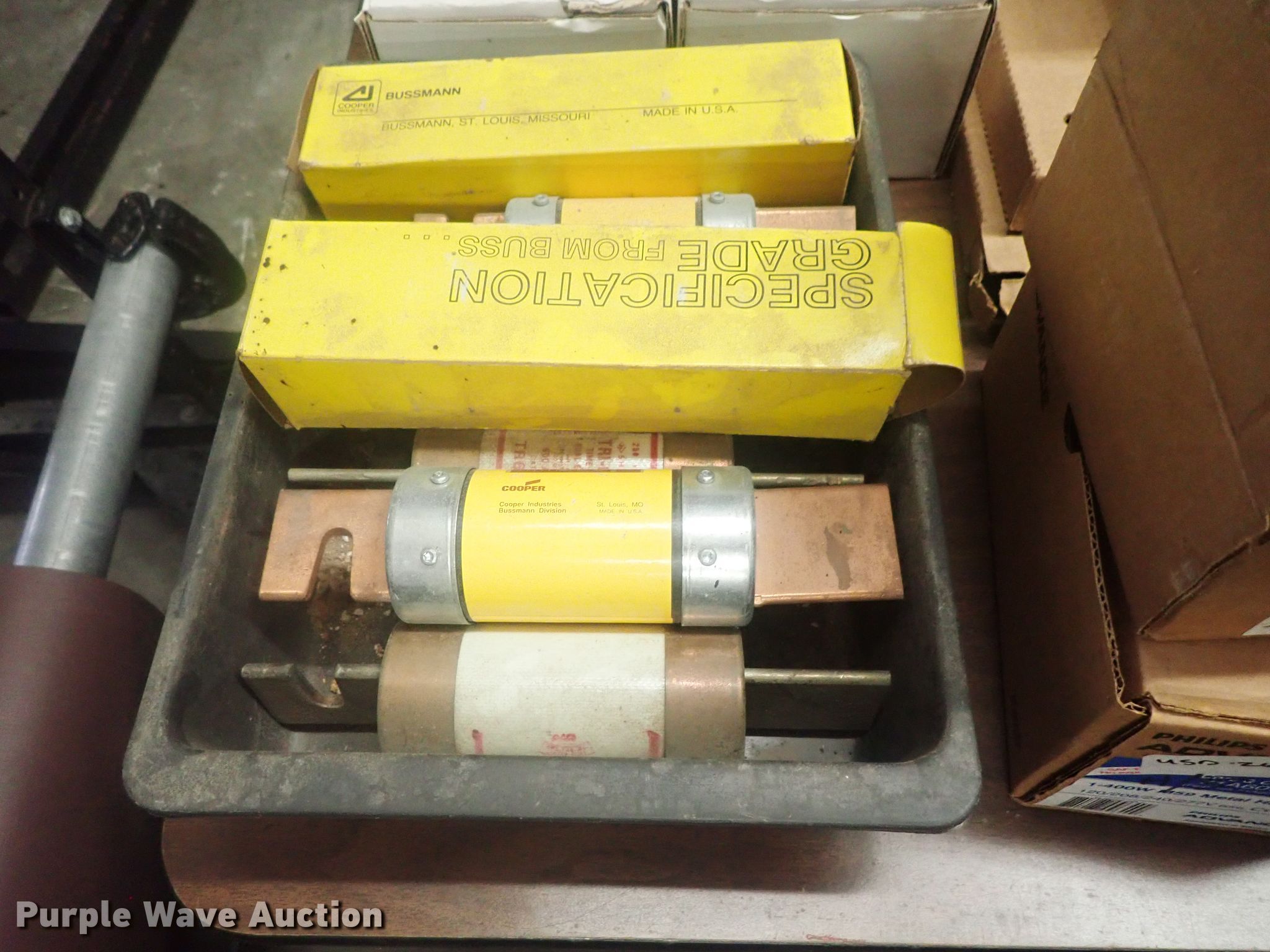 Purple Wave is selling a used Building Materials in Kansas. This item is a Electrical supplies and parts with the following: Breakers, Bandsaw blades, PSI gauges, Lathe parts, Ballasts, Sylvania ballast kitsch, Fuses, Armstrong motor, Bulbs, Fiasco motor, Burner control, Filter dryer, Ignition transformers and more