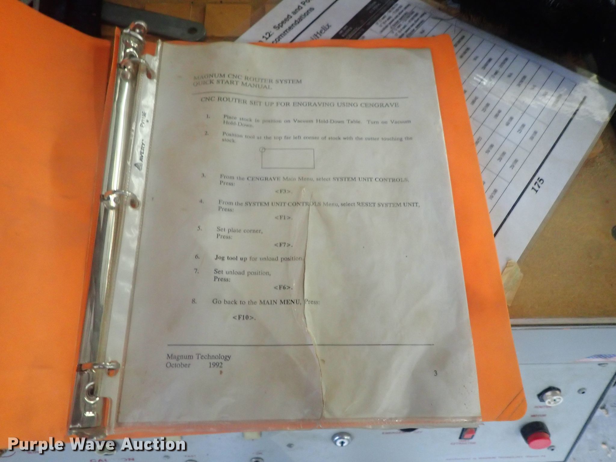 Purple Wave is selling a used Machine Shop Tools and Equip. in Kansas. This item is a Phoenix GS Cad/Cam CNC router/engraver with the following: 43" x 31" x 60", Components, Manuals, Non-operational motor