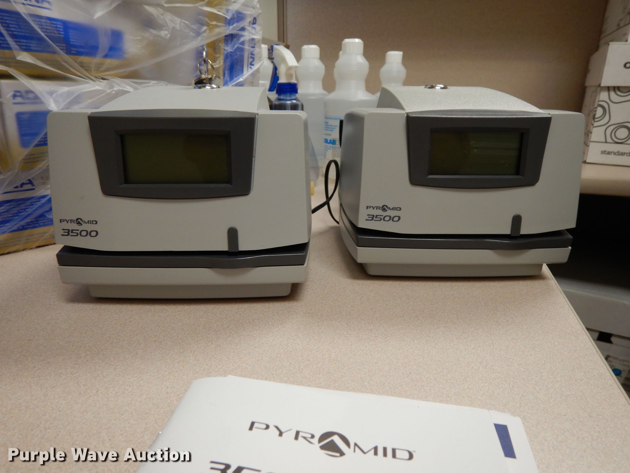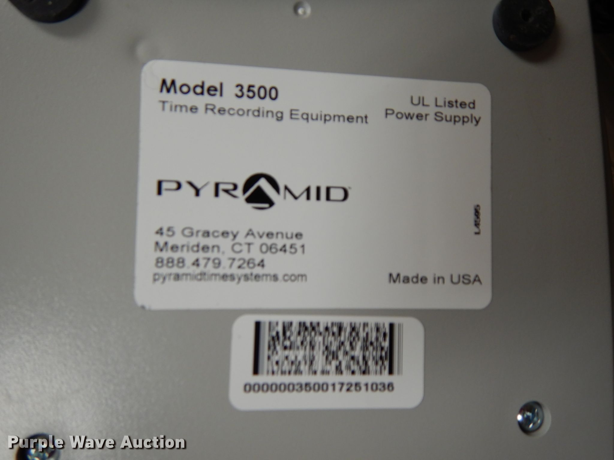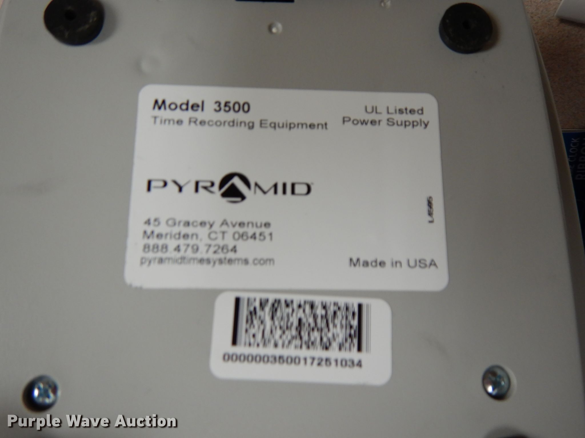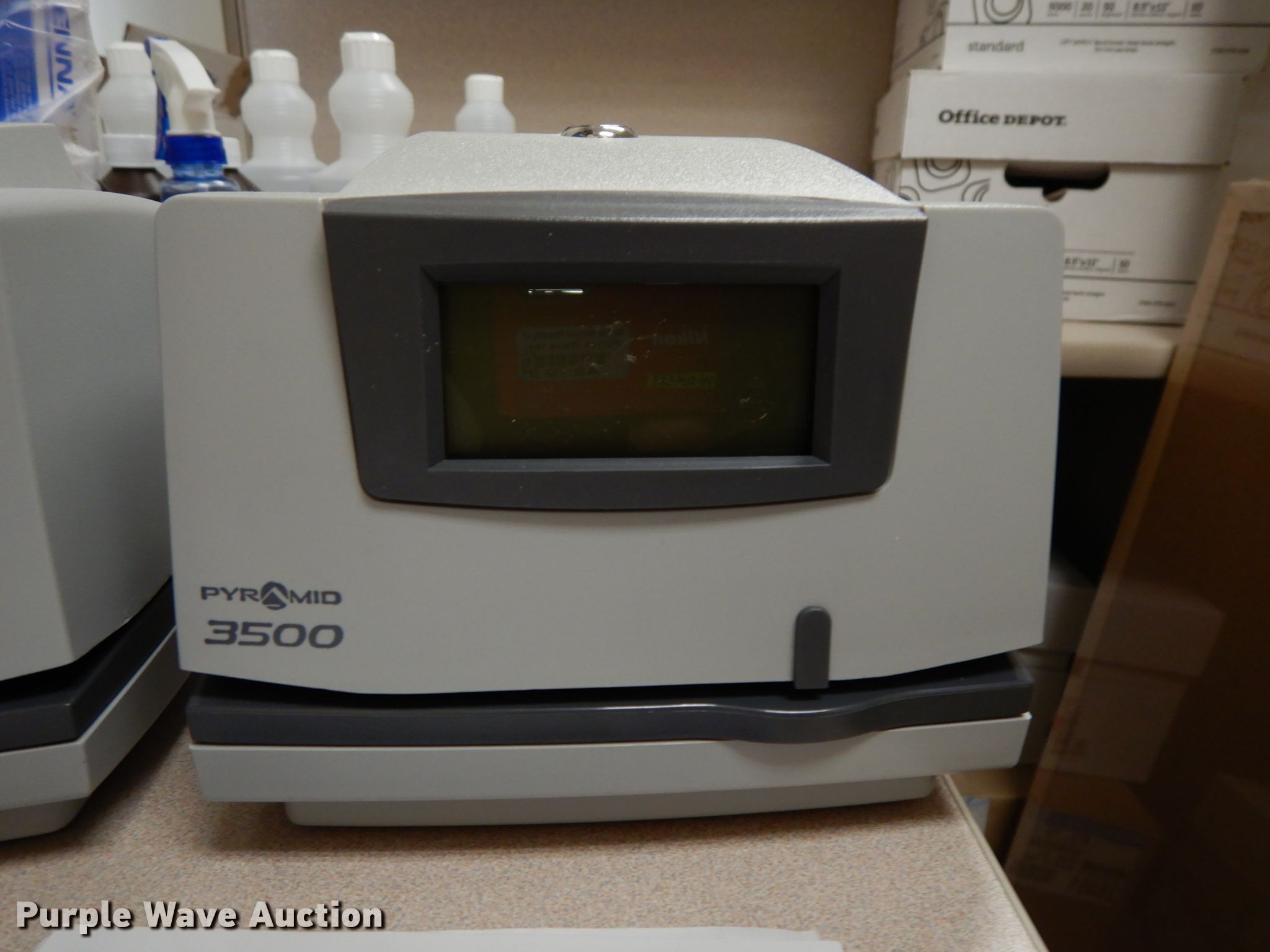 Purple Wave is selling a used Office Supplies and Equip. in Nebraska. This item is a (2) Pyramid 3500 time clocks/document stamps with the following: Unused time clock ribbon, Operator/user guide