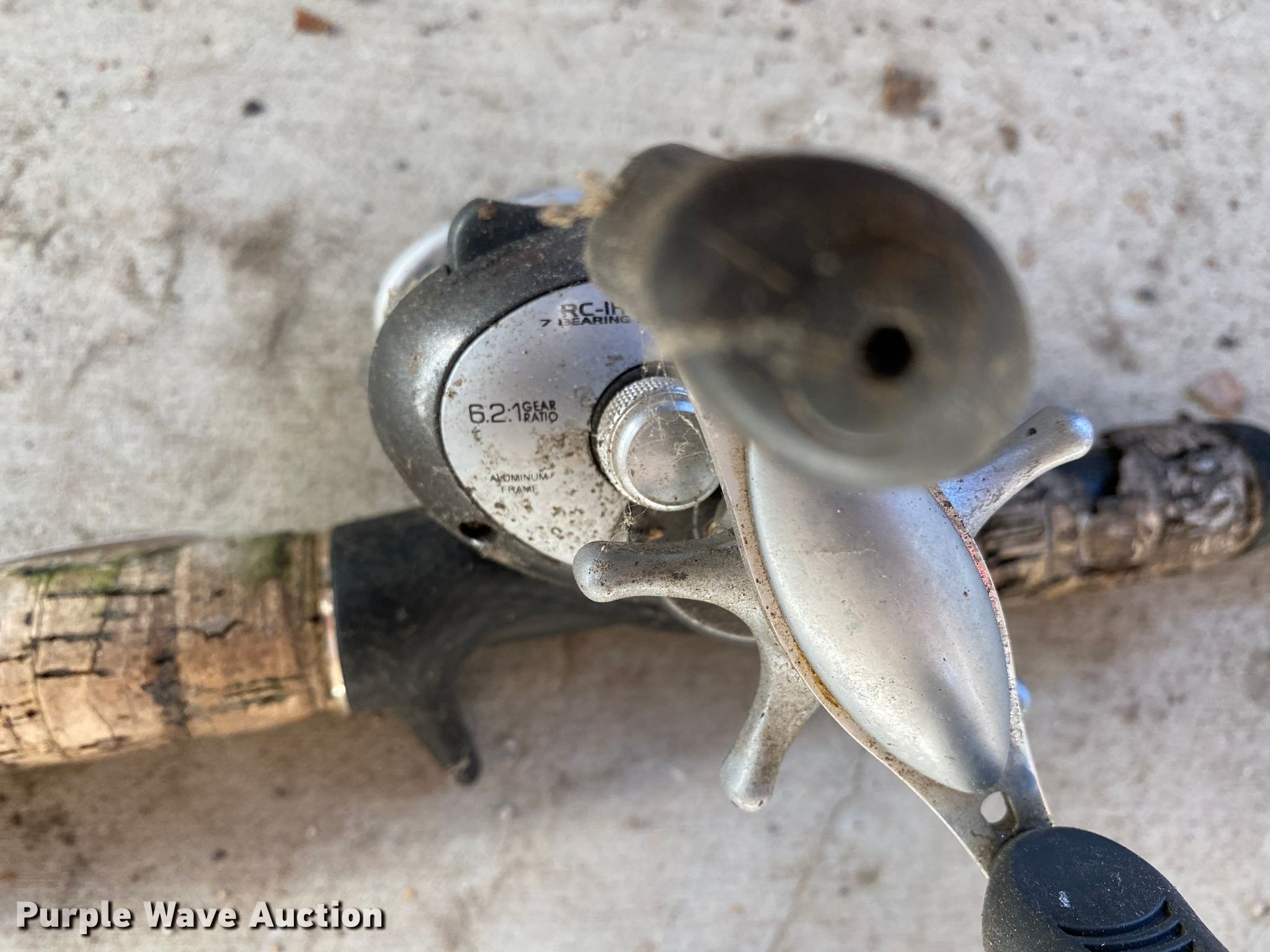 (2) fishing poles. Bass Pro XPS reel 6.2.1 gear ratio, 64" rod, Top of road broken off, Shakespeare Synergy reel Shakespeare Durango rod, 78"L, Medium action, Unknown operating condition. City of Lebanon, MO. 401 S Jefferson Ave. Lebanon, MO 65536