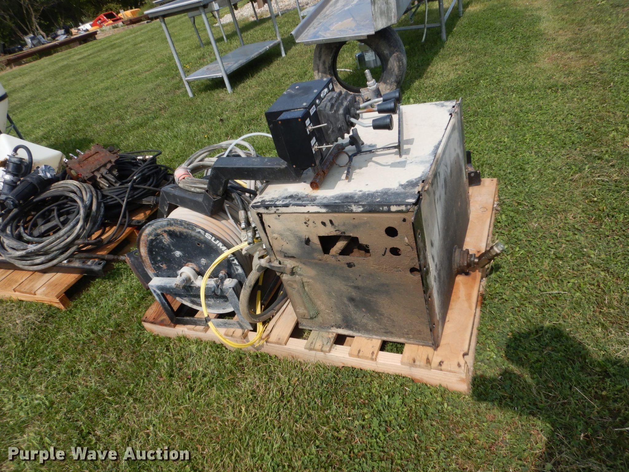 Purple Wave is selling a used Applicator Attach. in Iowa. This item is a Sprayer parts with the following: Inductees, Valves, Hose, Hose reel, Hydraulic spool valves, Removed from sprayer trailer