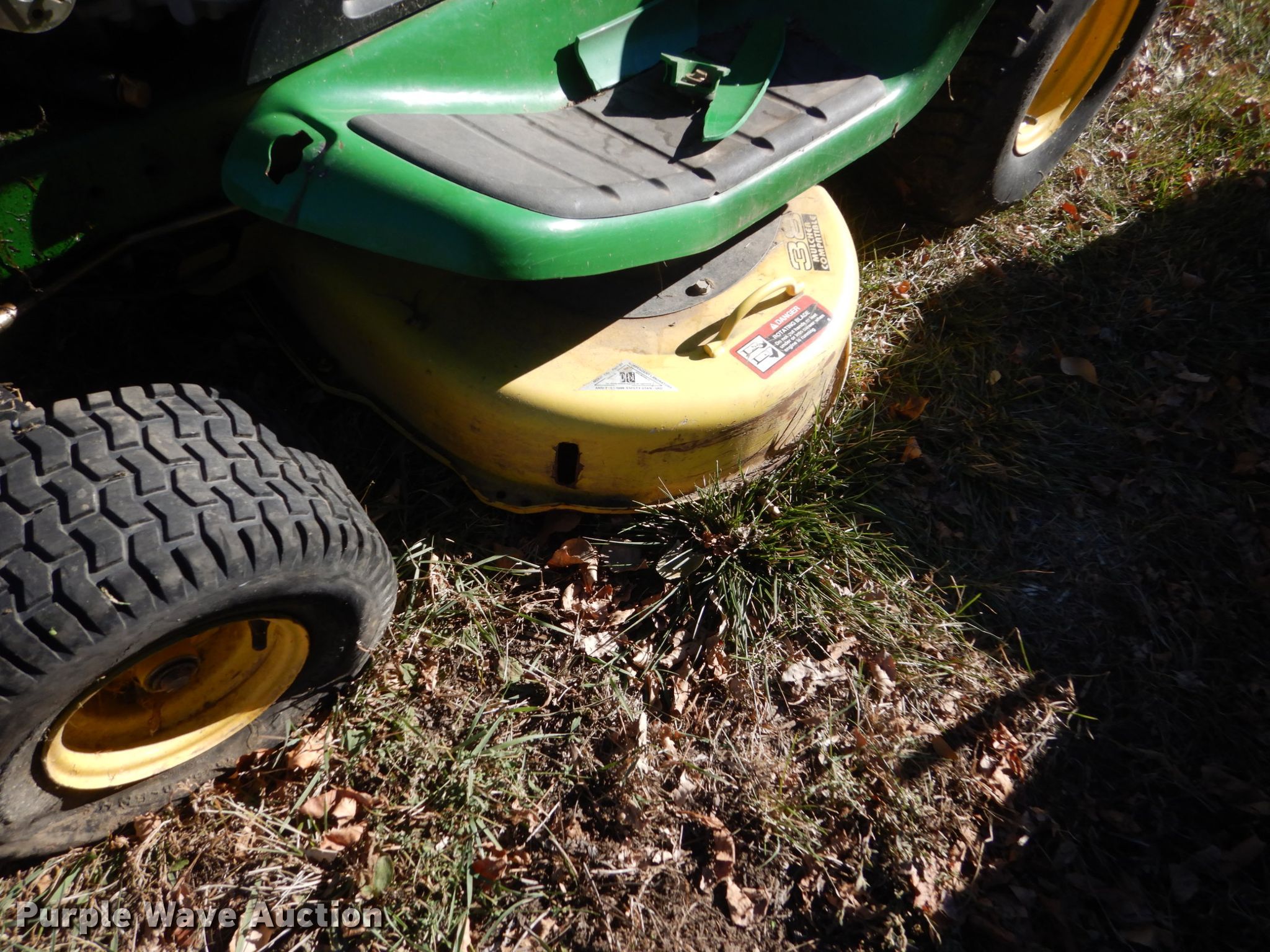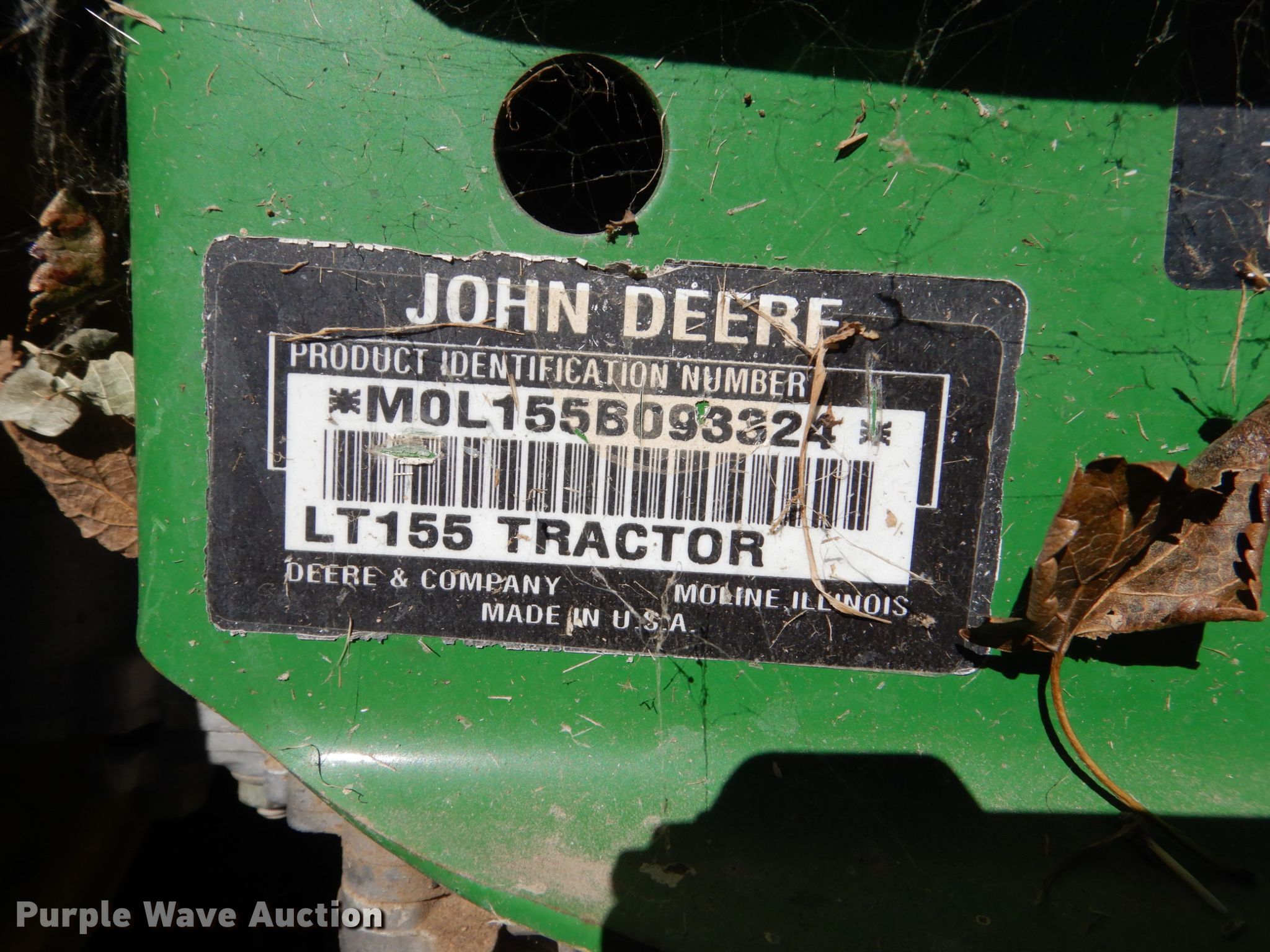 Purple Wave is selling a used Lawn Mower in South Dakota. This item is a John Deere LT155 lawn mower with the following: 38" cut, Serial: M0L155B093324