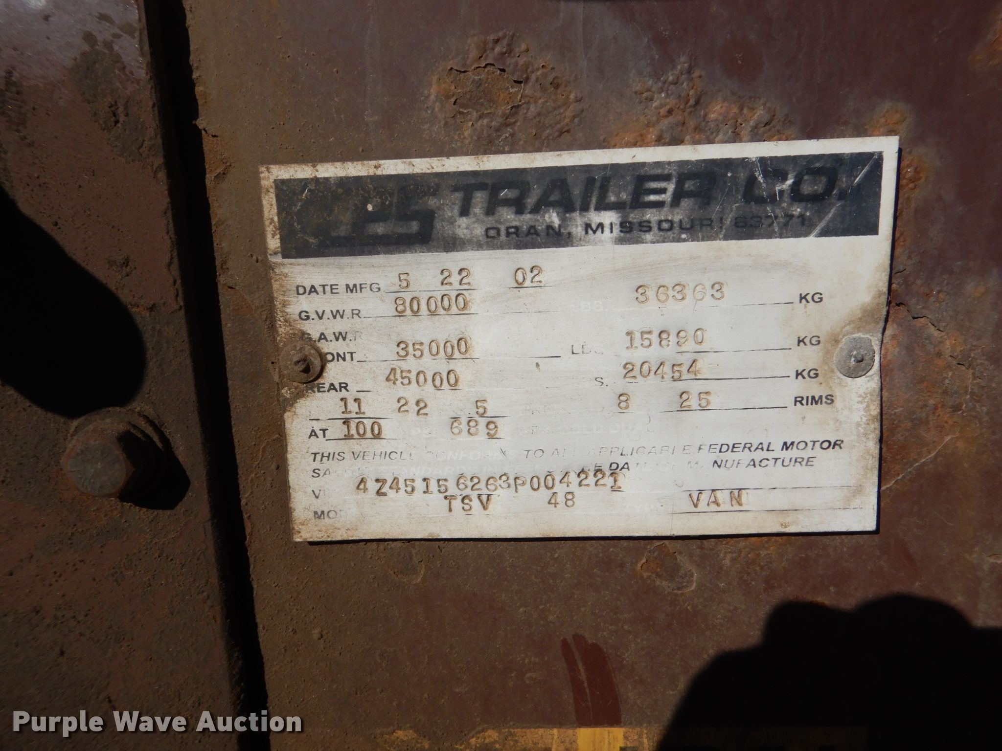 Purple Wave is selling a used Grain or Commodity Trailer in South Dakota. This item is a 2003 CPS walking floor trailer with the following: 48'L x 102"W overall, 9'6" side height, Tarp, Dual leg landing gear, Spring suspension, Air brakes, Tandem axle, 295/75R22.5 tires, GVWR 80,000 lbs