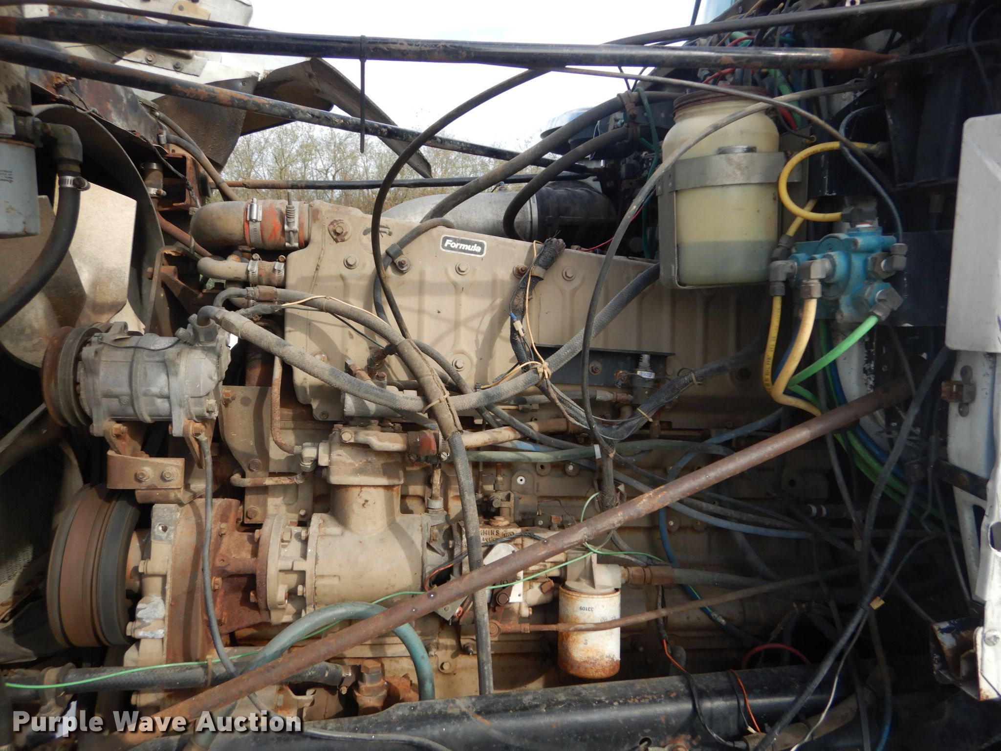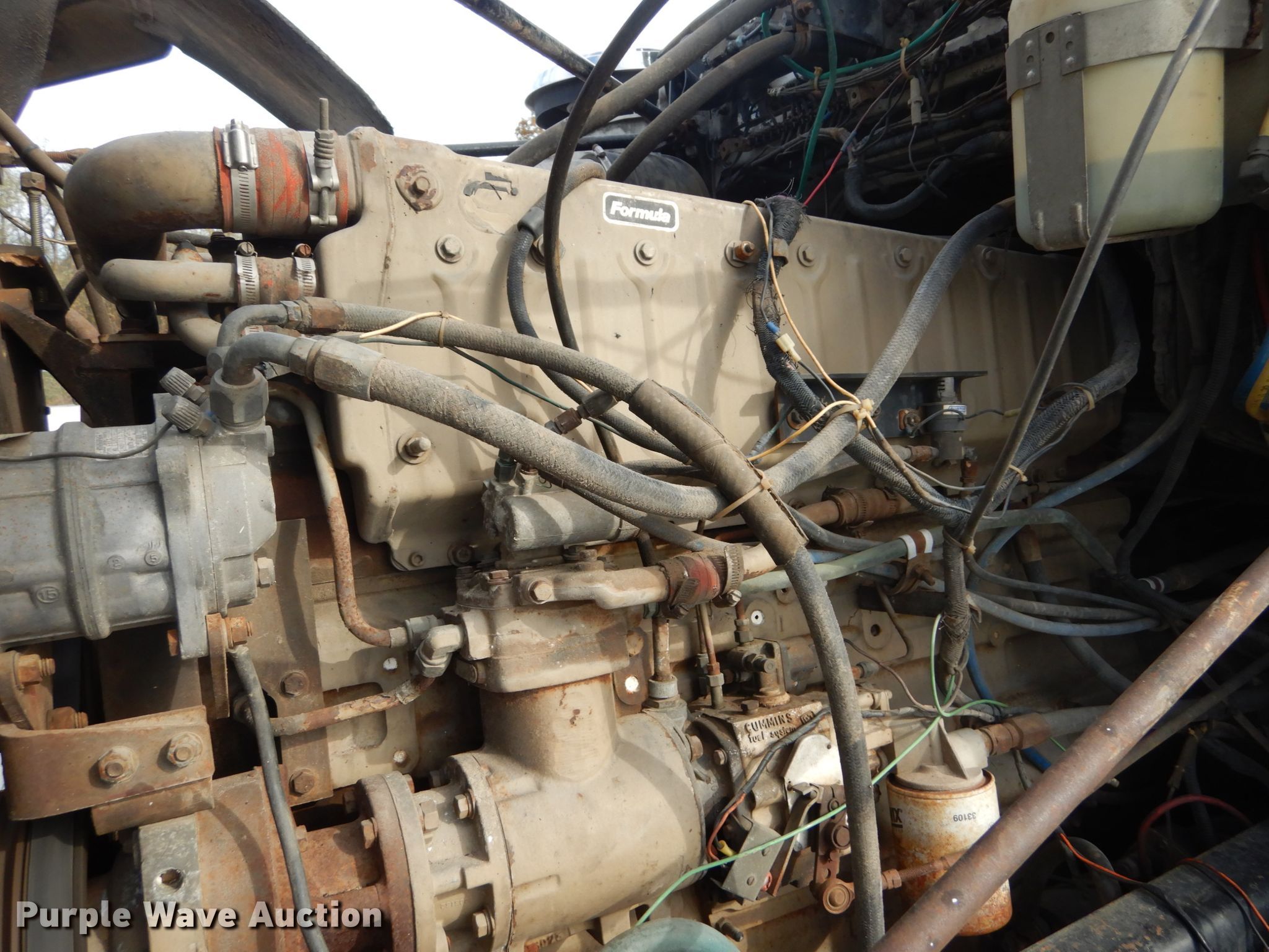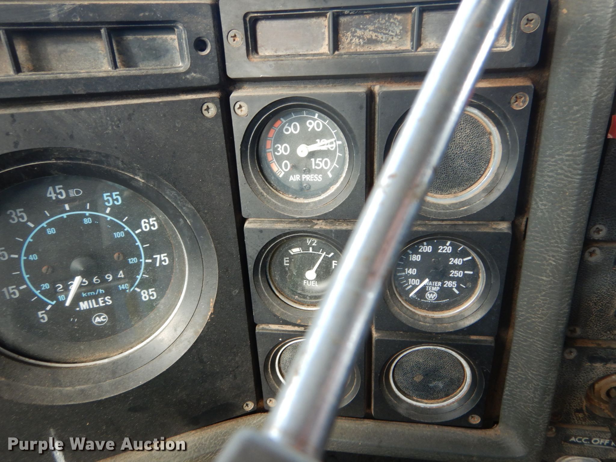 1987 GMC General flatbed truck. 223,694 miles on odometer, Engine hours: 3,816. Engine Cummins, Displacement: 14.0L, Cylinders: 6, Fuel type: Diesel. Transmission Eaton Fuller, Manual, Speed: 8. Chassis Axles: Tandem, Suspension: Air, Brakes: Air, GVWR: 48,000 lbs, Wheelbase: 224". Interior AC, Heat, Heated mirrors, Power windows, Brake controller. Operational Flatbed Length: 18', Width: 94". Tires Size: 11R24.5. Notes Non-operational AC. Missouri title. 1GDS9F4C5HV526866. Schatz Underground, Inc... Villa Ridge, MO 63089
