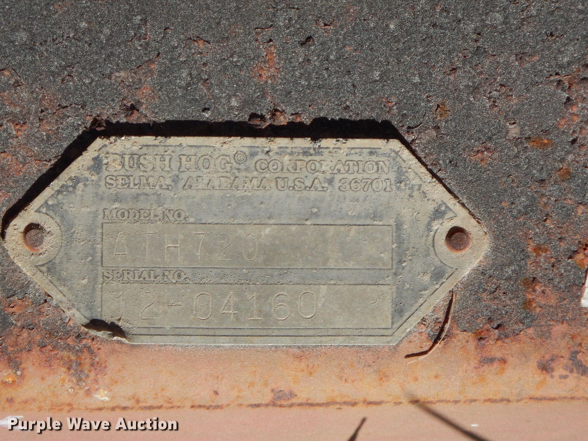 Purple Wave is selling a used Mower, Cutter, Shredder in Oklahoma. This item is a Bush Hog ATH720 finish mower with the following: 6'W, 540 PTO, Three point, Serial 12-04160