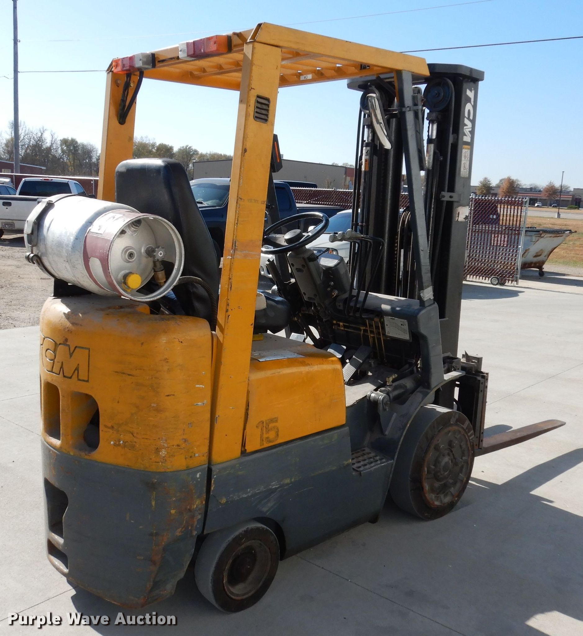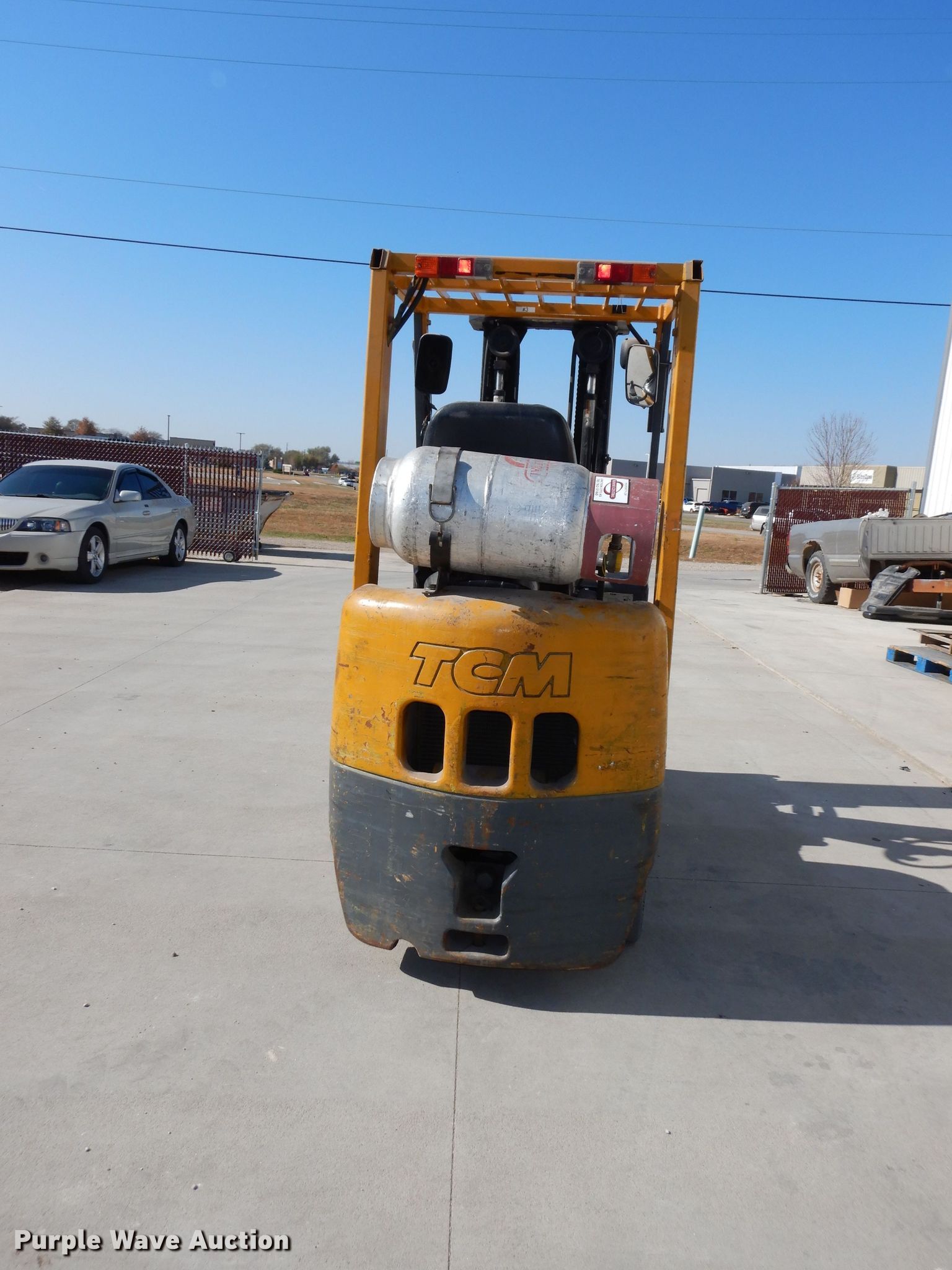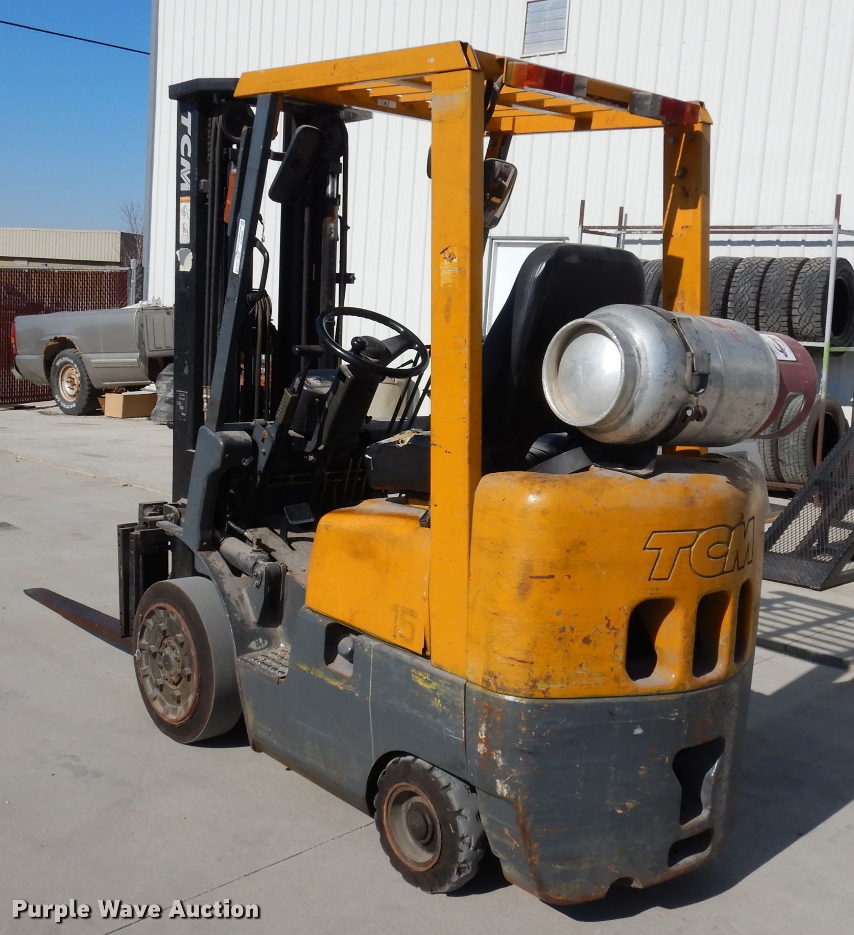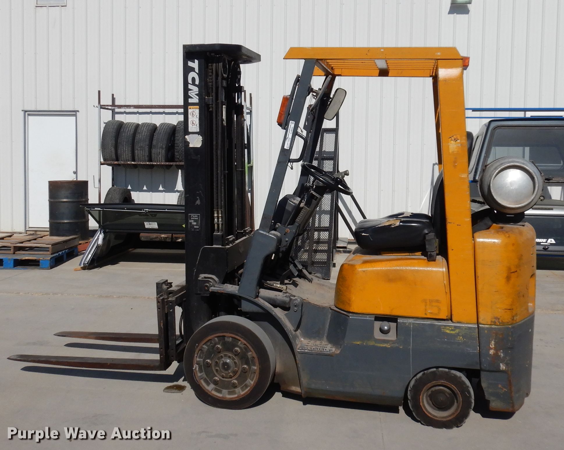 Purple Wave is selling a used Warehouse Forklift in Kansas. This item is a TCM FCG15F9 forklift with the following: 4,698 hours on meter, Serial: A12R00252