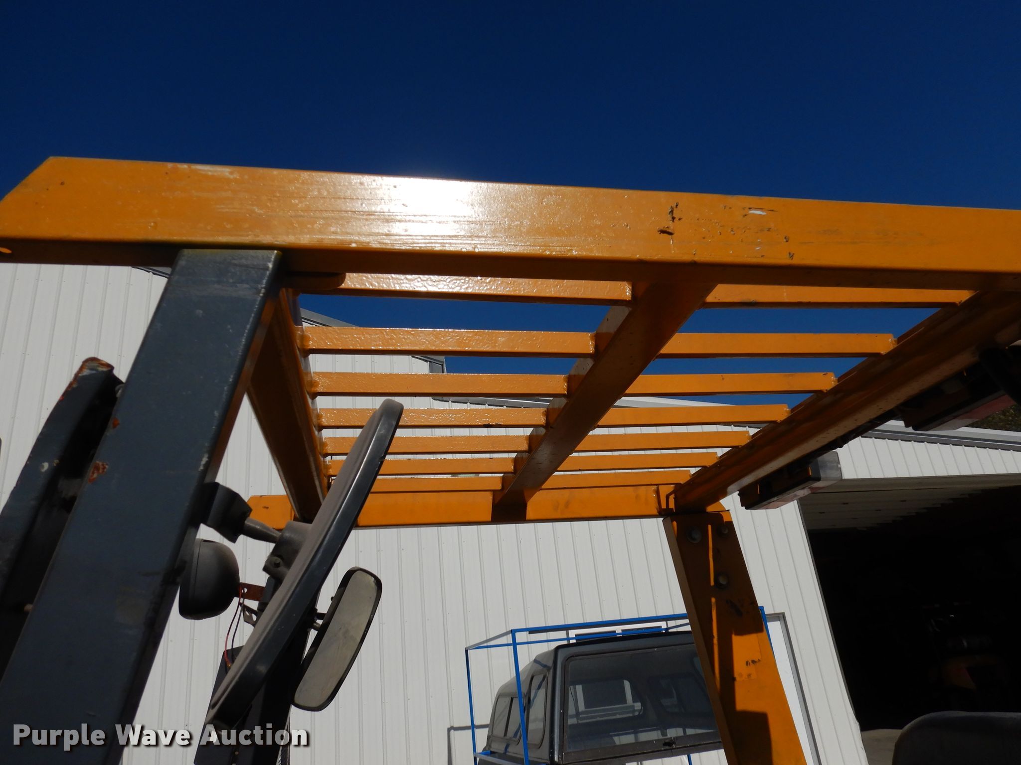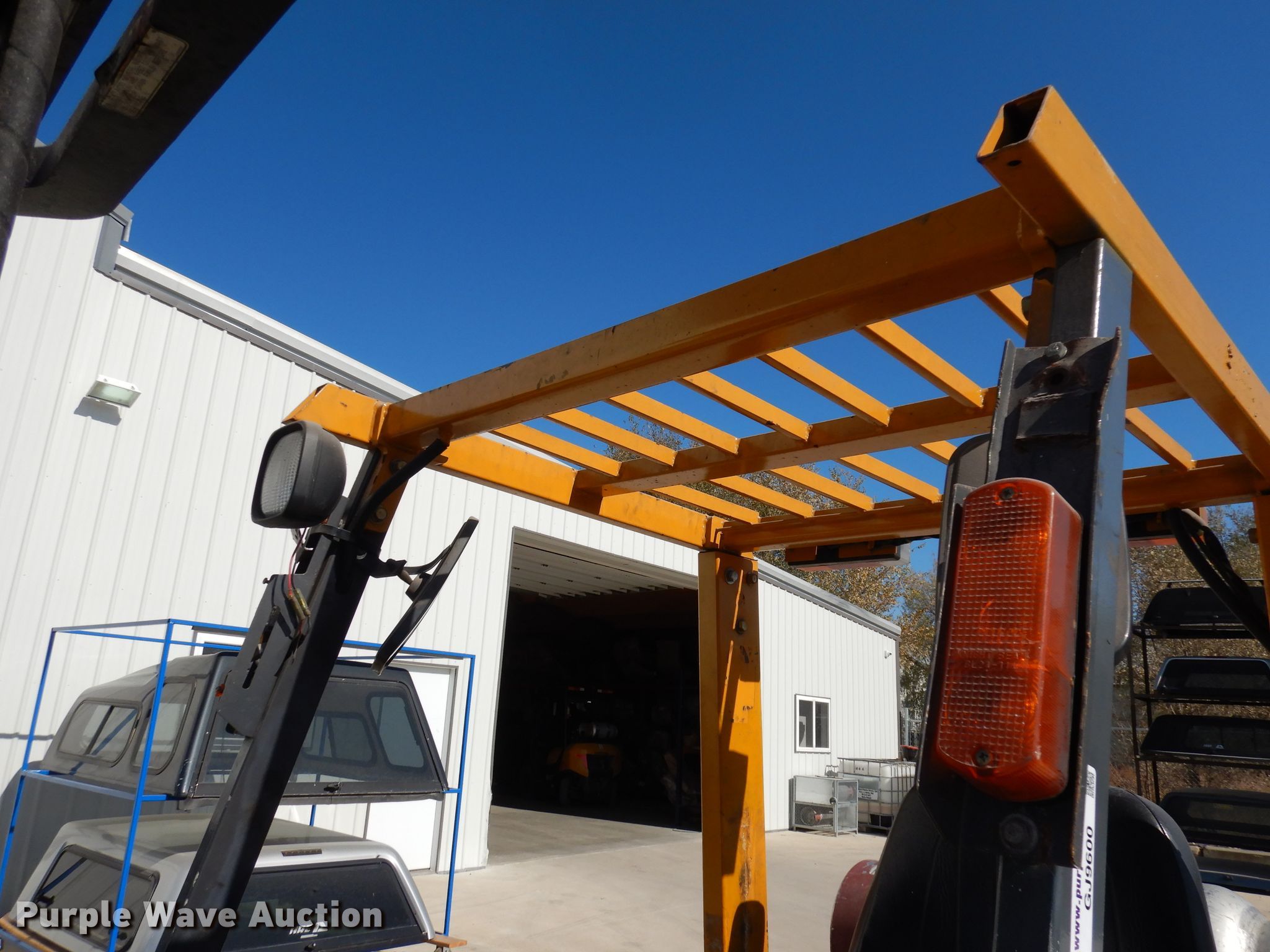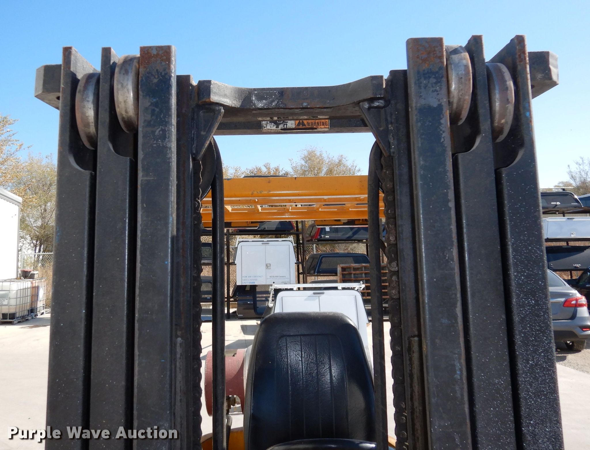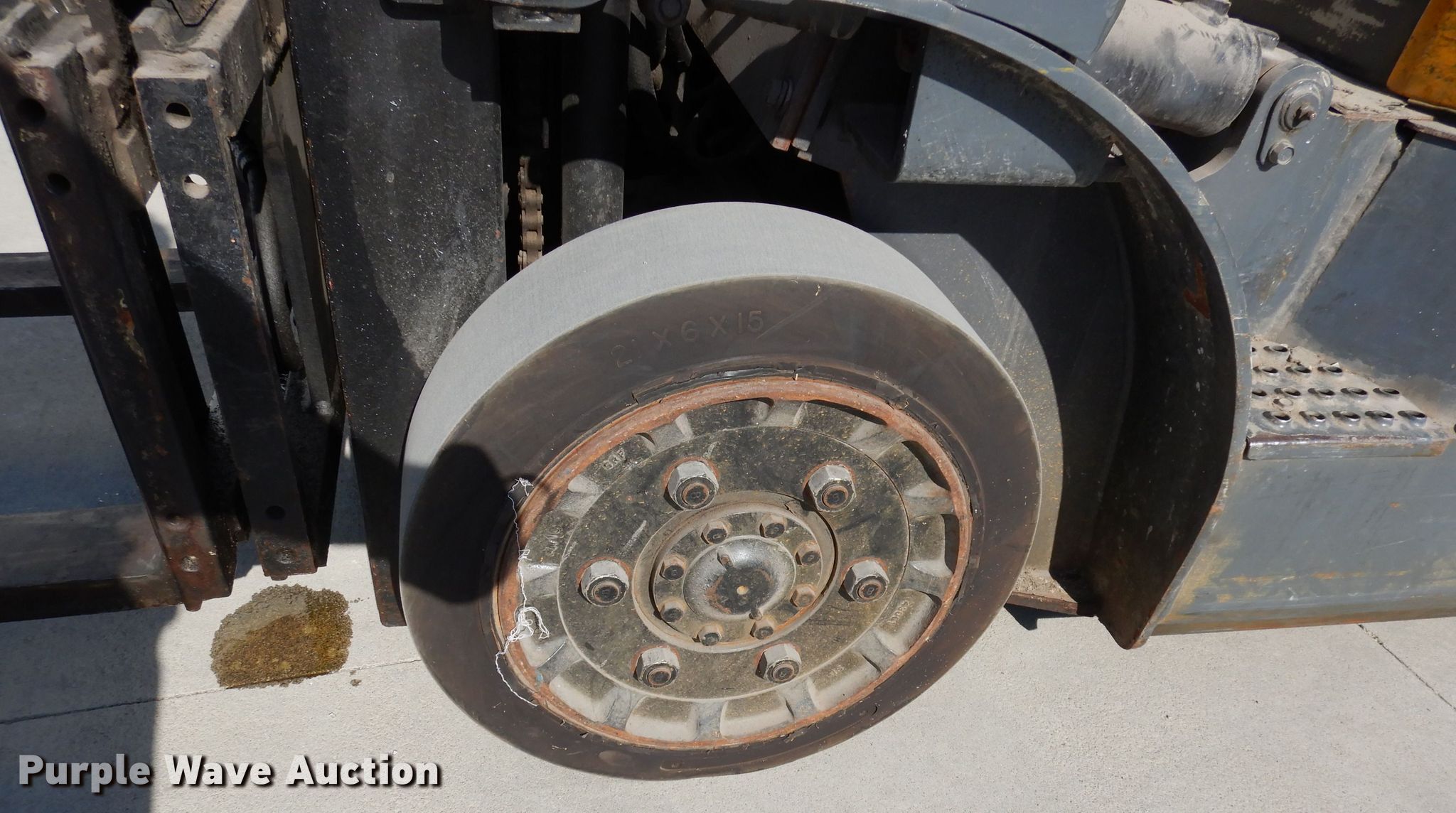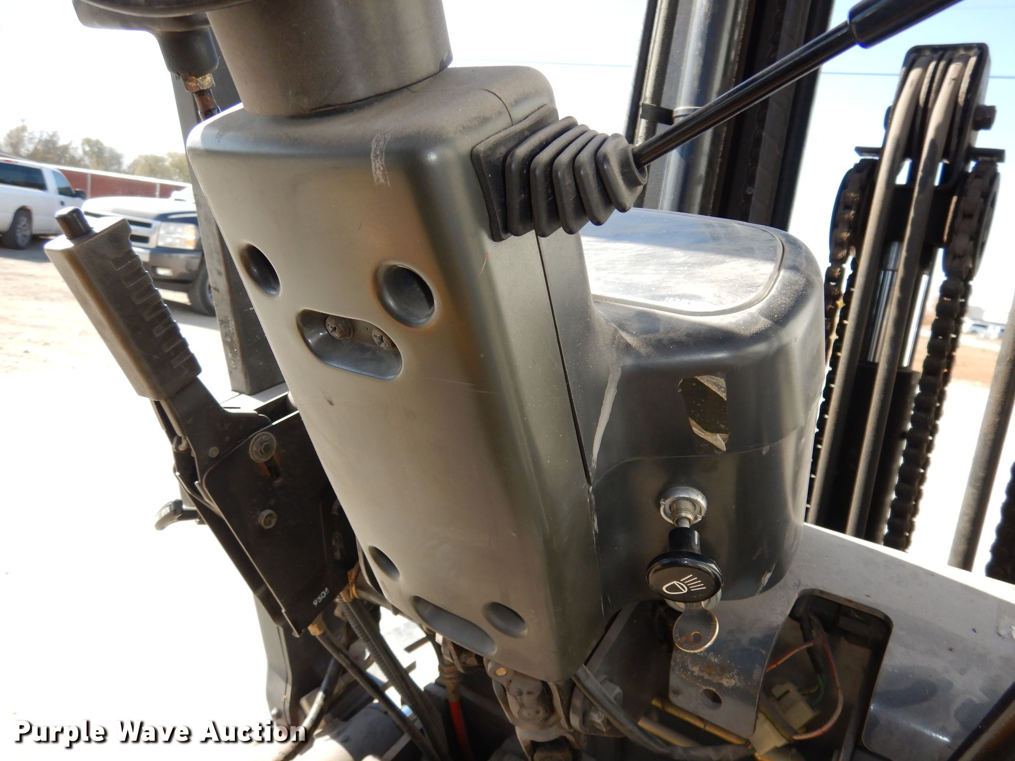 TCM FCG15F9 forklift. 4,698 hours on meter, Serial: A12R00252. Engine Fuel type: LPG LP bottle: Not included. Transmission Powershift. Operators station OROPS. Operational Maximum lift capacity: 2,350 lbs, Maximum lift height: 189", Mast stages: 3, Side shift, Mast tilt, Fork length: 42". Tires Front: 21x6x15, Rear: 14x4.5x8, Solid. Notes One cylinder leaks. Manhattan, KS 66503