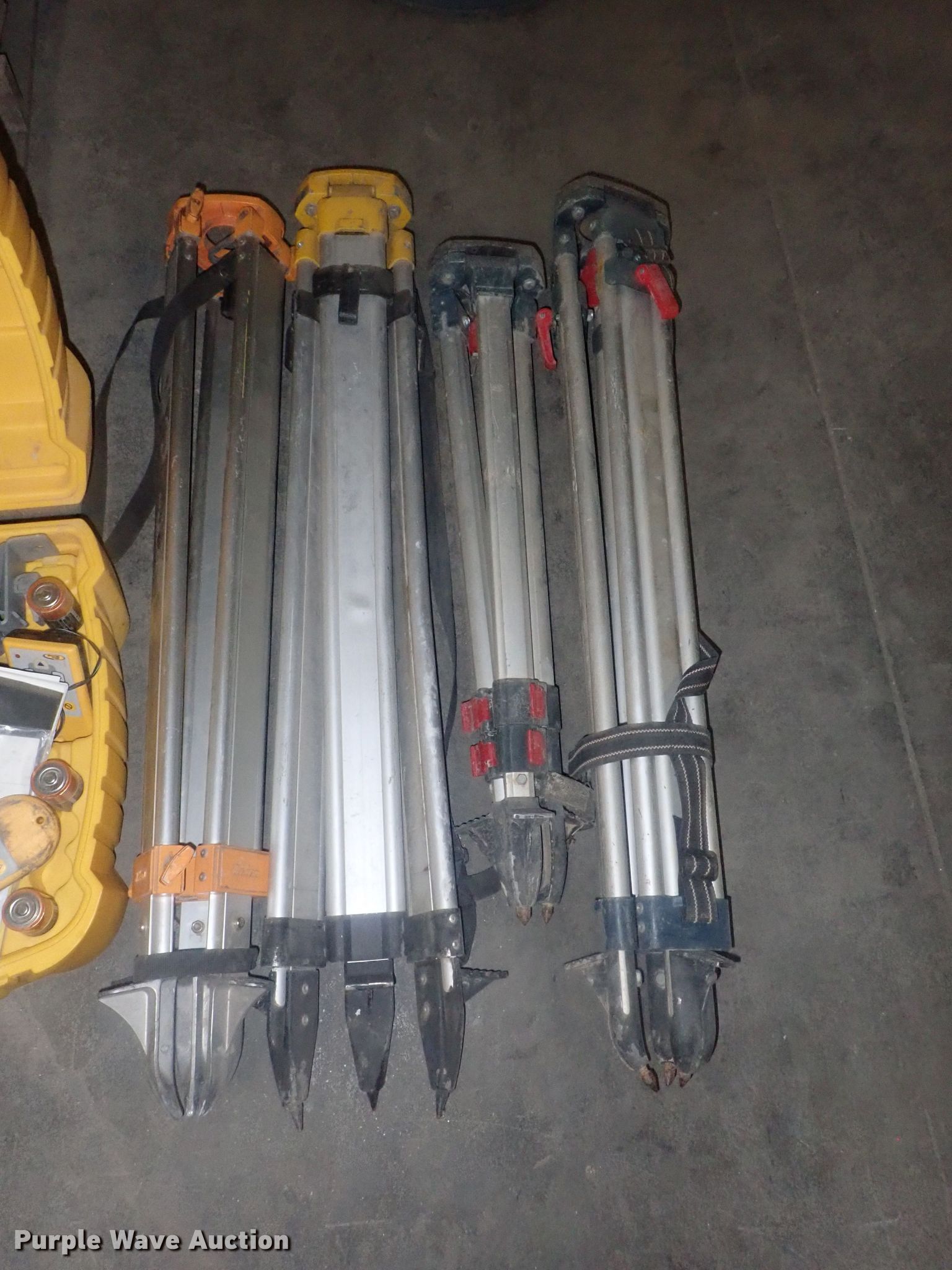Trimble Spectra HV401 laser level. (4) tripods, (2) leveling rods, Accessories, Case, Unknown operating condition , Serial 07376874. 1840 N Ohio Ave. Wichita, KS 67214