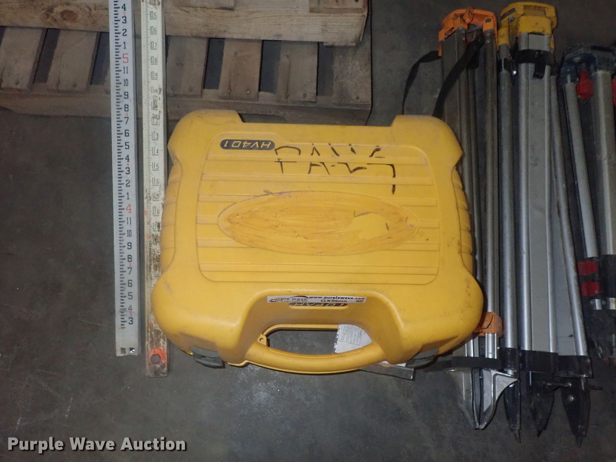 Purple Wave is selling a used Construction Laser in Kansas. This item is a Trimble Spectra HV401 laser level with the following: (4) tripods, (2) leveling rods, Accessories, Case, Unknown operating condition, Serial 07376874