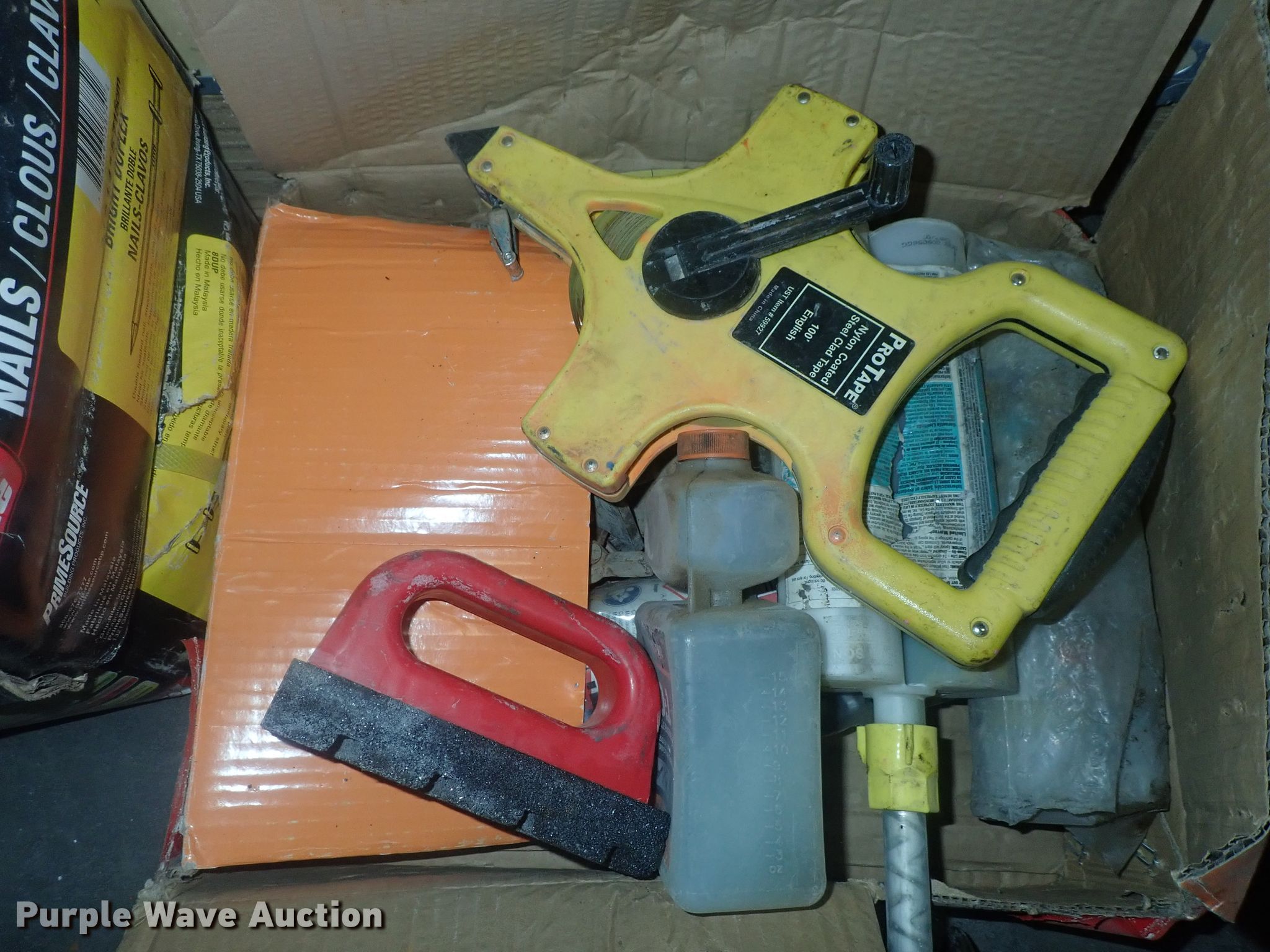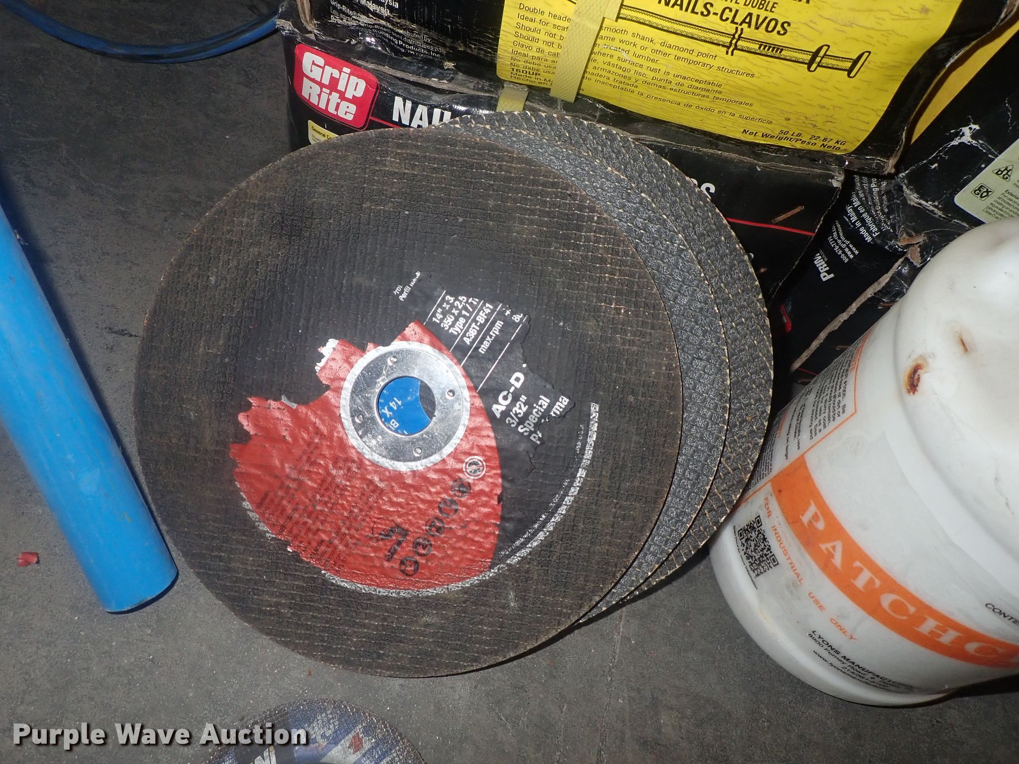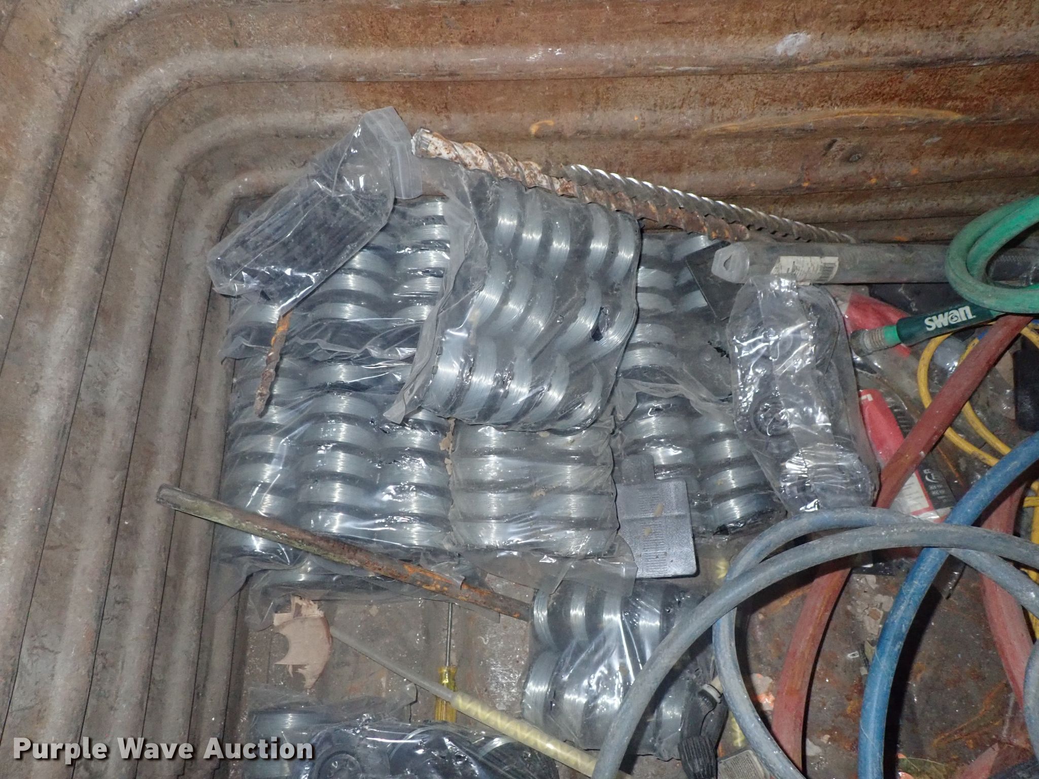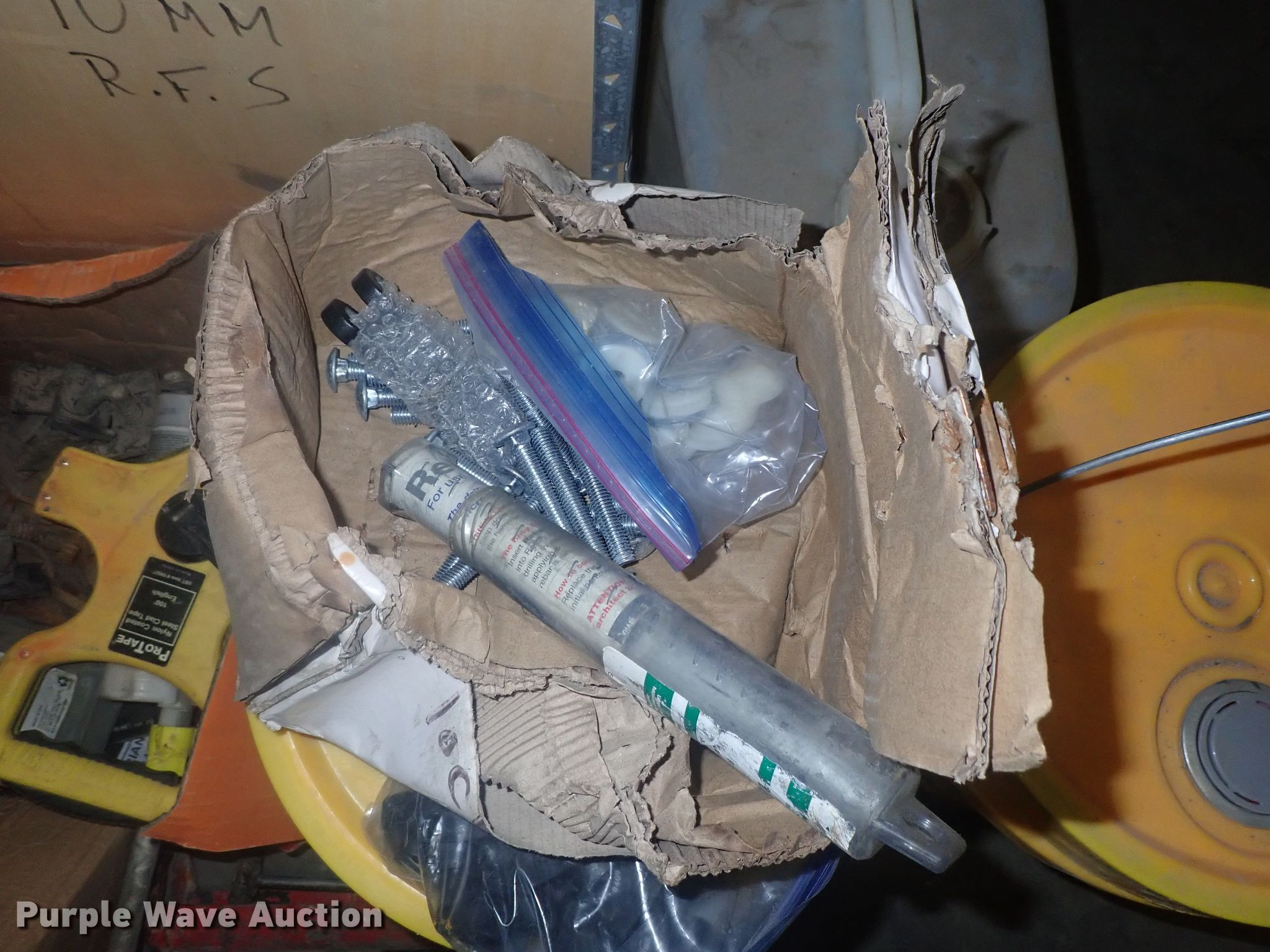 Purple Wave is selling a used Tools in Kansas. This item is a Tools with the following: Safety cones, Loading dock slides, Sala lifeline, Chain hoist, Chain, Sprayers, Cooler, Vacuums, Welding wire, (4) CRL vacuum cups, Hand tools, Air hose, Power cords, Power tools, Pocket formers, Grease guns, Glue guns, CHC Crete, Blades, MIG welder, Duplex nails, Acrylic bond, L&M E-Con and more